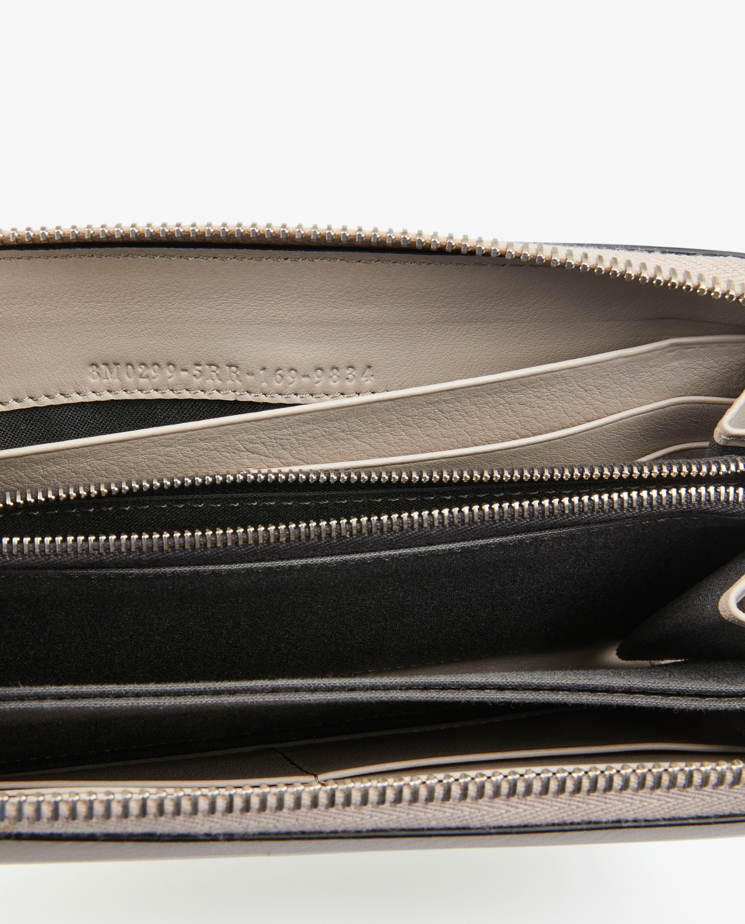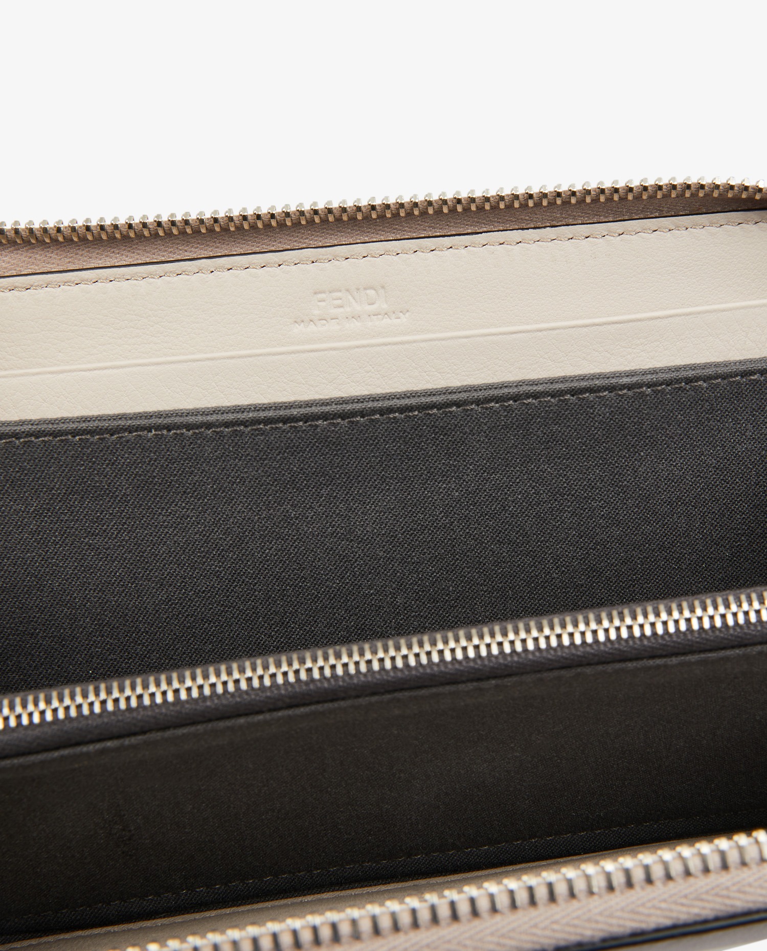Fendi wallet in light grey leather, finished in python. Zipper closure. 8 card slots and 6 compartments for bills and miscellaneous items. In very good condition.