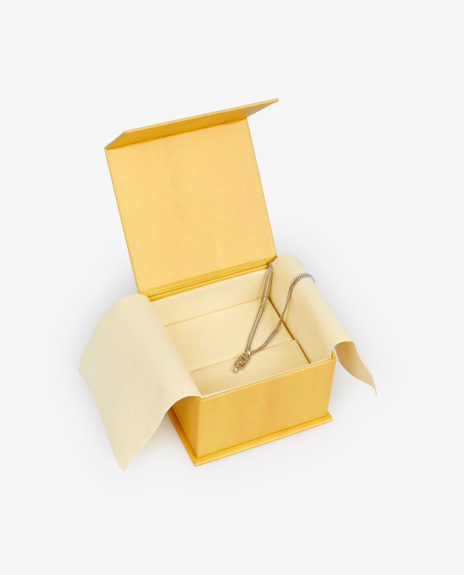 To keep the collar shiny, we recommend wiping it with a soft, dry cloth after each use. Avoid contact with chemicals, cosmetics or perfume. Store the jewel in its original box to avoid rubbing or bumping against other accessories.