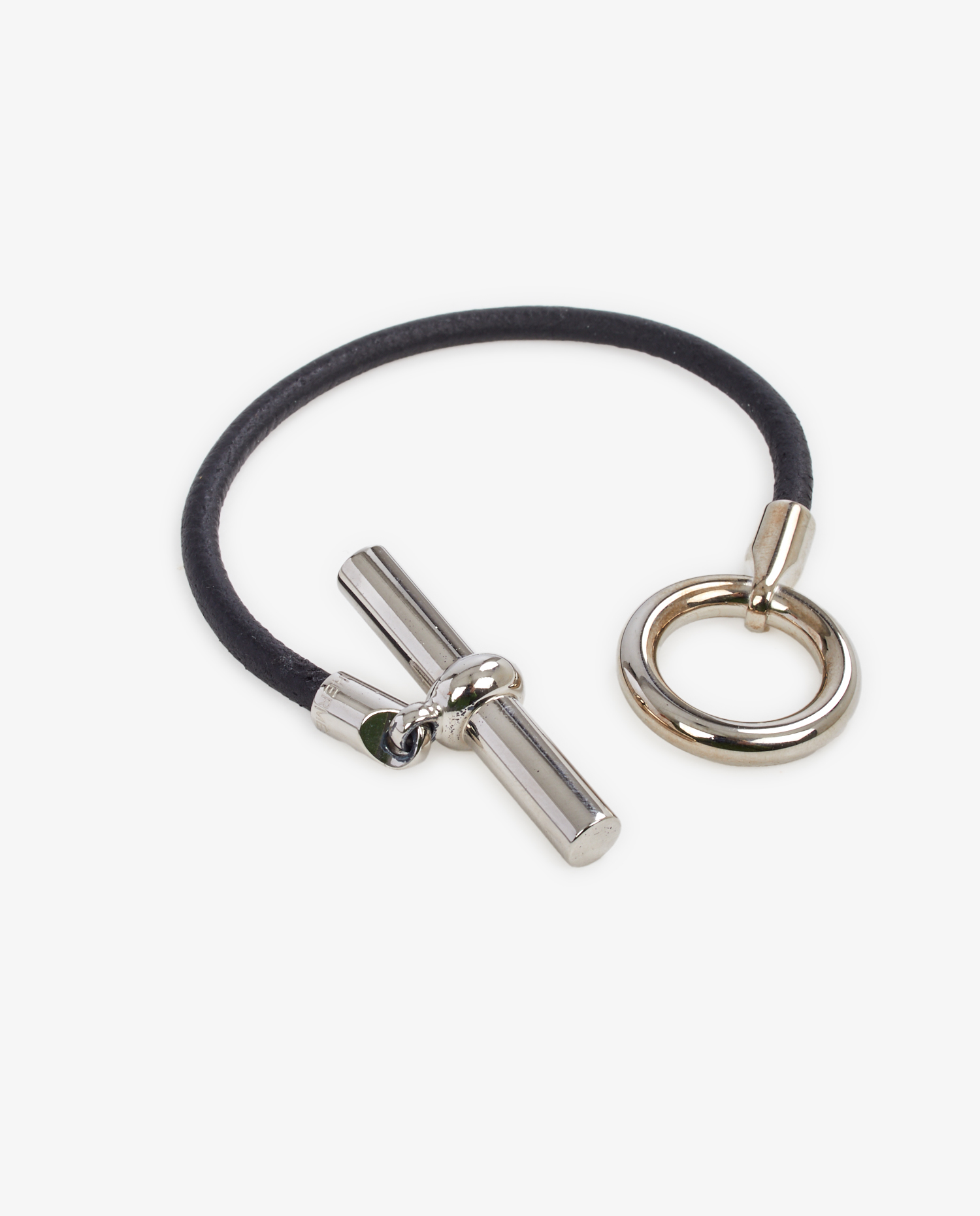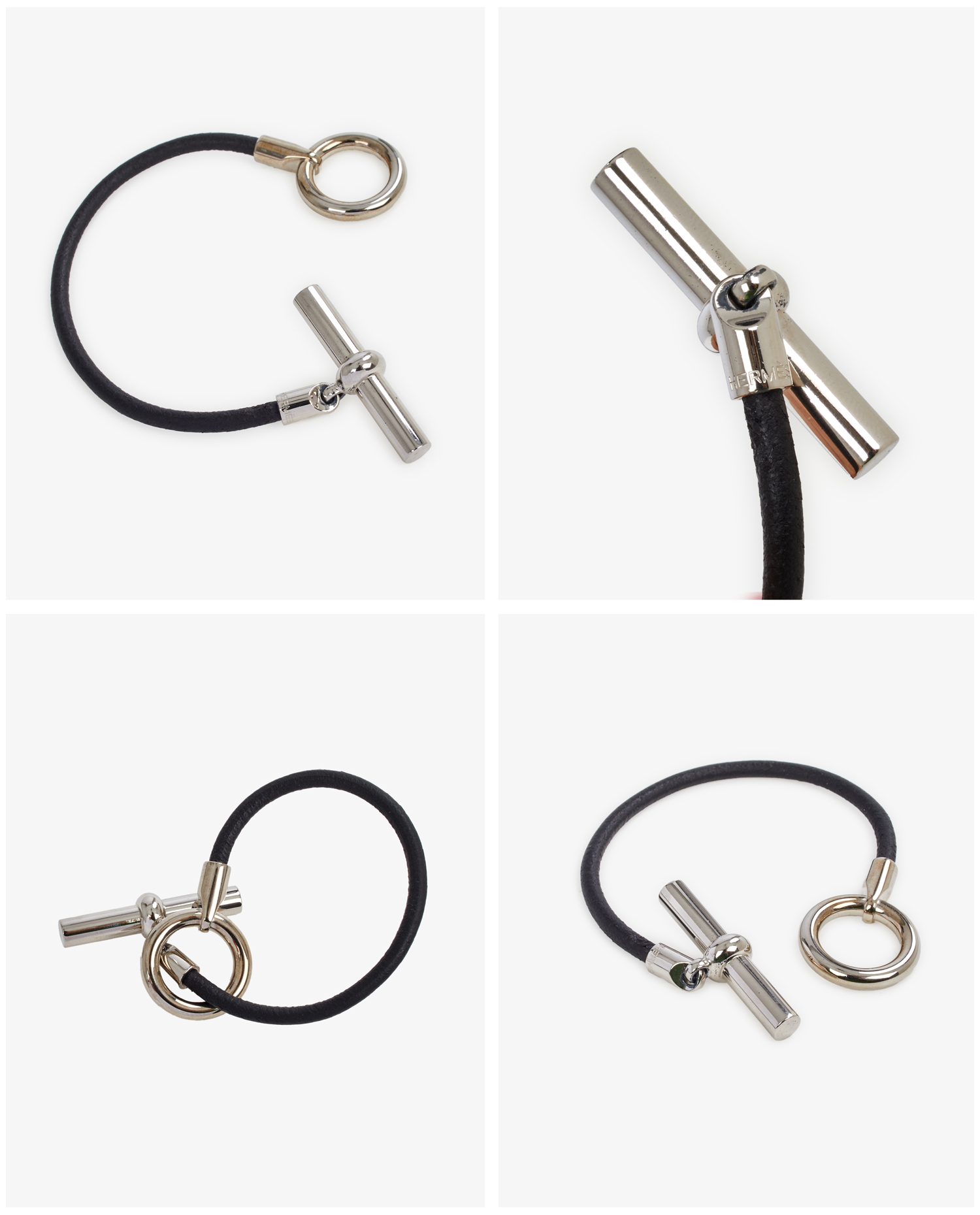 Hermes Glénan bracelet in black leather with silver buckle. In very good condition.