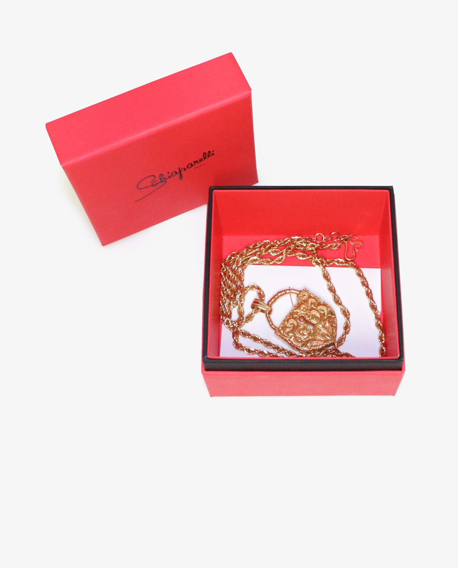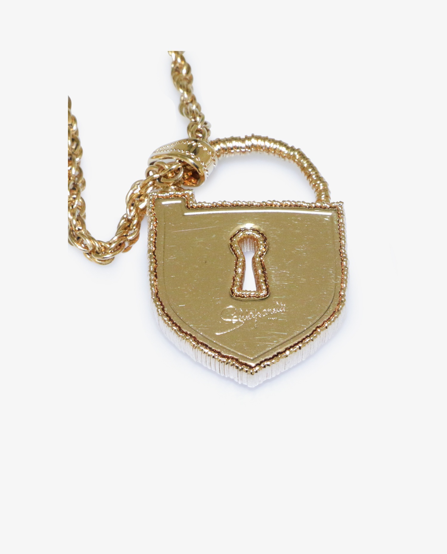 Gold-plated Schiaparelli padlock necklace. In very good condition. It will be delivered in its original box.
