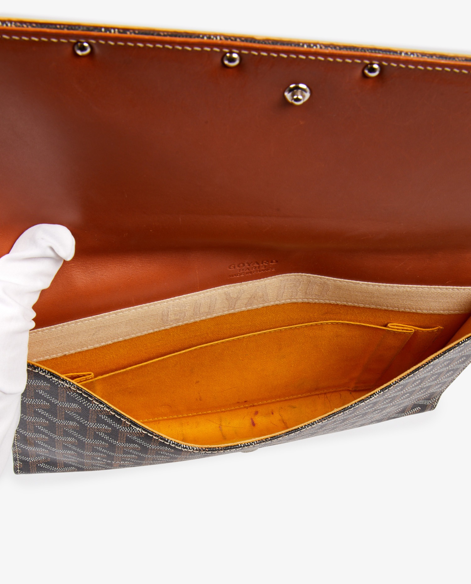 Goyard Monte Carlo monogram clutch bag. The interior is in yellow fabric. Hand-carried. In very good condition.