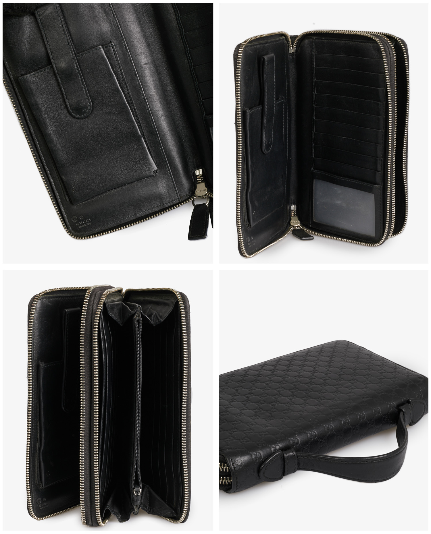 Gucci clutch bag in black “GG” embossed leather. Silver zipper closure. Hand-carried. In very good condition.