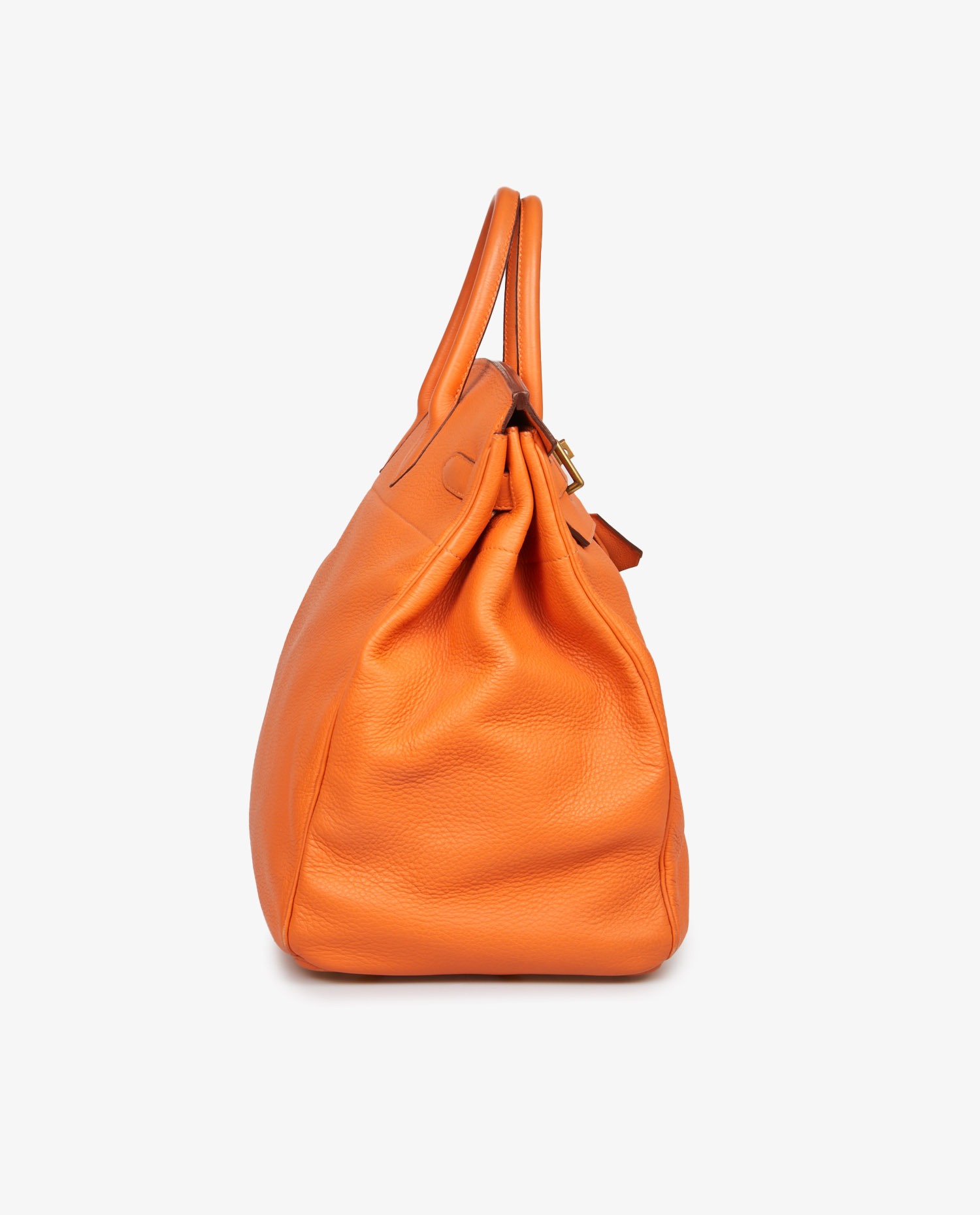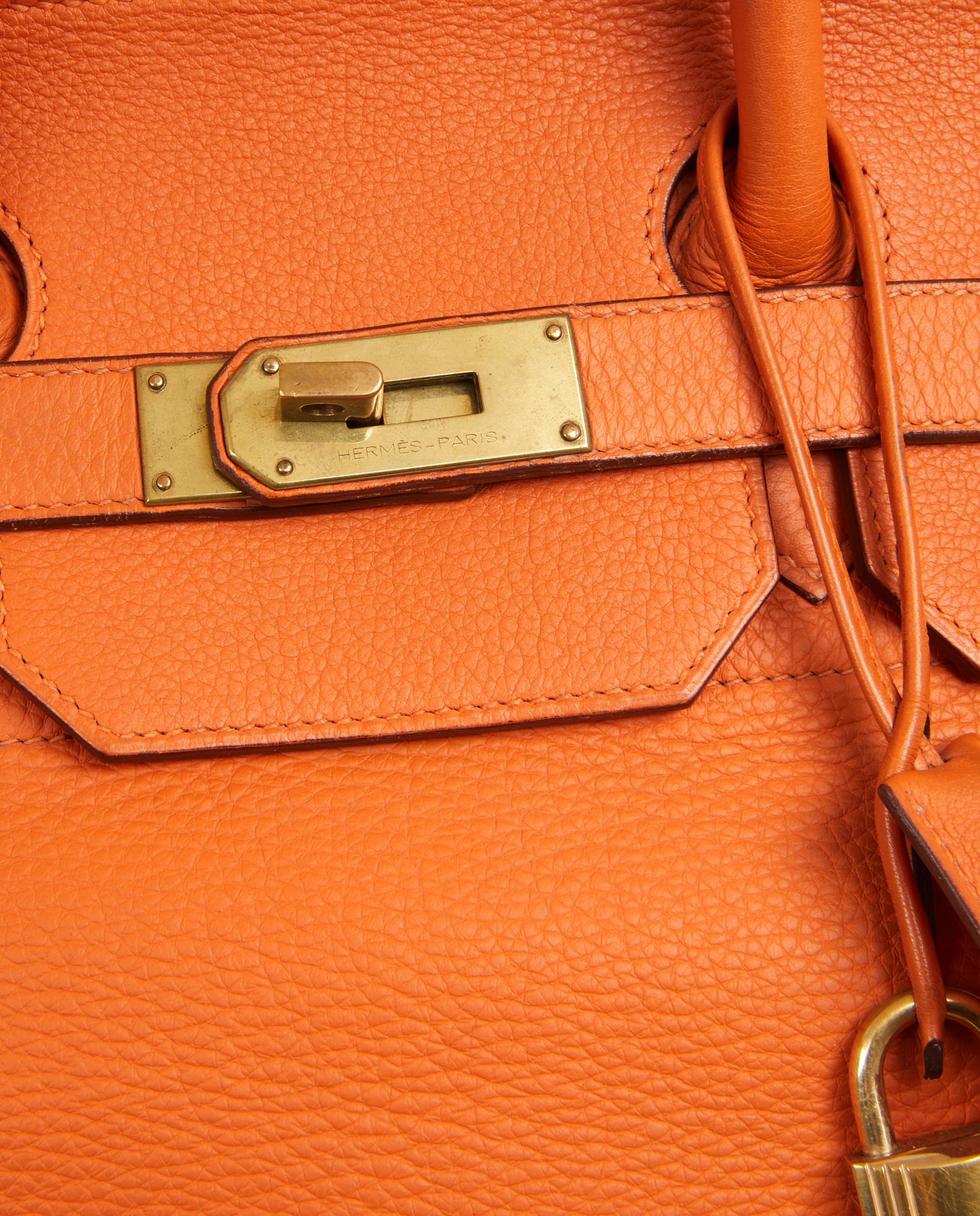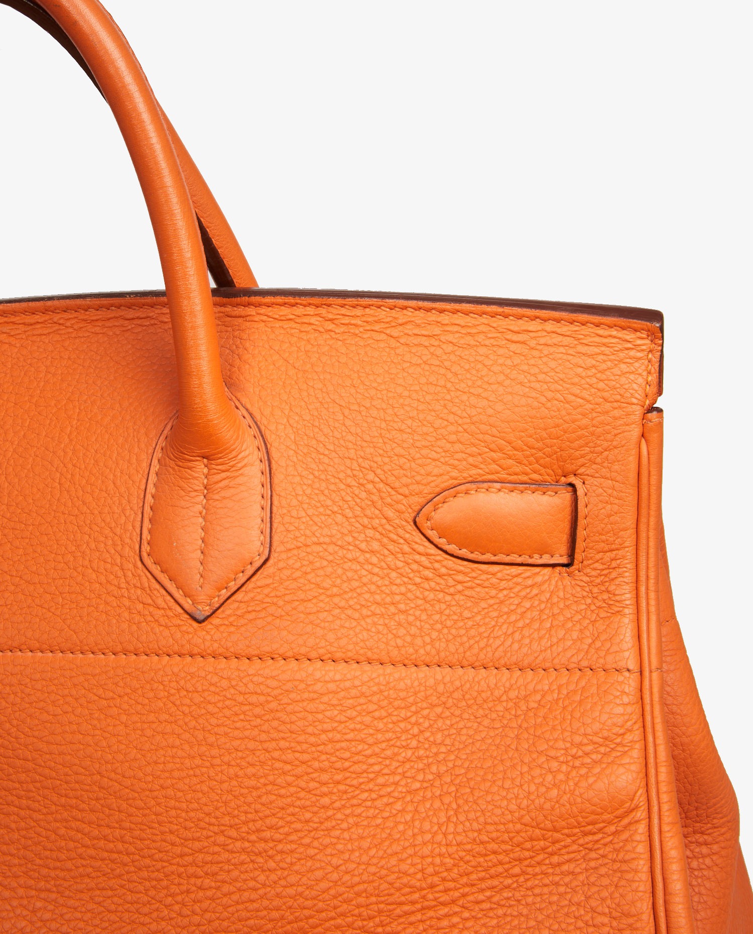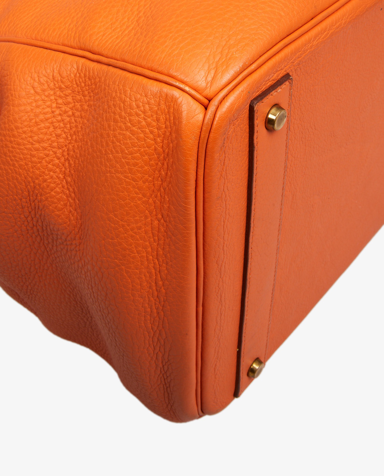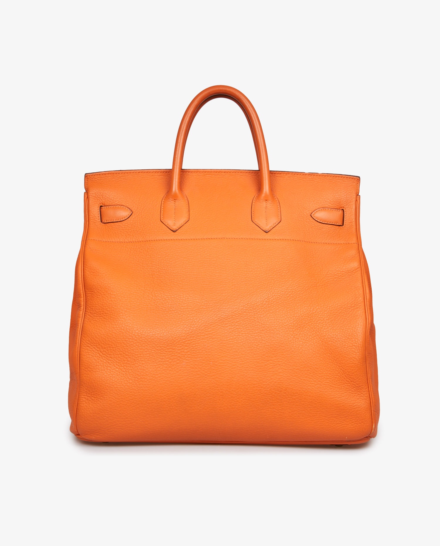 Hermes strap top in orange togo leather. Golden jewelry. Hand-carried. Ideal for travel. In very good condition. Some wear marks under the bag and a scratch on the front. See photos.