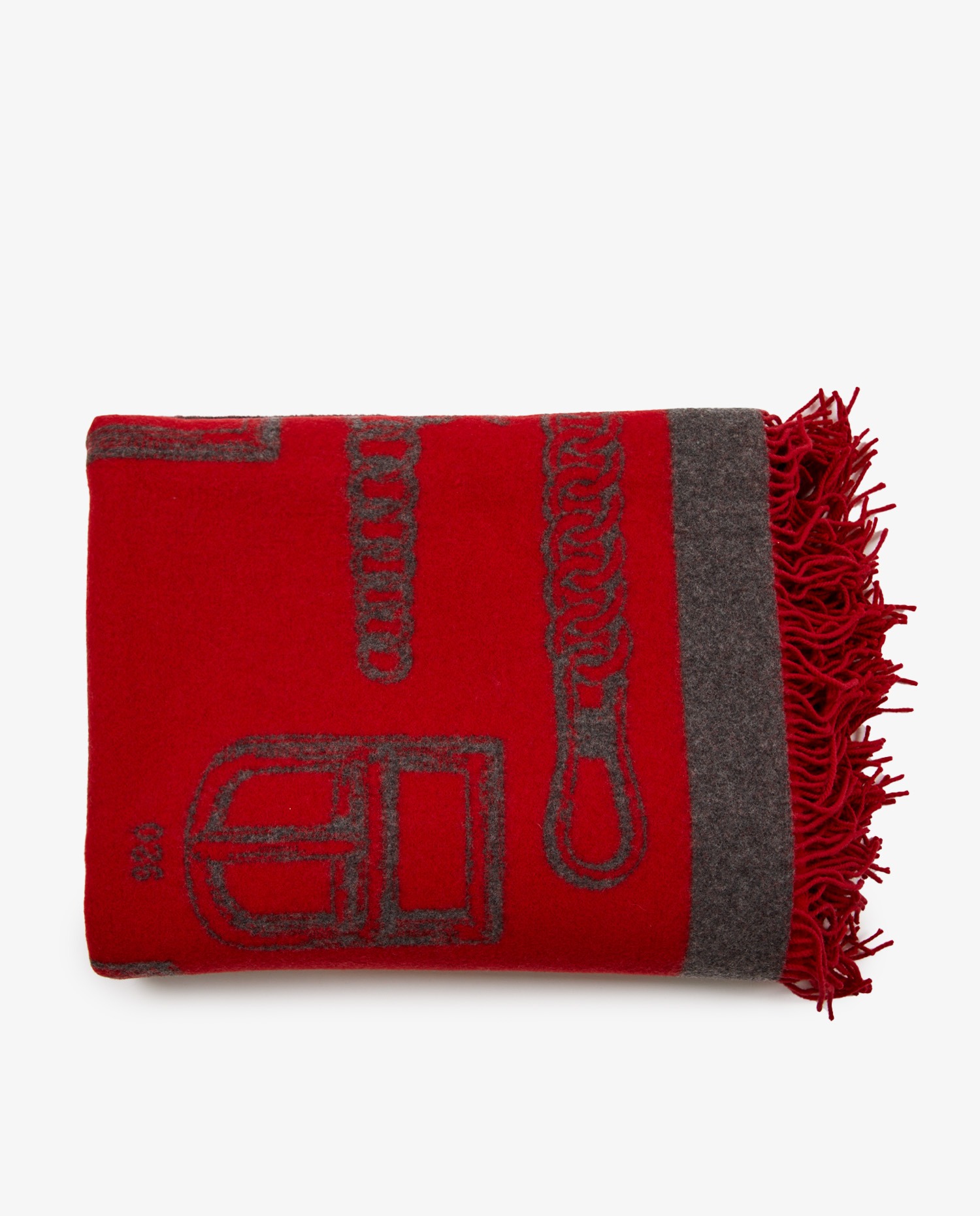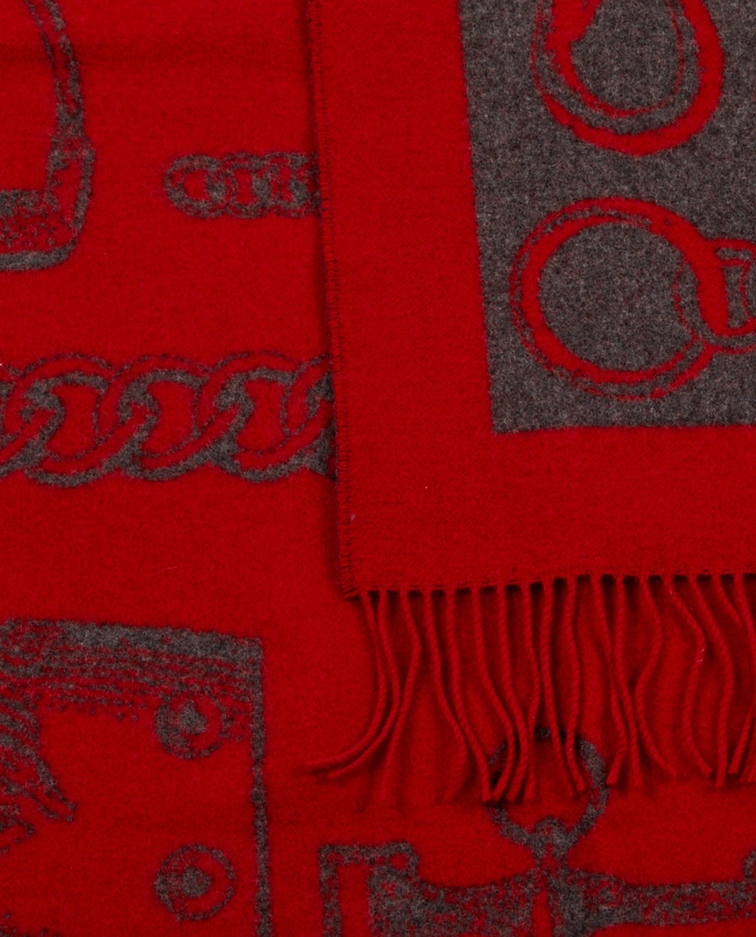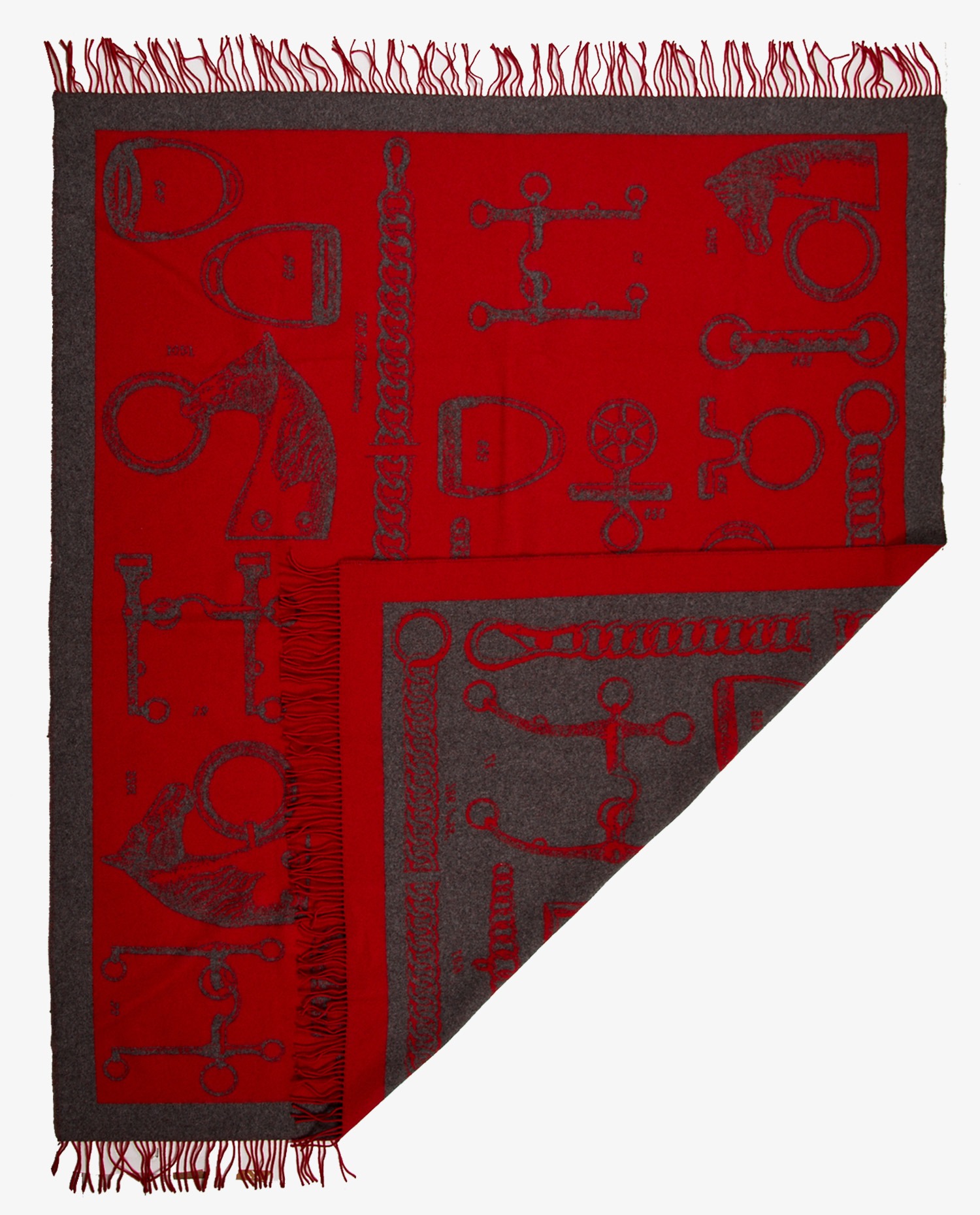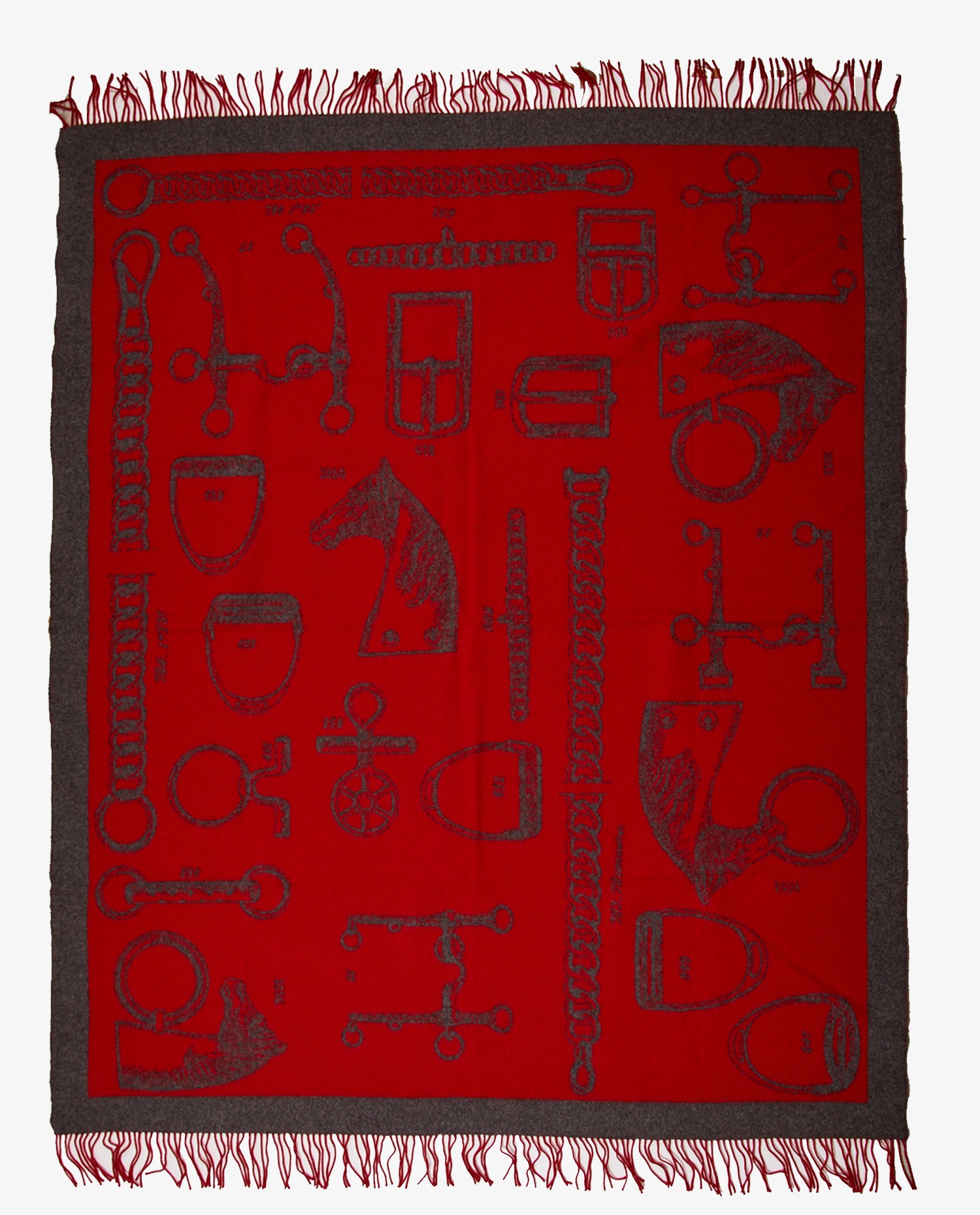 Hermès red and grey cashmere and wool throw. In very good condition.