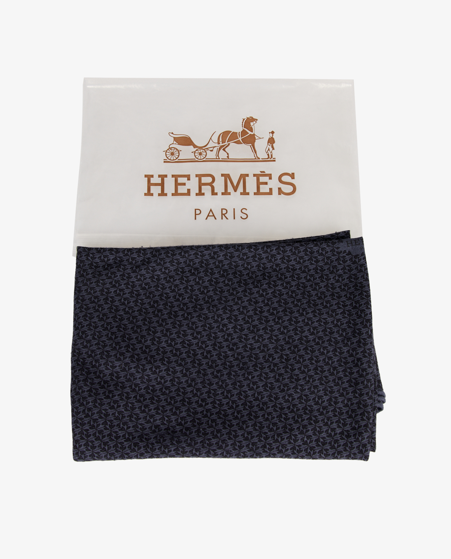 Hermès blue and black cashmere diamond scarf. In very good condition.