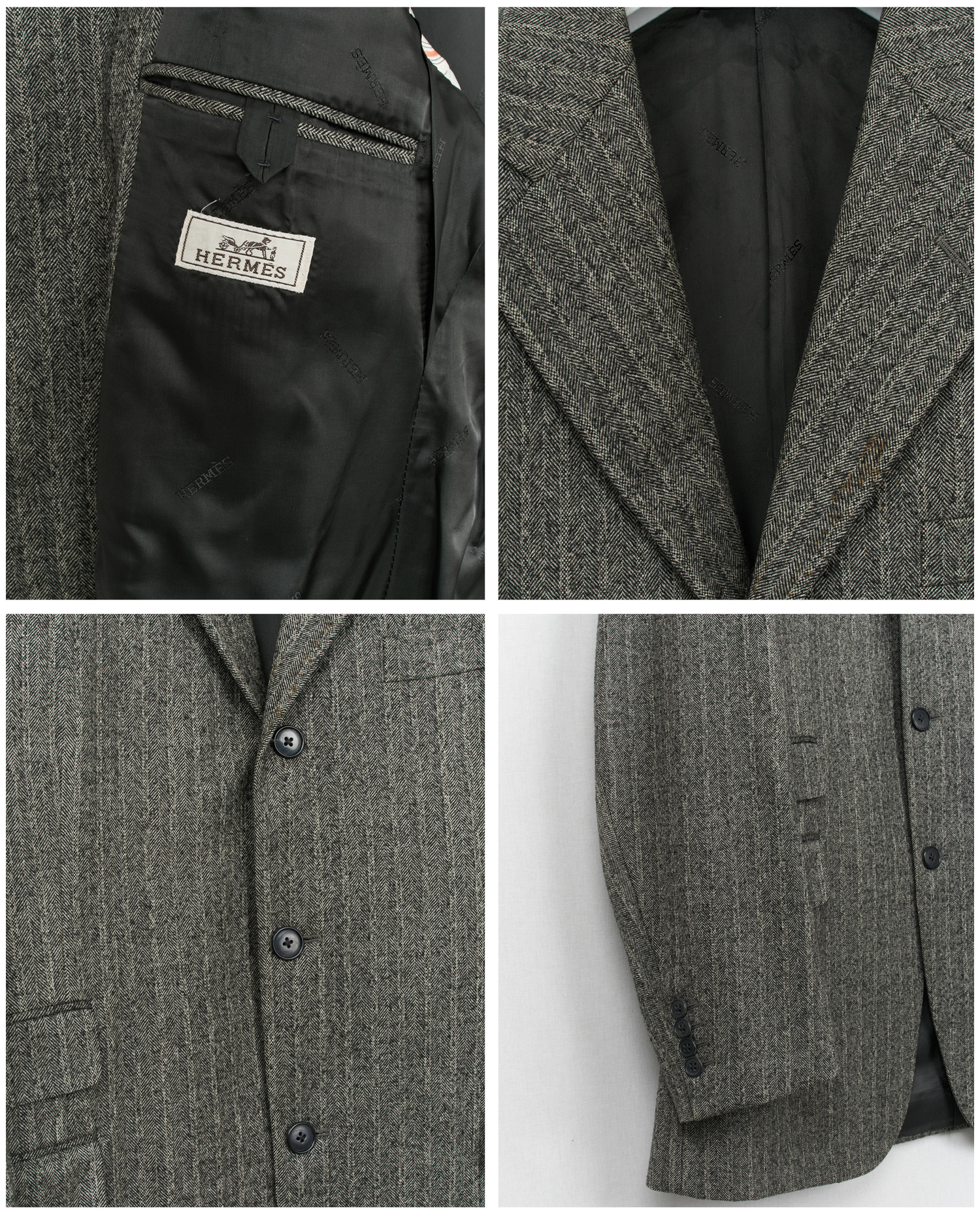 Hermès grey herringbone jacket. Black silk lining with Hermès logo. 3 buttons. Size 50. In very good condition.