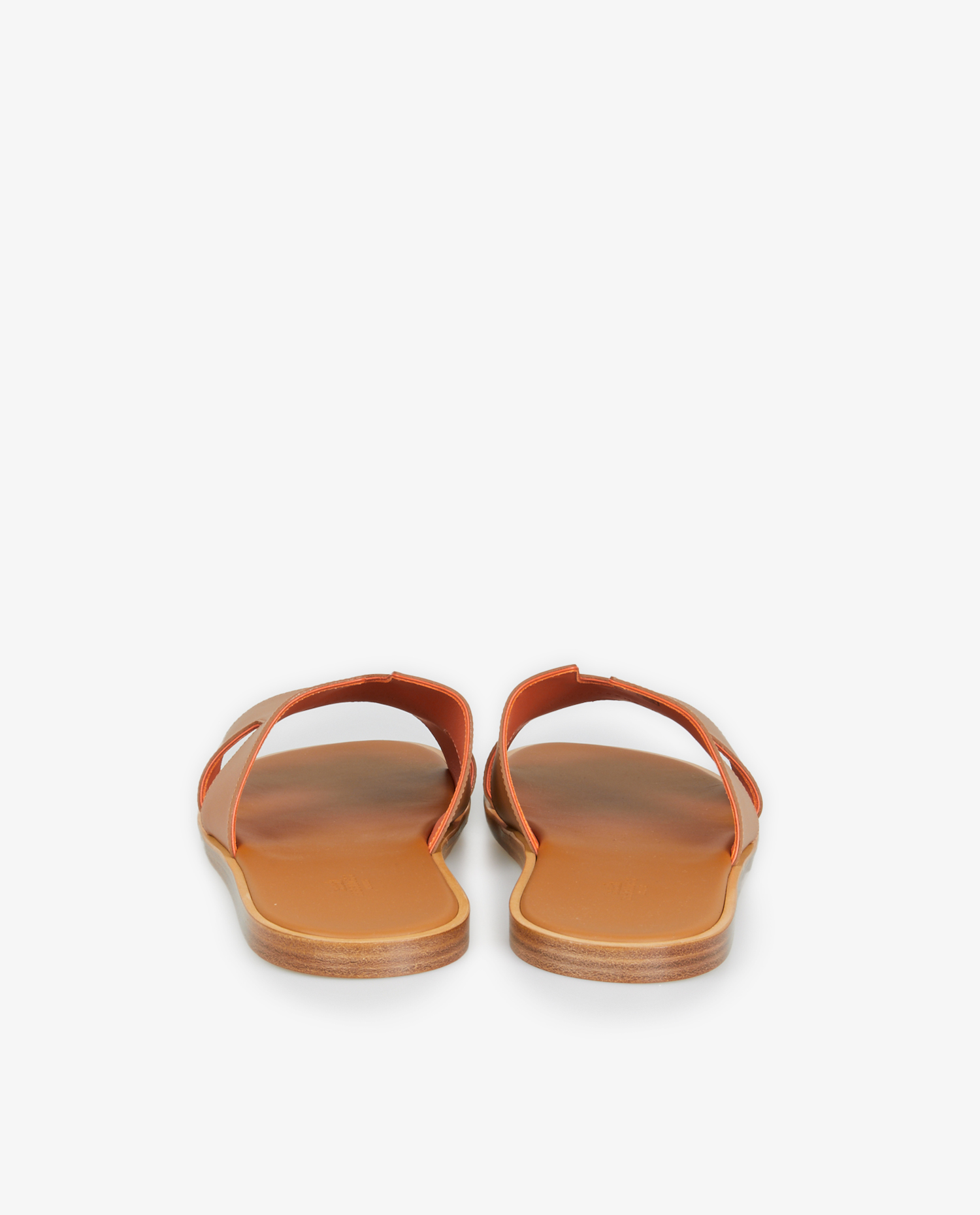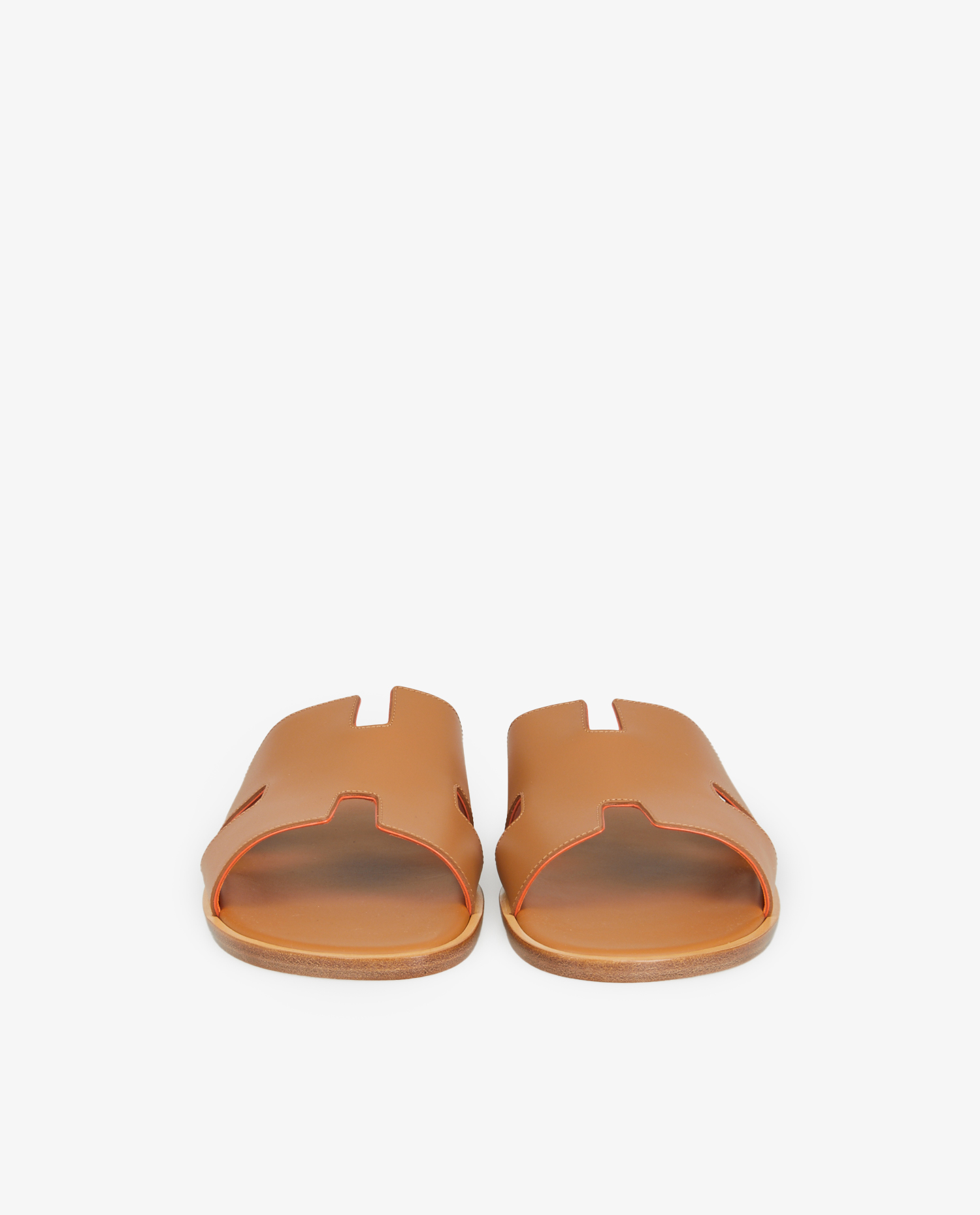 Hermès Izmir sandals in gold leather with orange interior. Size 46. Never worn.