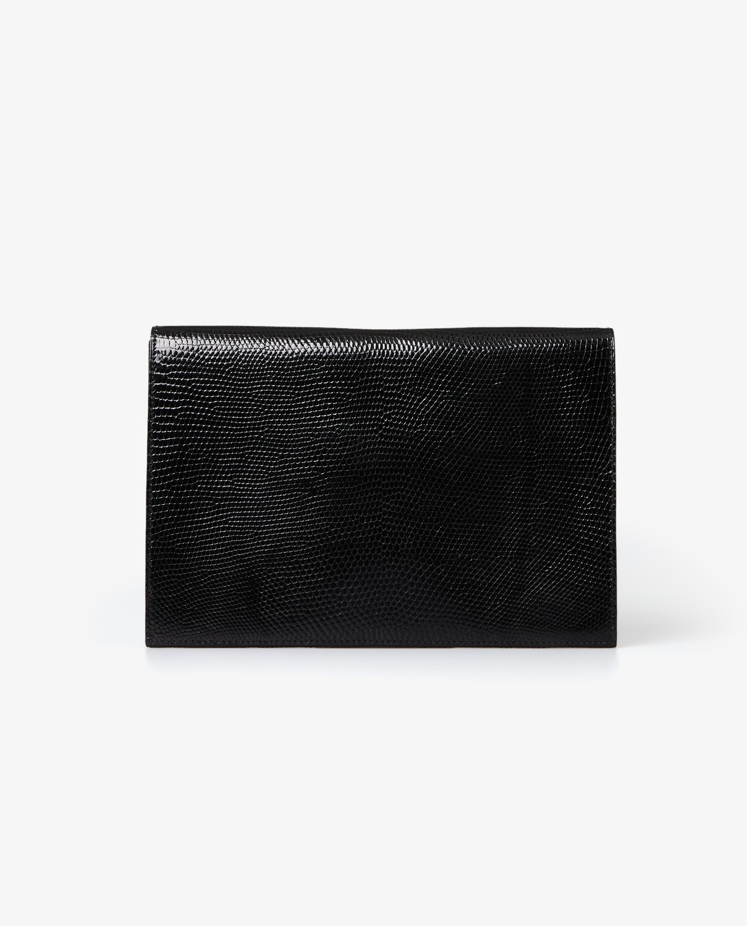 Hermès Rio Varan Salvator clutch bag in black lizard. Magnificent vintage piece dating from 1987, Q in a round. Snap closure. The interior is in black lambskin. In very good condition.