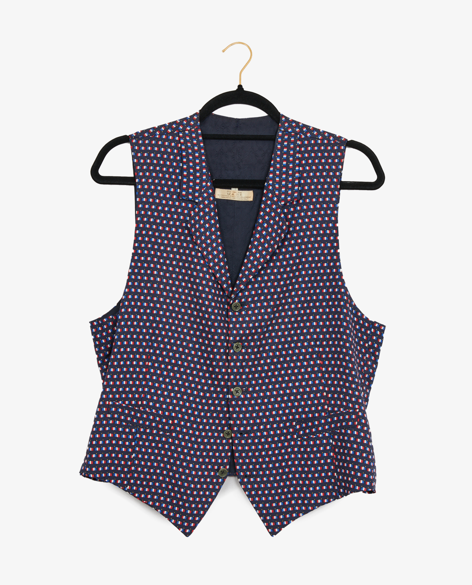 Hermès silk scarf-print vest with French flags. Size 50. In very good condition.