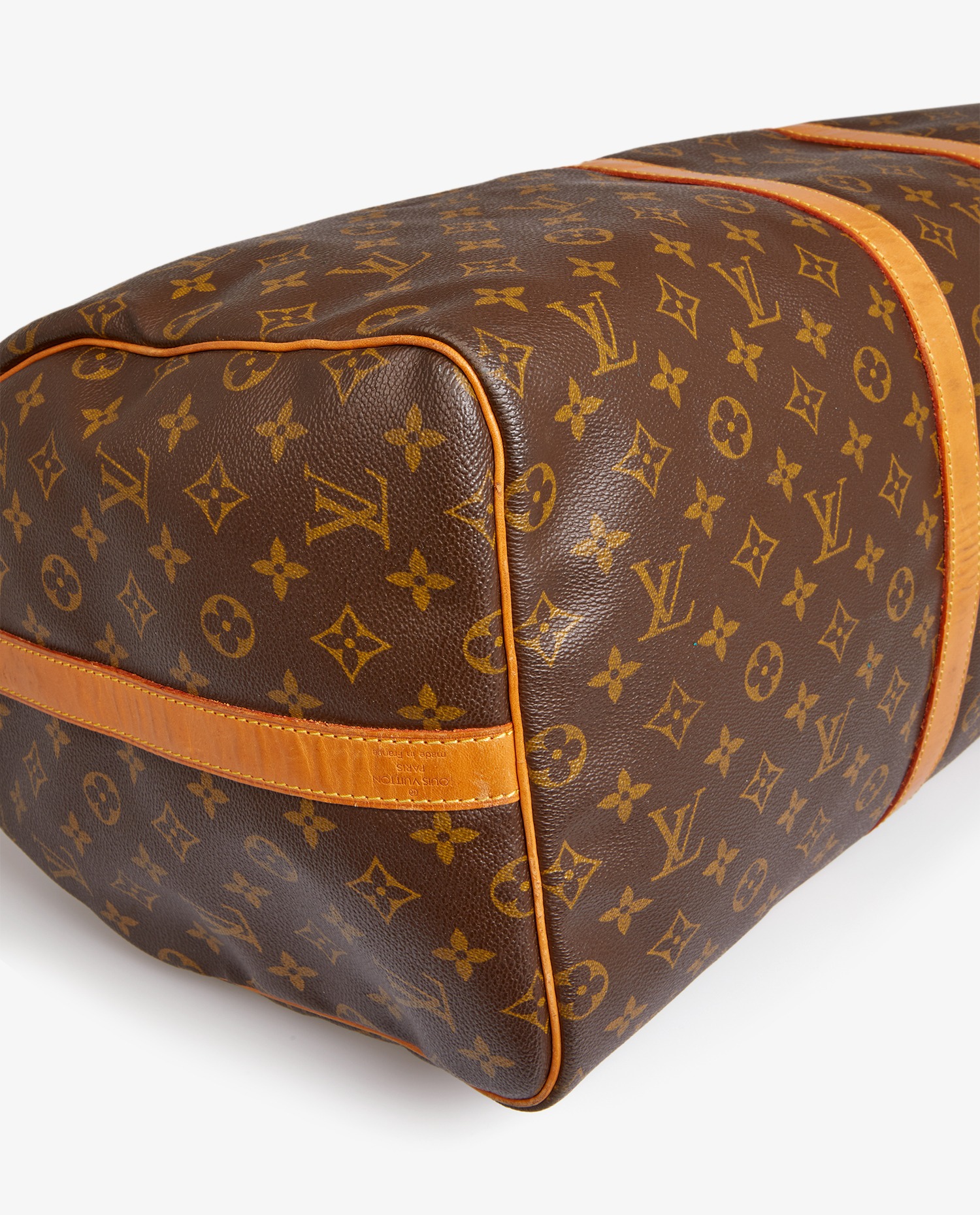 Louis Vuitton Keepall 55 bag in monogram canvas. The travel essential since 1930. Lightweight and supple, it can be worn in the hand and/or cross-body. Public price 1960 euros.
