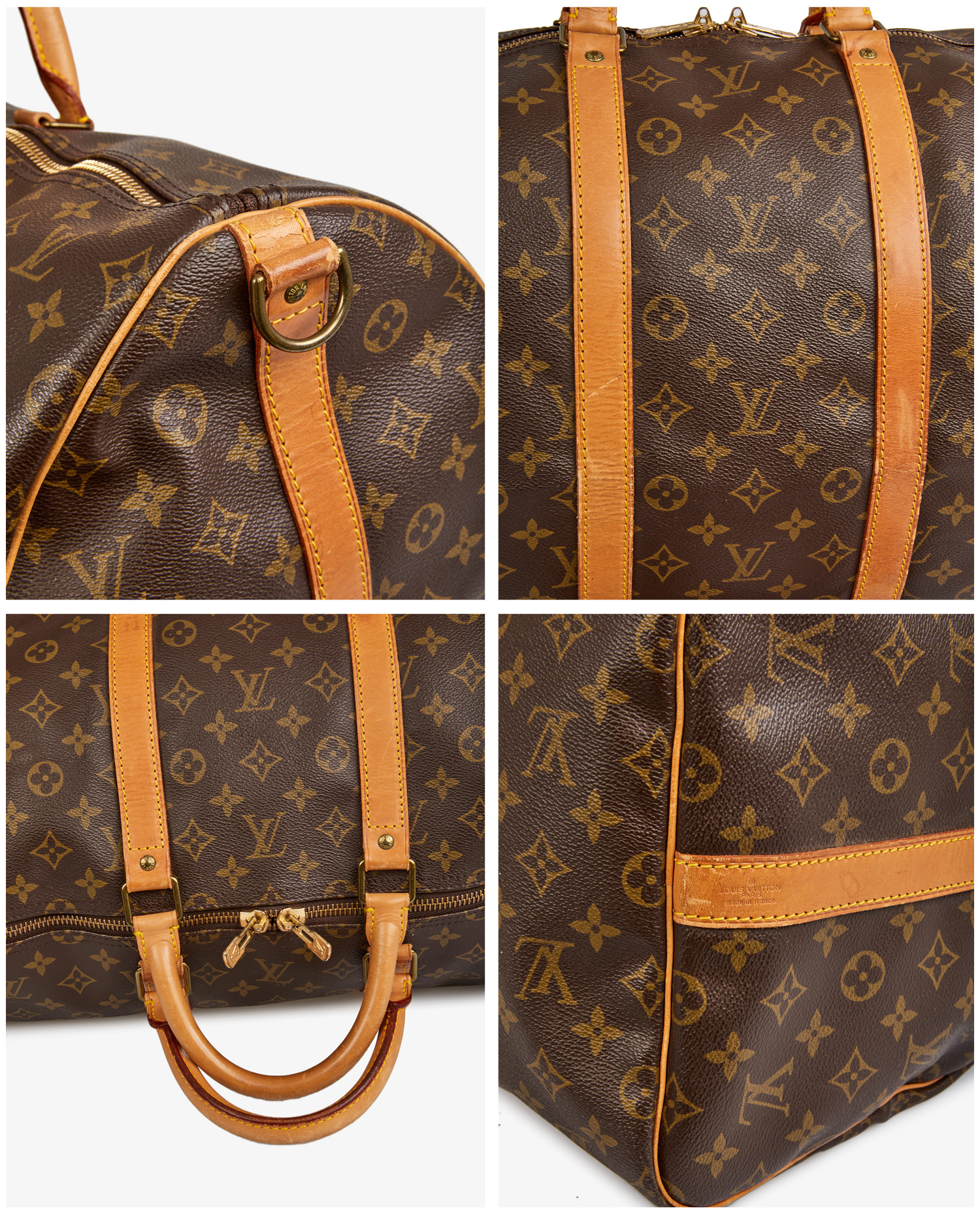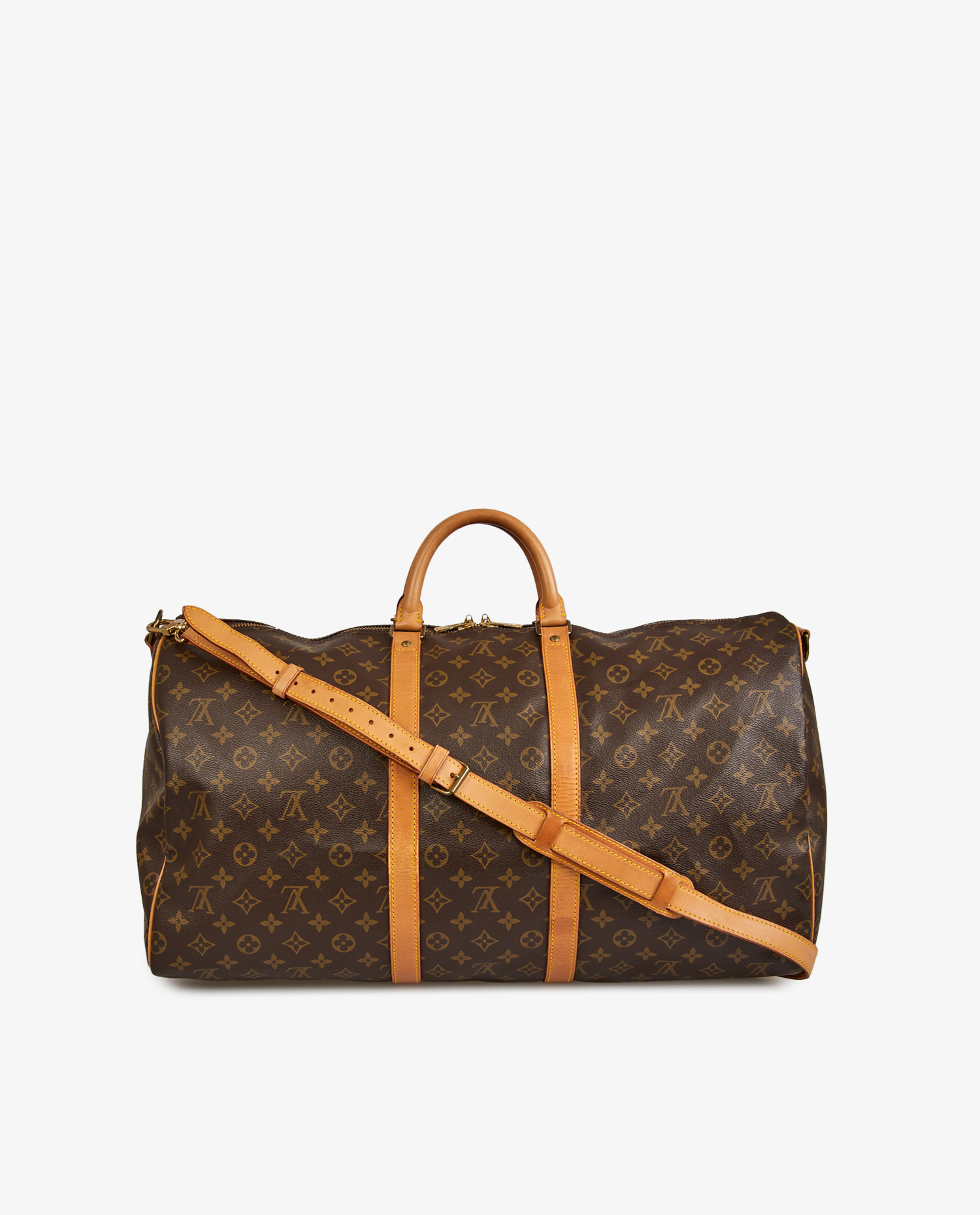 Louis Vuitton Keepall 55cm bag in monogram canvas and cowhide leather. Zipper closure. Carried by hand or over the shoulder with an adjustable, removable shoulder strap. In very good condition. slight leather patina. See photos. Retail price: 2250 euros.