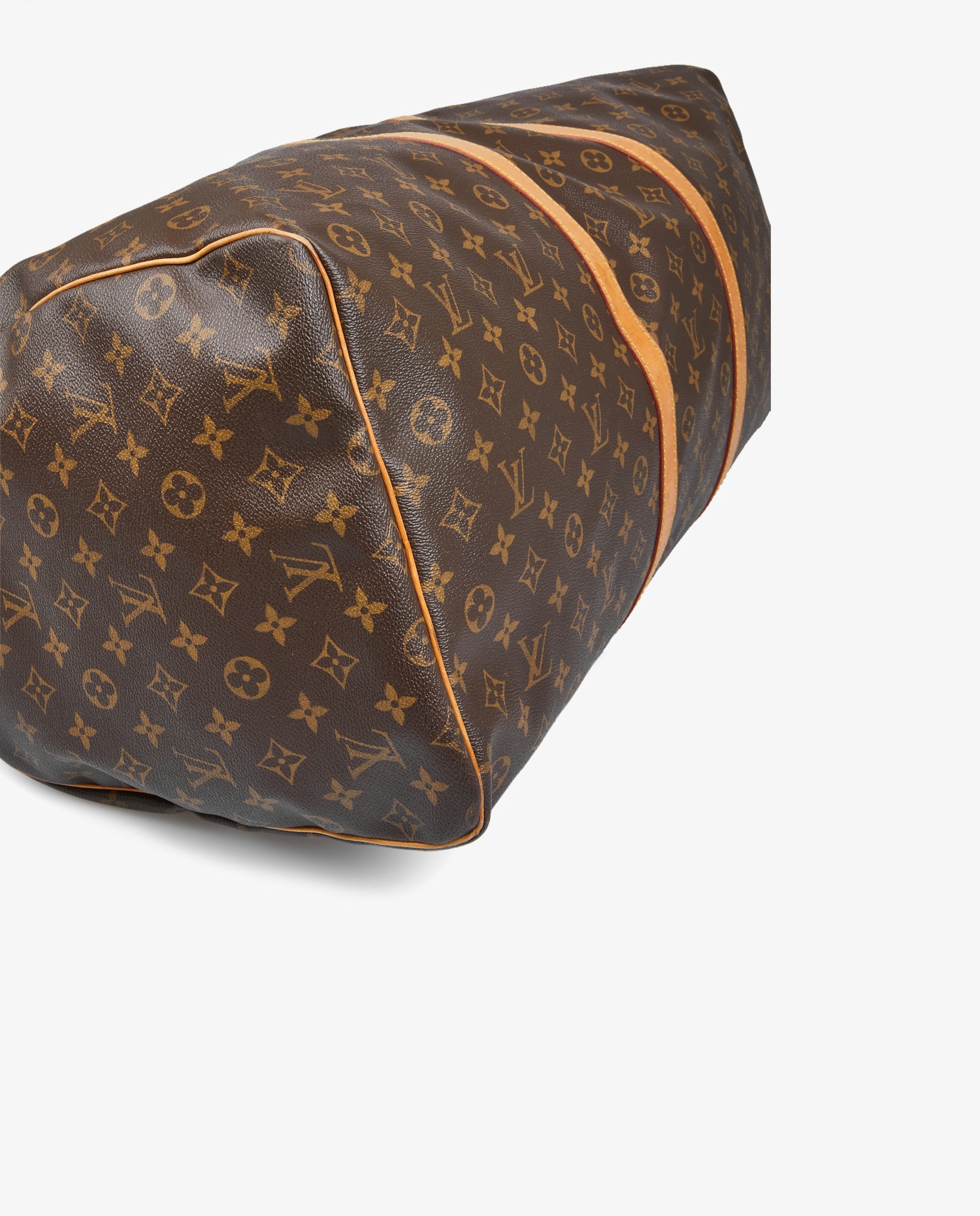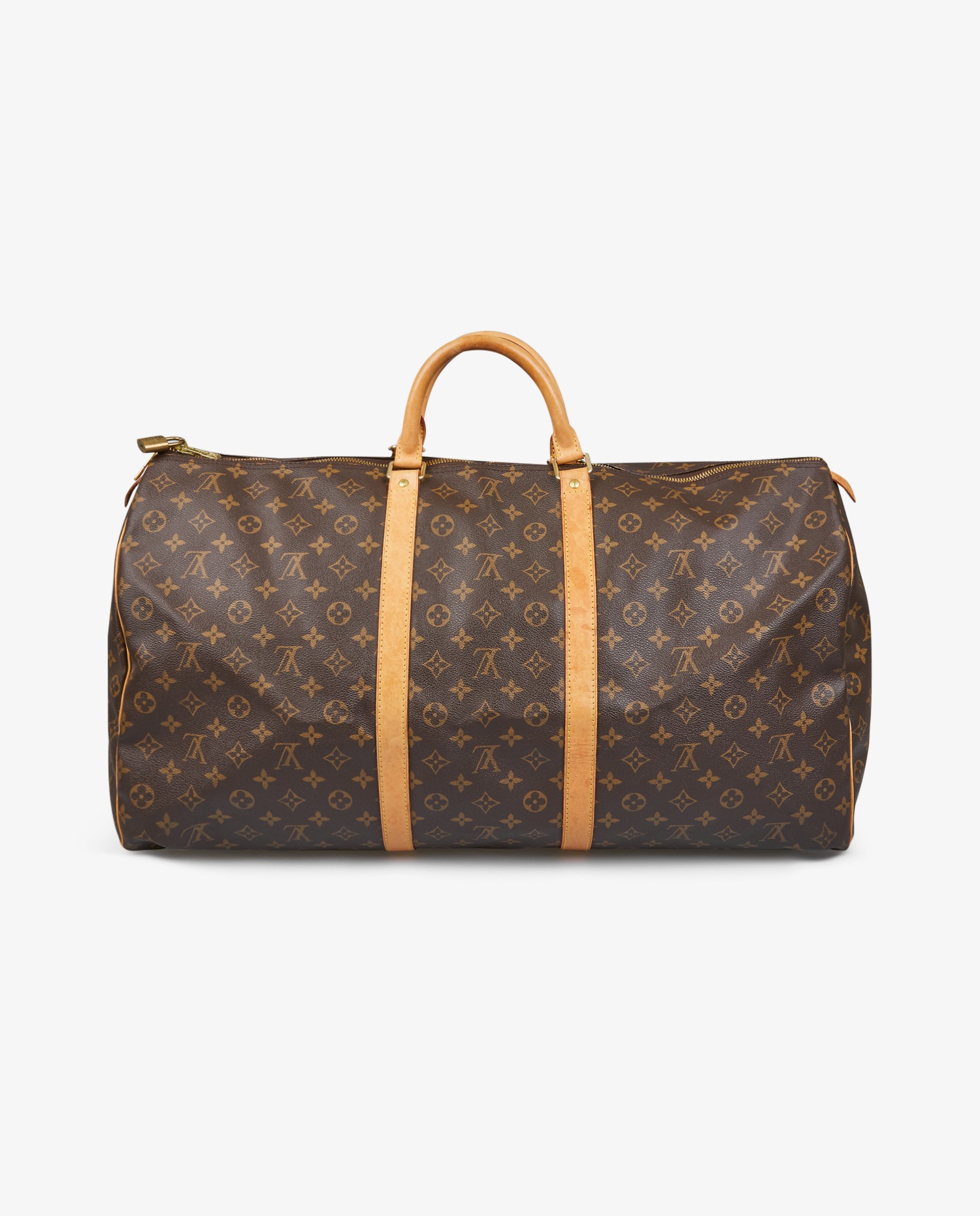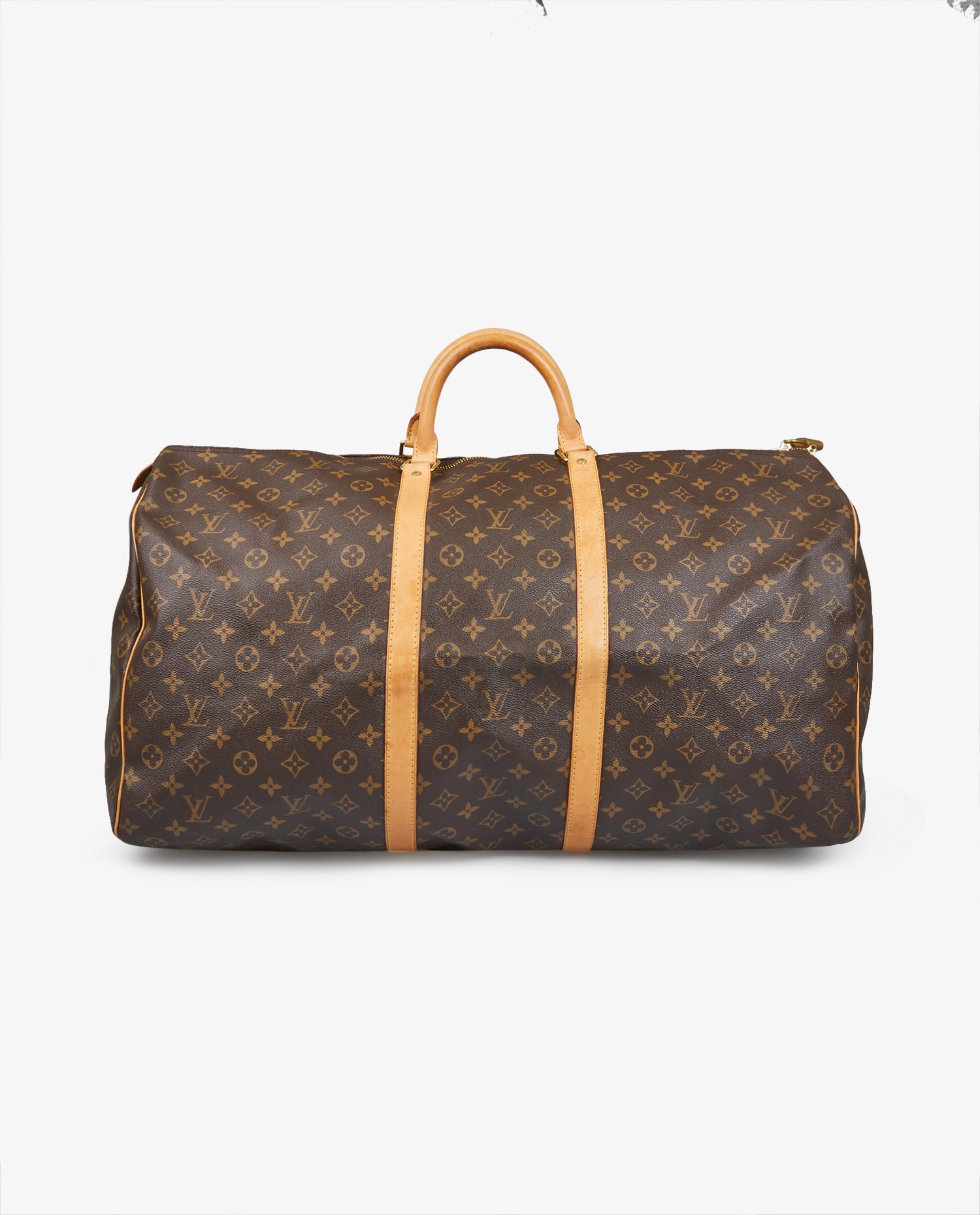 Keepall 60cm Louis Vuitton in monogram canvas and natural cowhide leather. Ideal for short getaways. It is carried by hand, but a shoulder strap can be added. In very good condition.