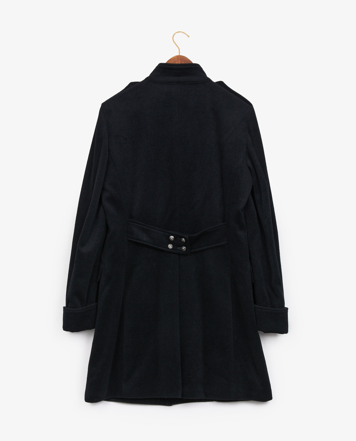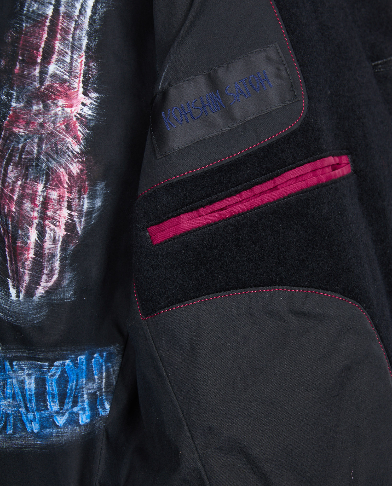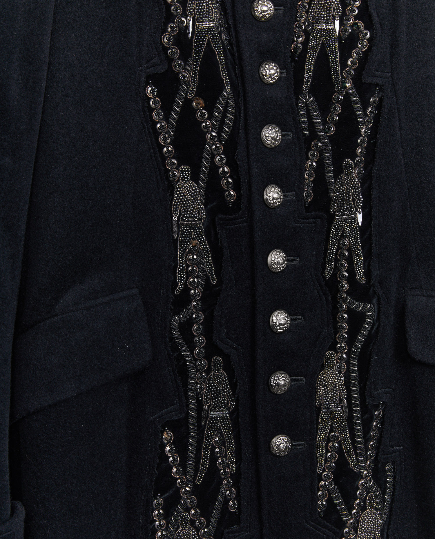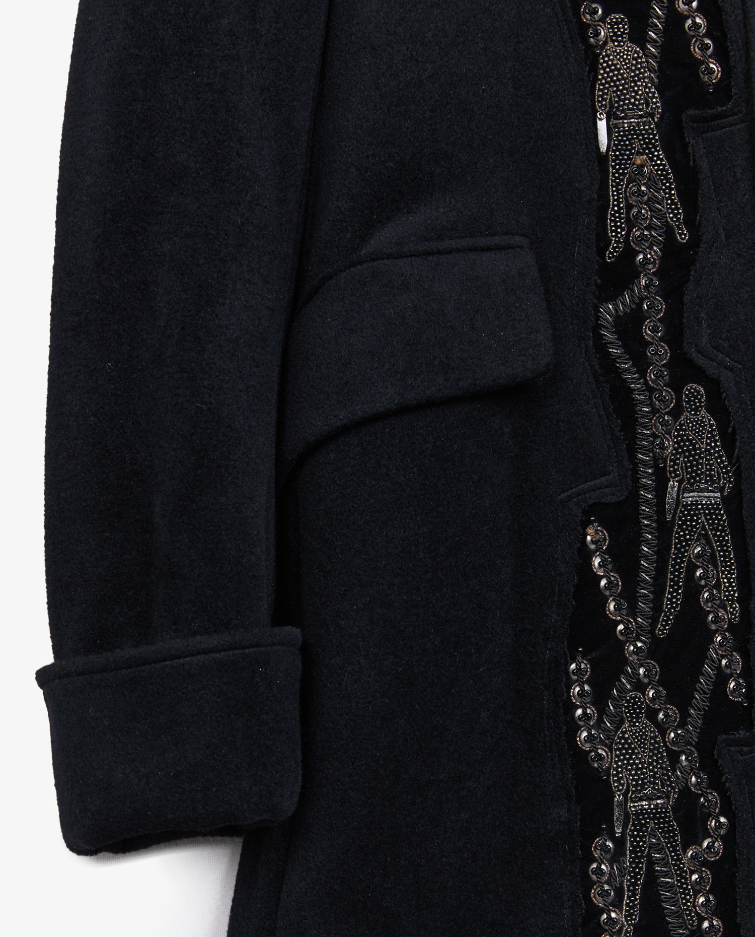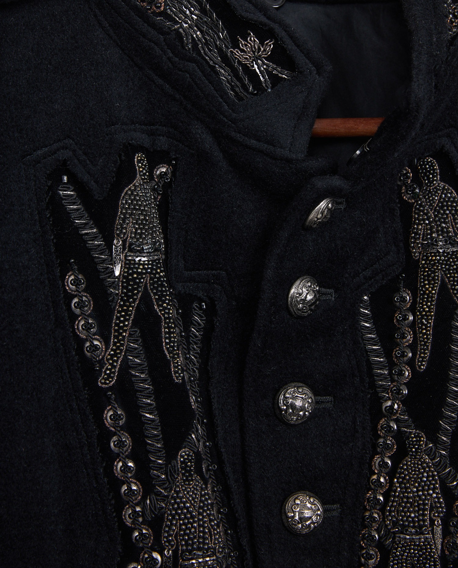 Kohshin Satoh embroidered pea jacket in black wool and cashmere. Mao collar. Size 46. In very good condition.