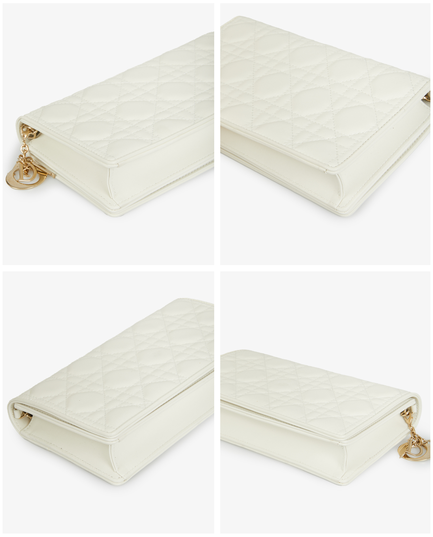 Lady Dior bag in white leather. Snap closure. Pale gold jewelry. In very good condition.