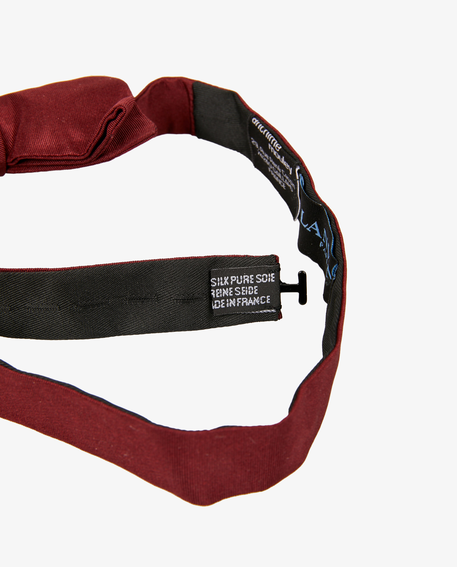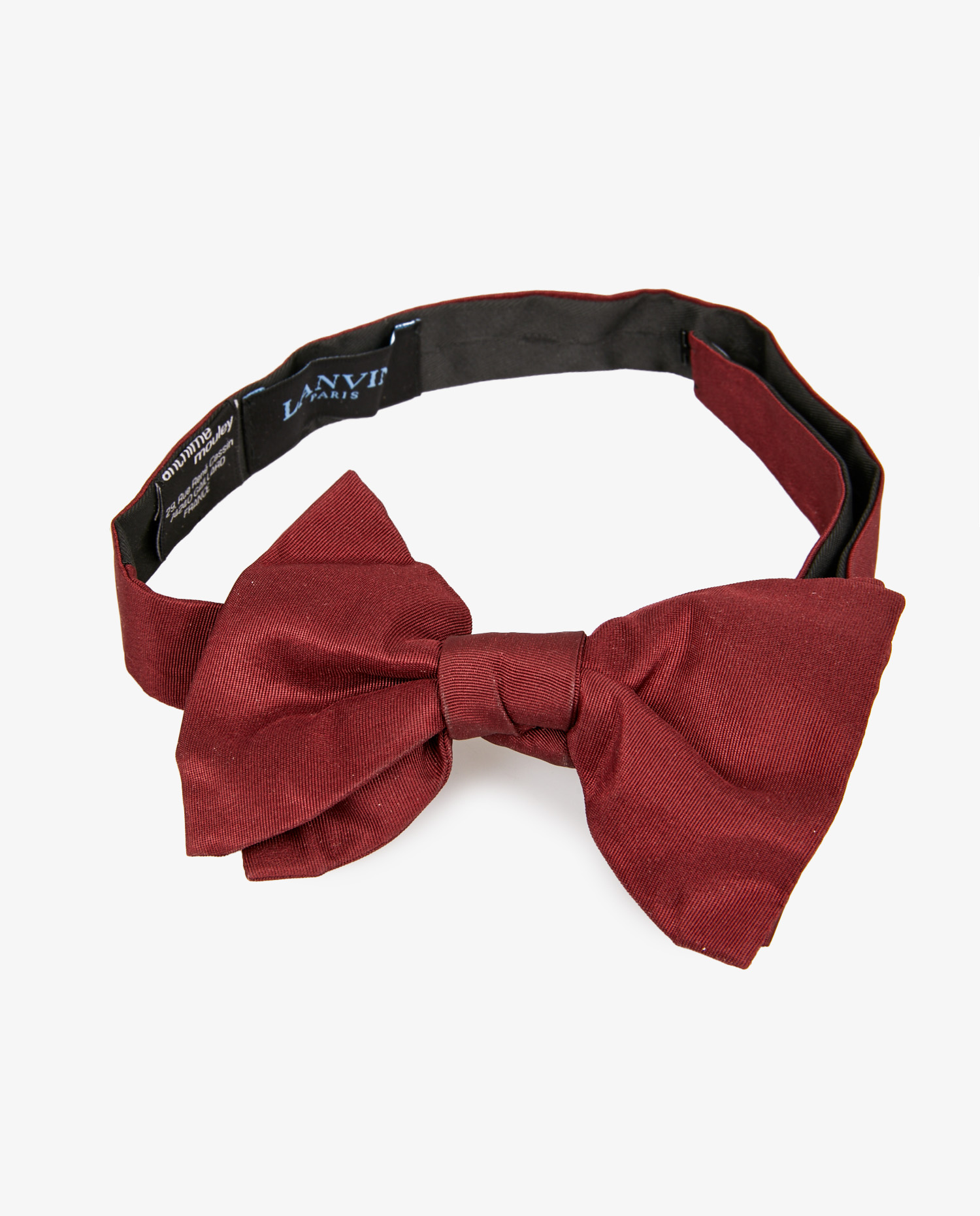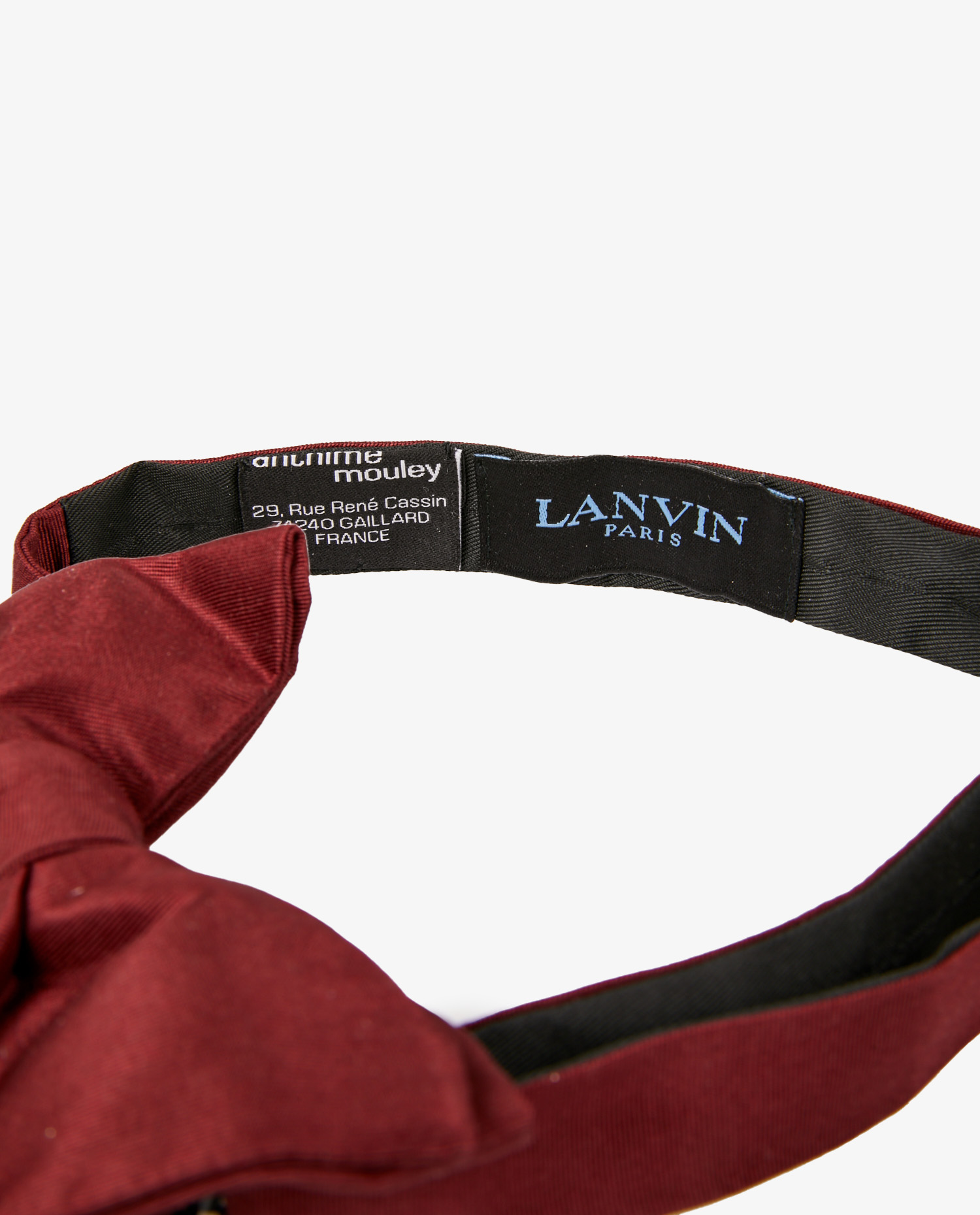 This burgundy silk bow tie by Maison Lanvin is ideal for enhancing a tuxedo or formal wear. Its understated elegance makes it a versatile accessory, both classic and modern. It comes pre-tied with an adjustable tie. In very good condition.
