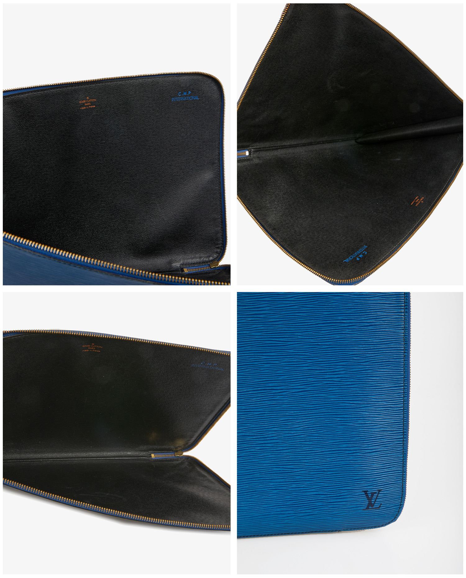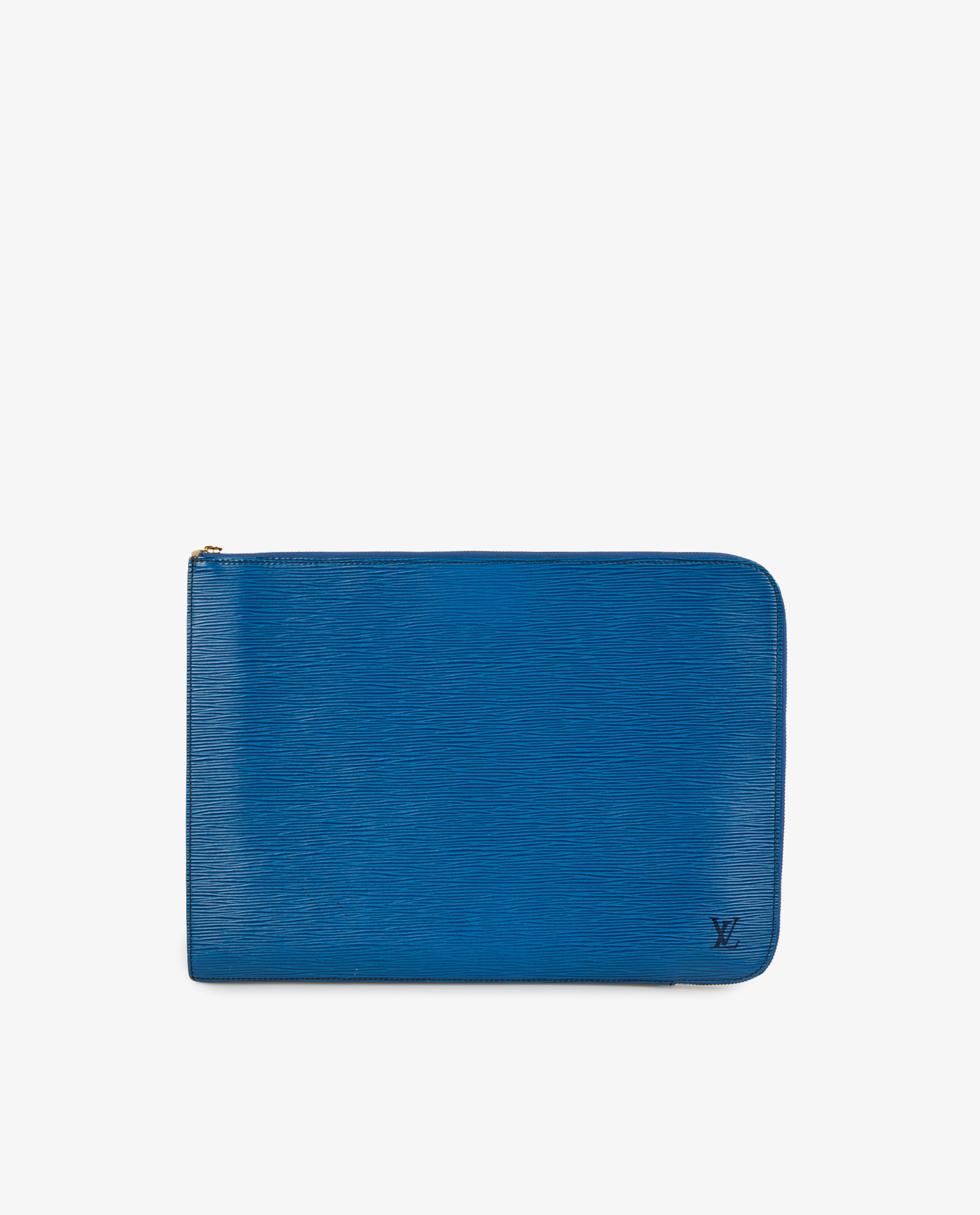 Vintage Louis Vuitton document case in blue herringbone leather. Zipper closure. In very good condition.