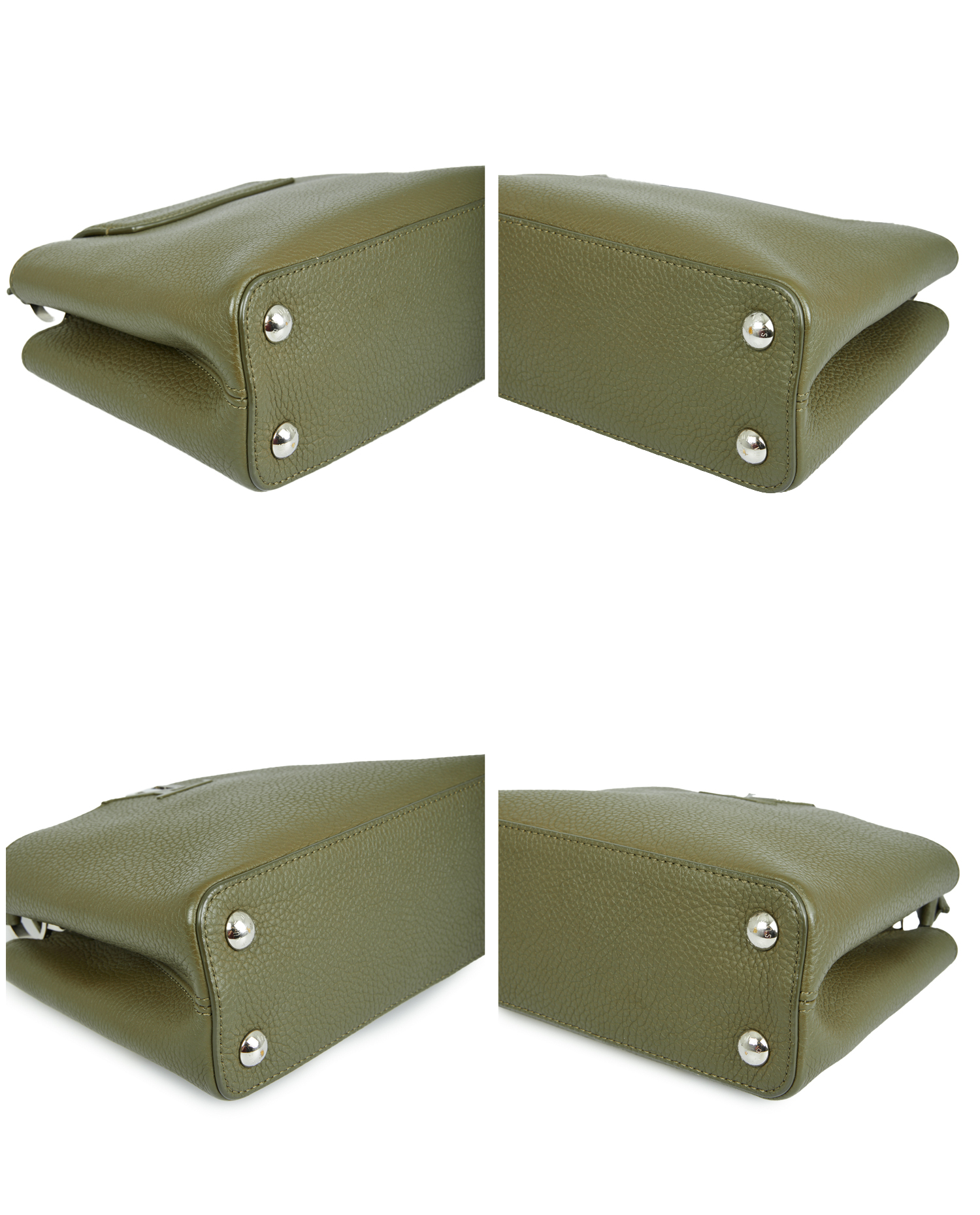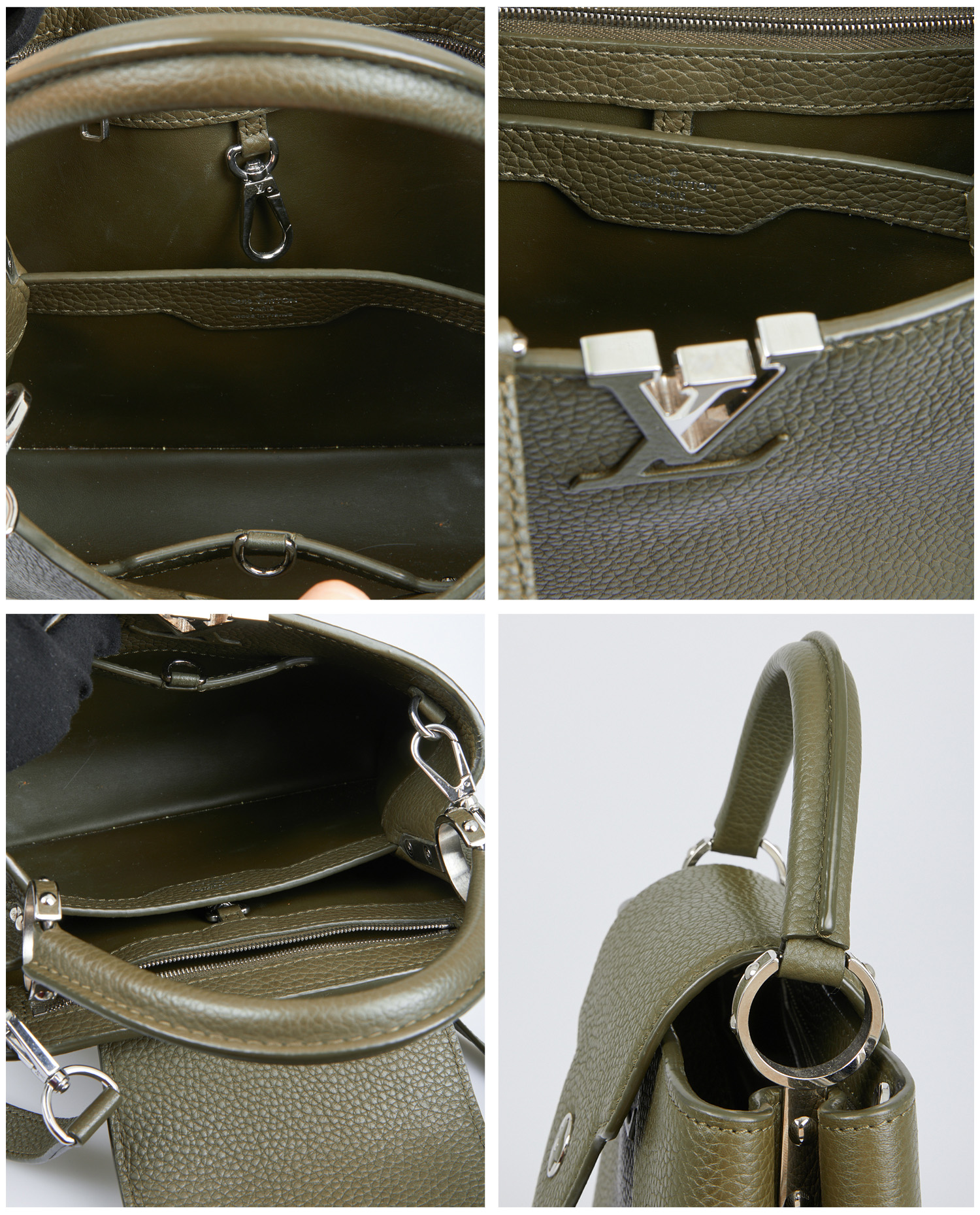 Louis Vuitton Capucines bag in green grained leather. Hand-carried or with removable, adjustable shoulder strap. In very good condition. Delivered in its original dustbag.