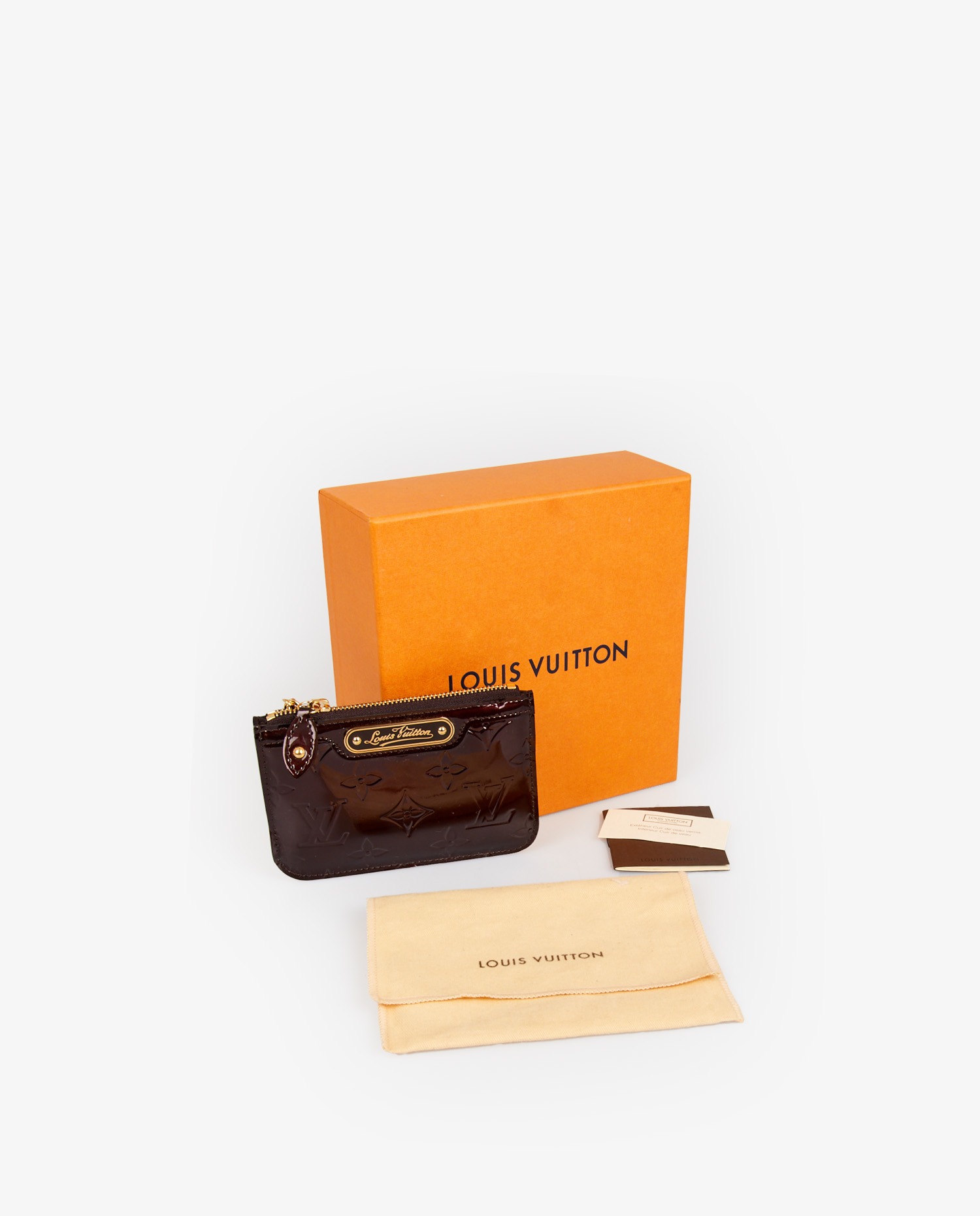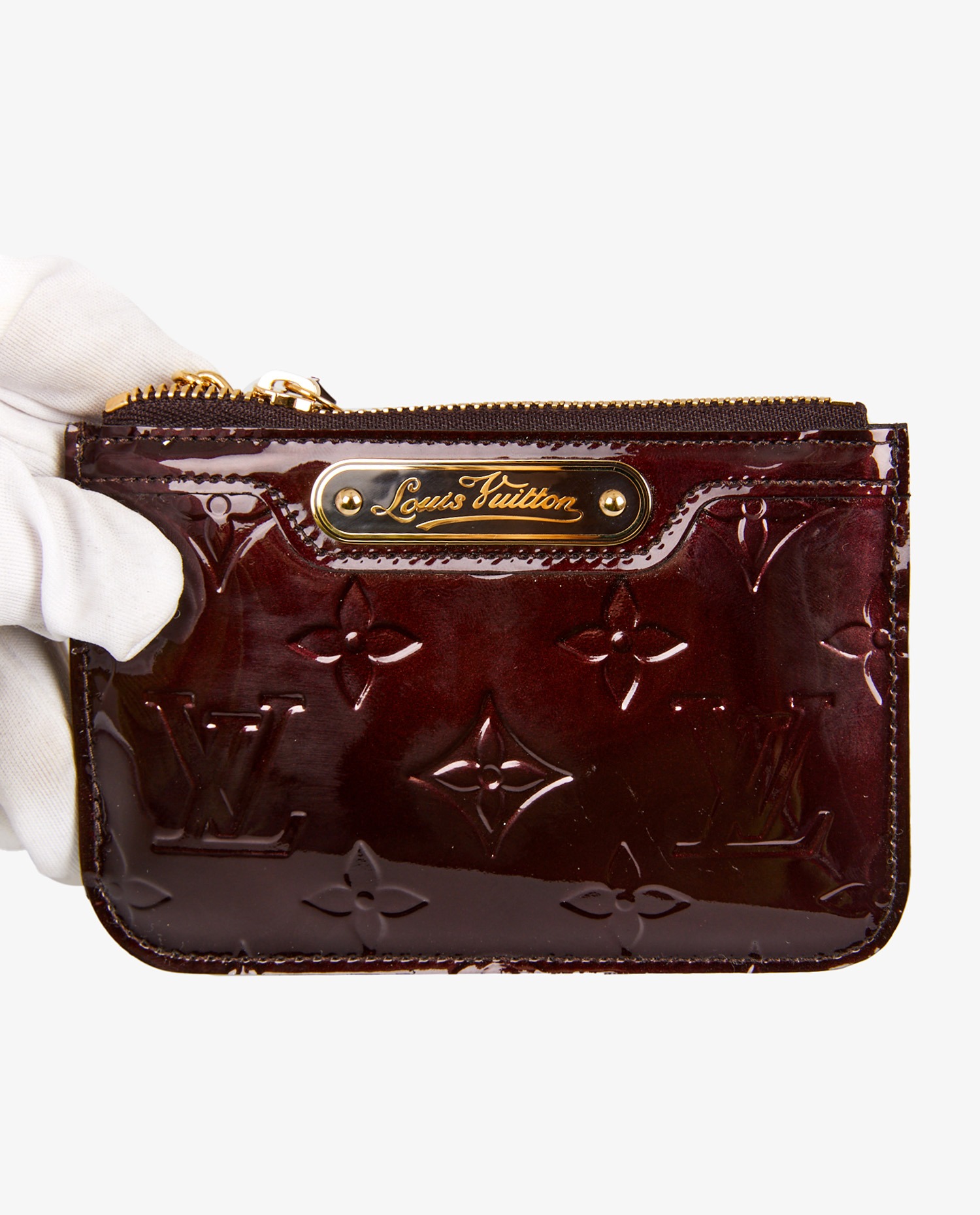 Louis Vuitton key pouch in burgundy patent leather. Zipper closure. In very good condition. Delivered in its original dustbag and box.