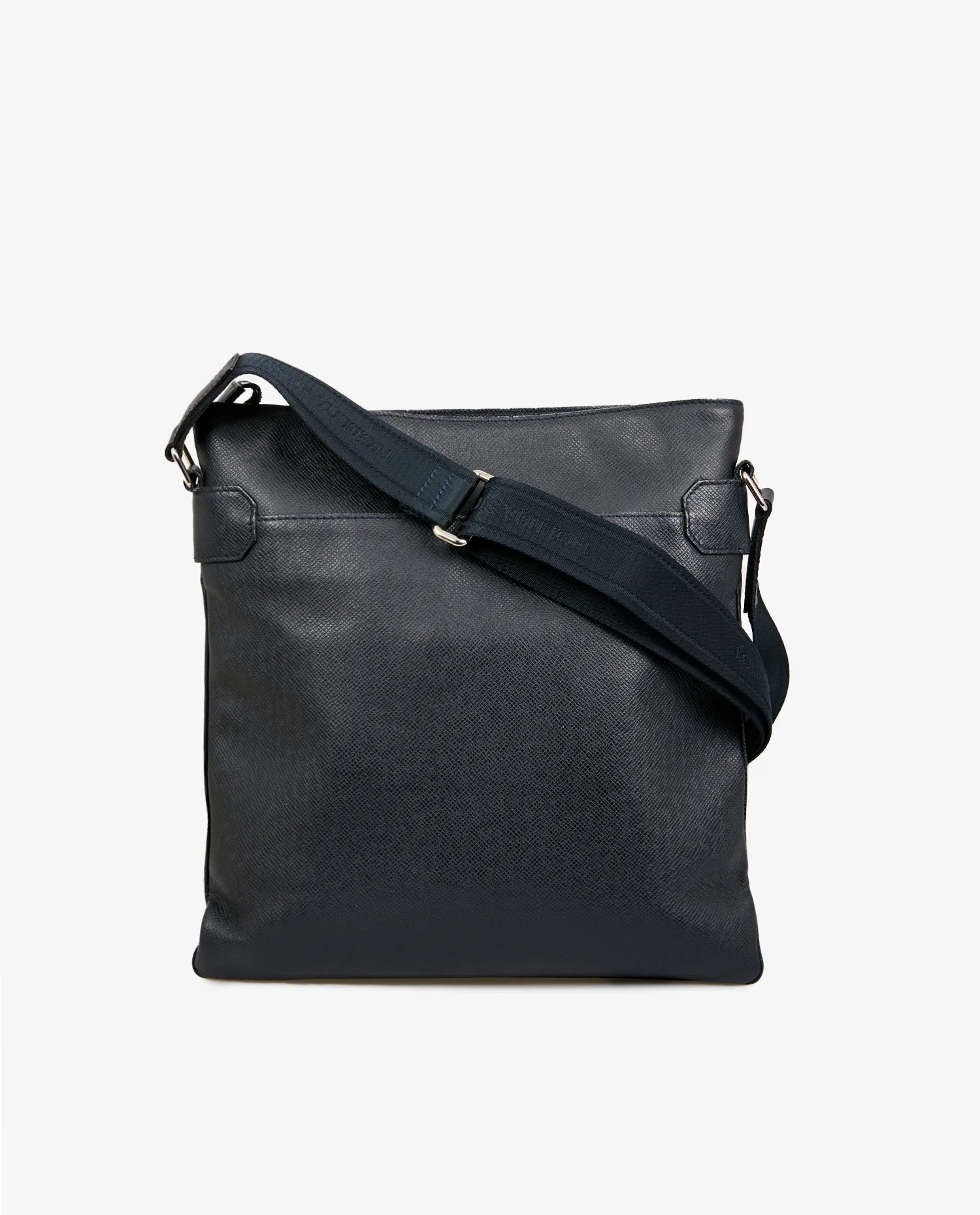 Louis Vuitton satchel in navy blue grained leather. Worn on the shoulder or cross-body with an adjustable nylon shoulder strap. Silver zipper for added security. The interior is made of fabric. In very good condition. Delivered in its original dustbag.