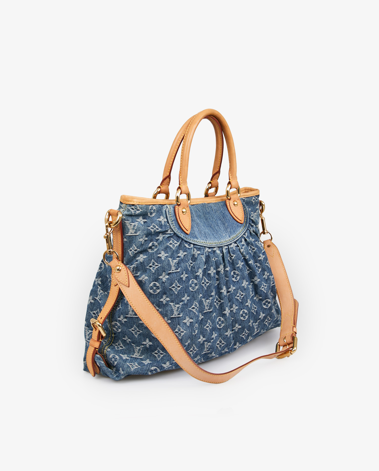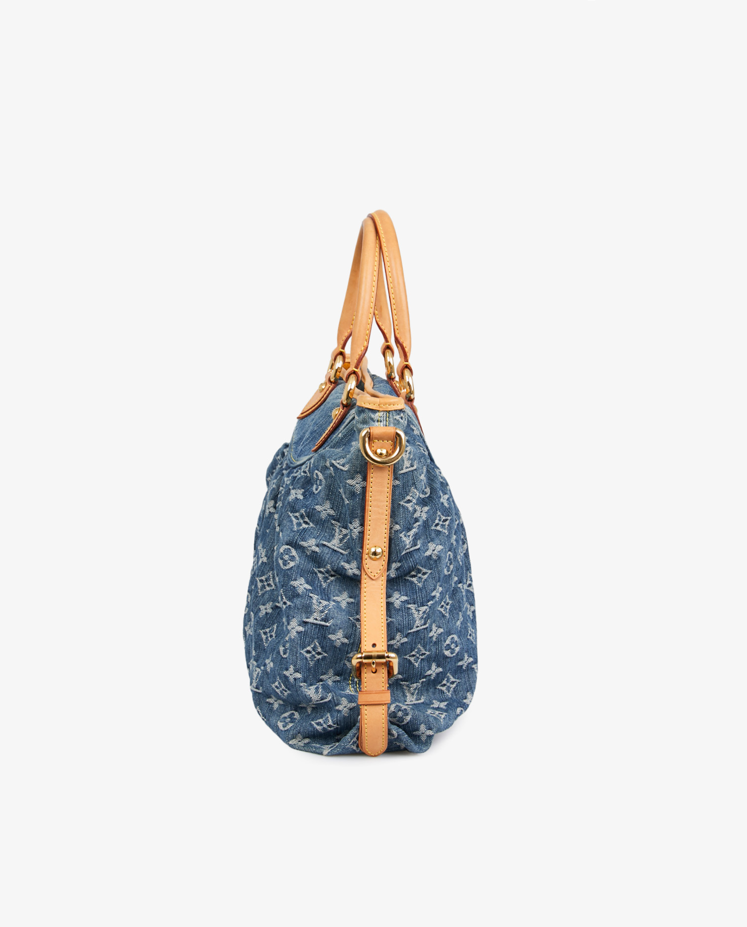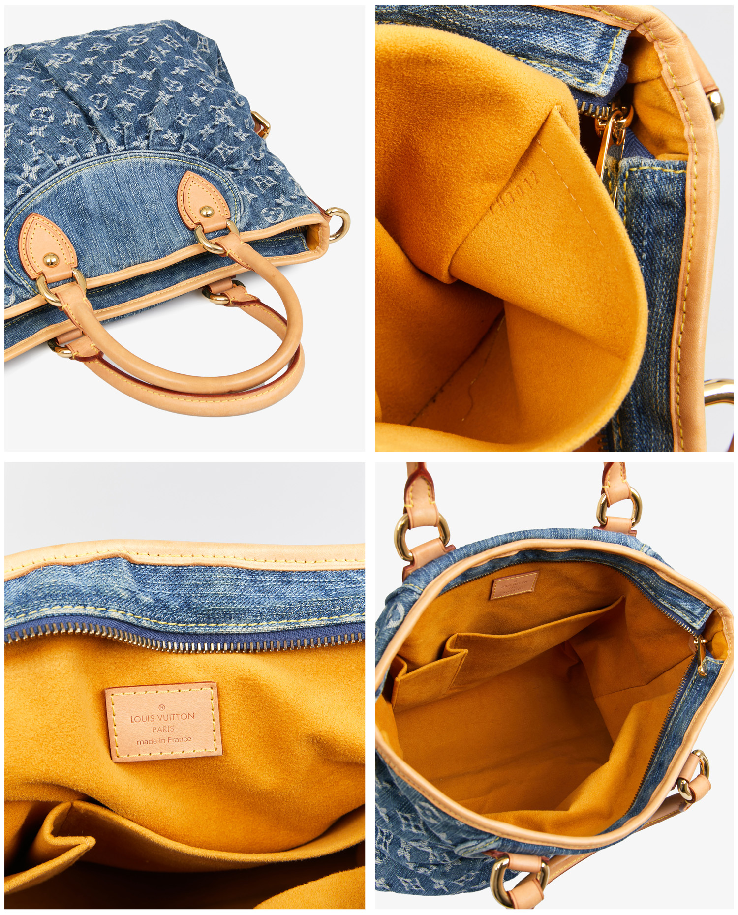 Louis Vuitton “Neo Cabby” vintage tote bag in blue denim canvas. Finishes and handles are in natural cowhide. The jewelry is gold-plated. Zippered closure for added security. It can be worn by hand, on the shoulder or as a crossbody with a removable shoulder strap. In very good condition.