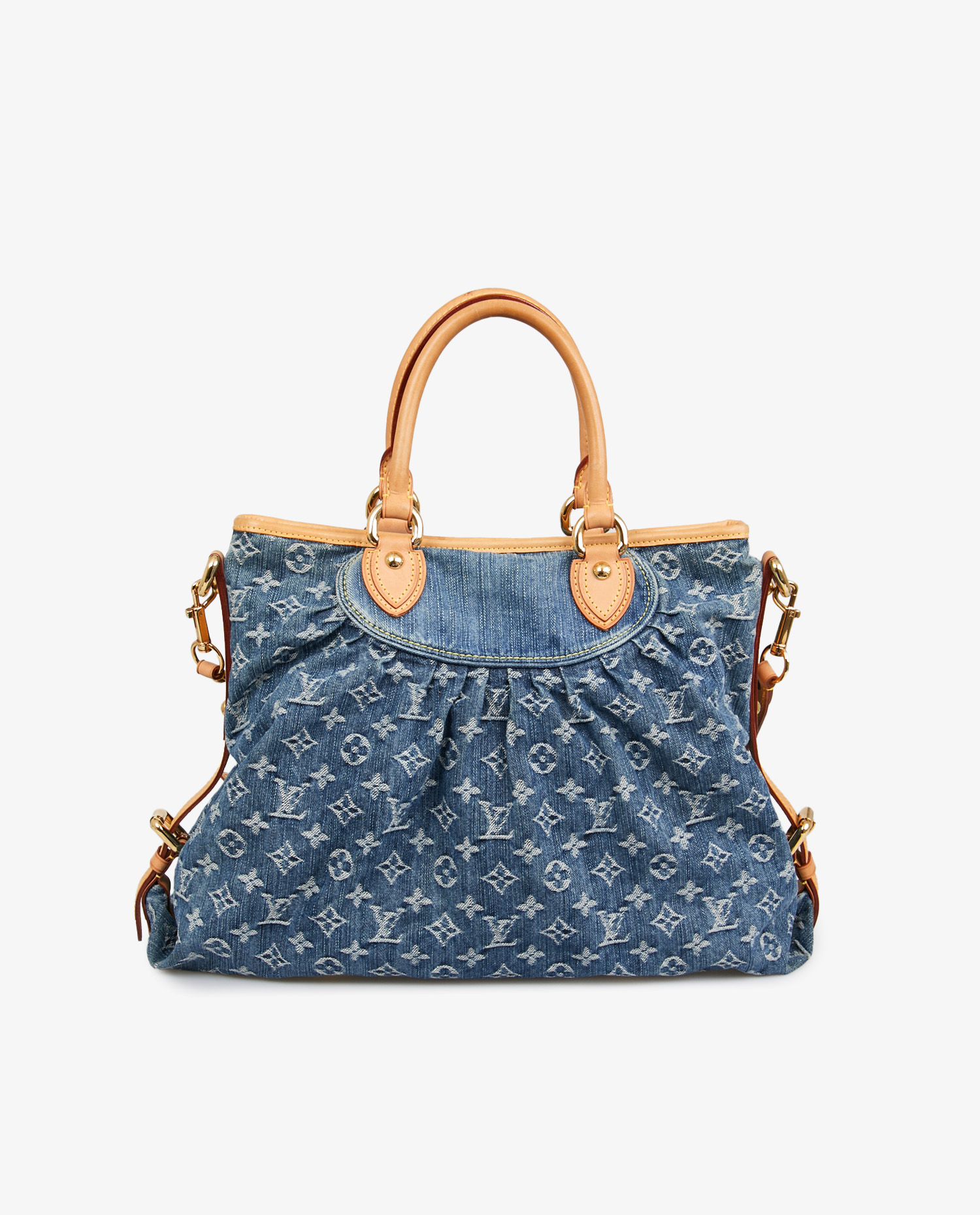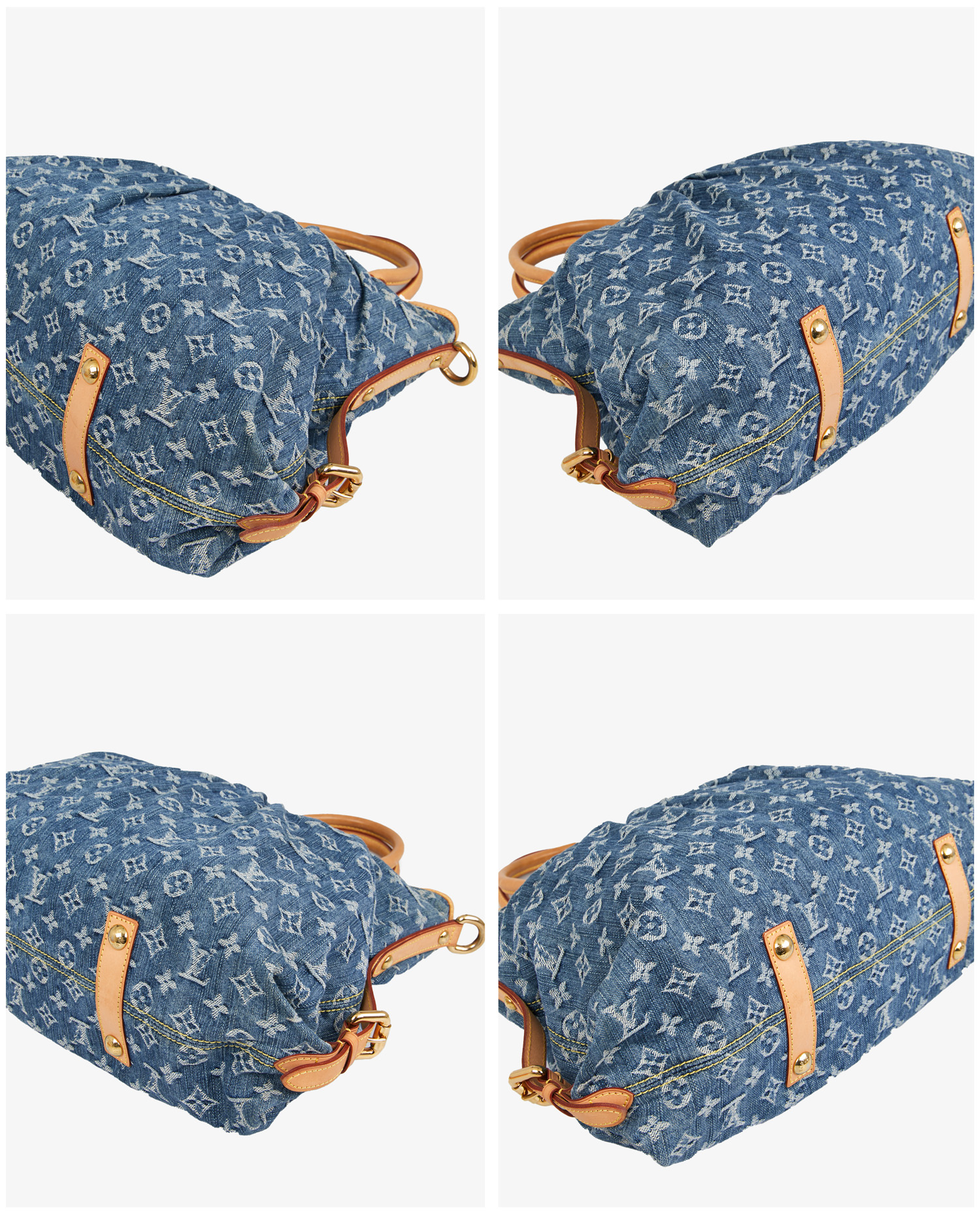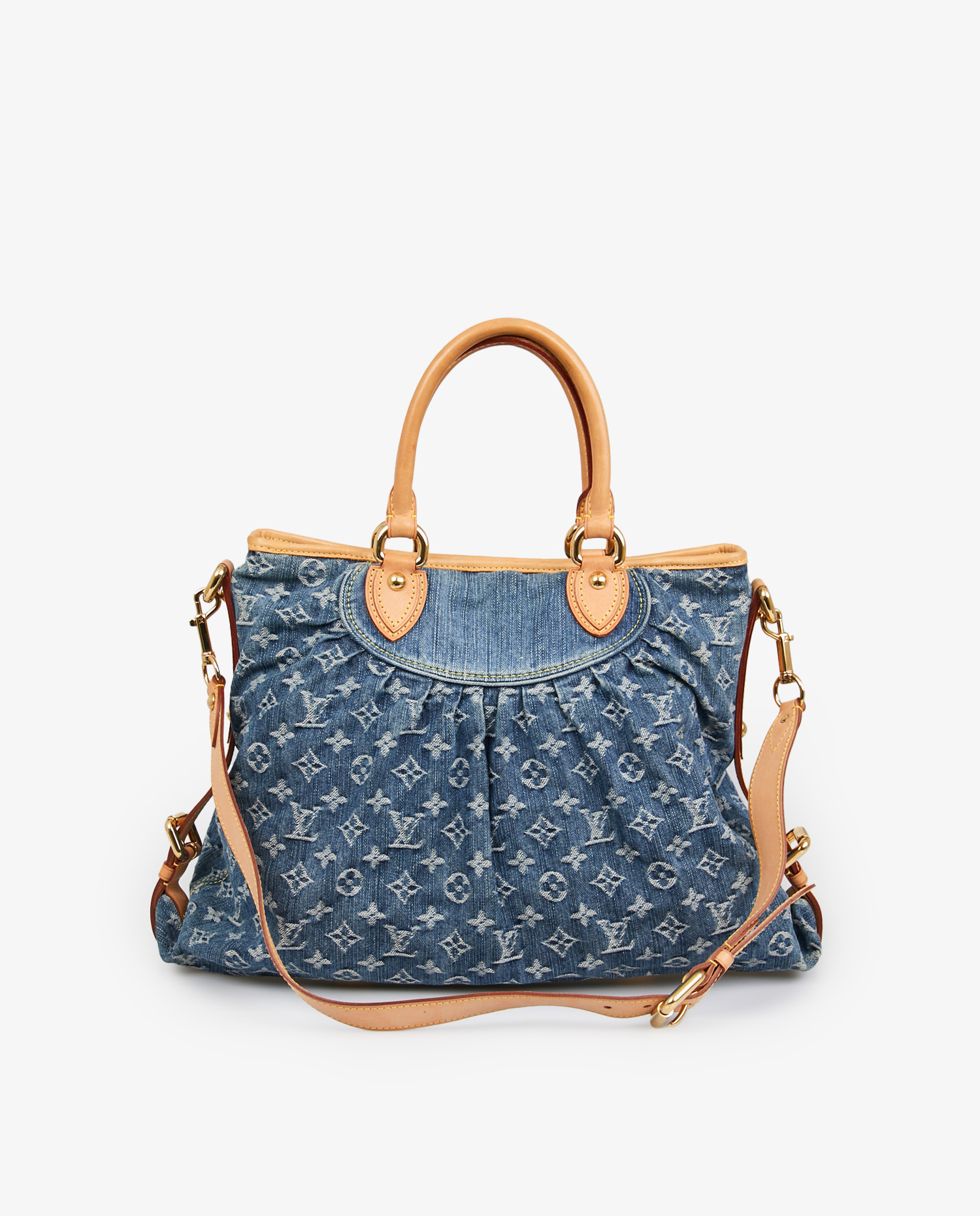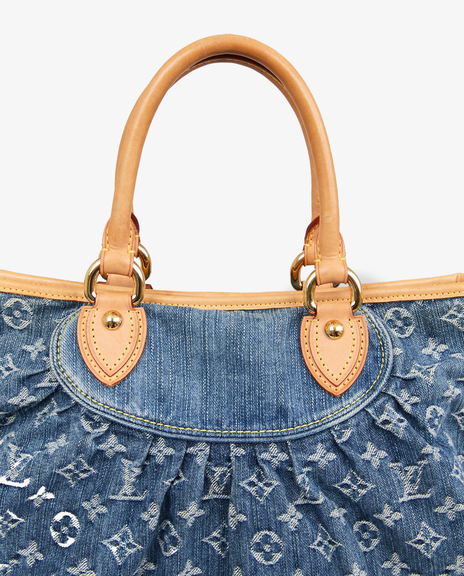 Louis Vuitton “Neo Cabby” vintage tote bag in blue denim canvas. Finishes and handles are in natural cowhide. The jewelry is gold-plated. Zippered closure for added security. It can be worn by hand, on the shoulder or as a crossbody with a removable shoulder strap. In very good condition.