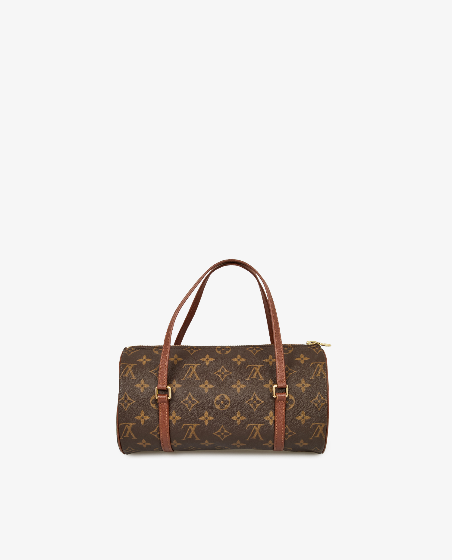 Vintage Louis Vuitton Papillon bag in monogram canvas with brown leather trim. Zipper closure. Worn on the arm. In very good condition.