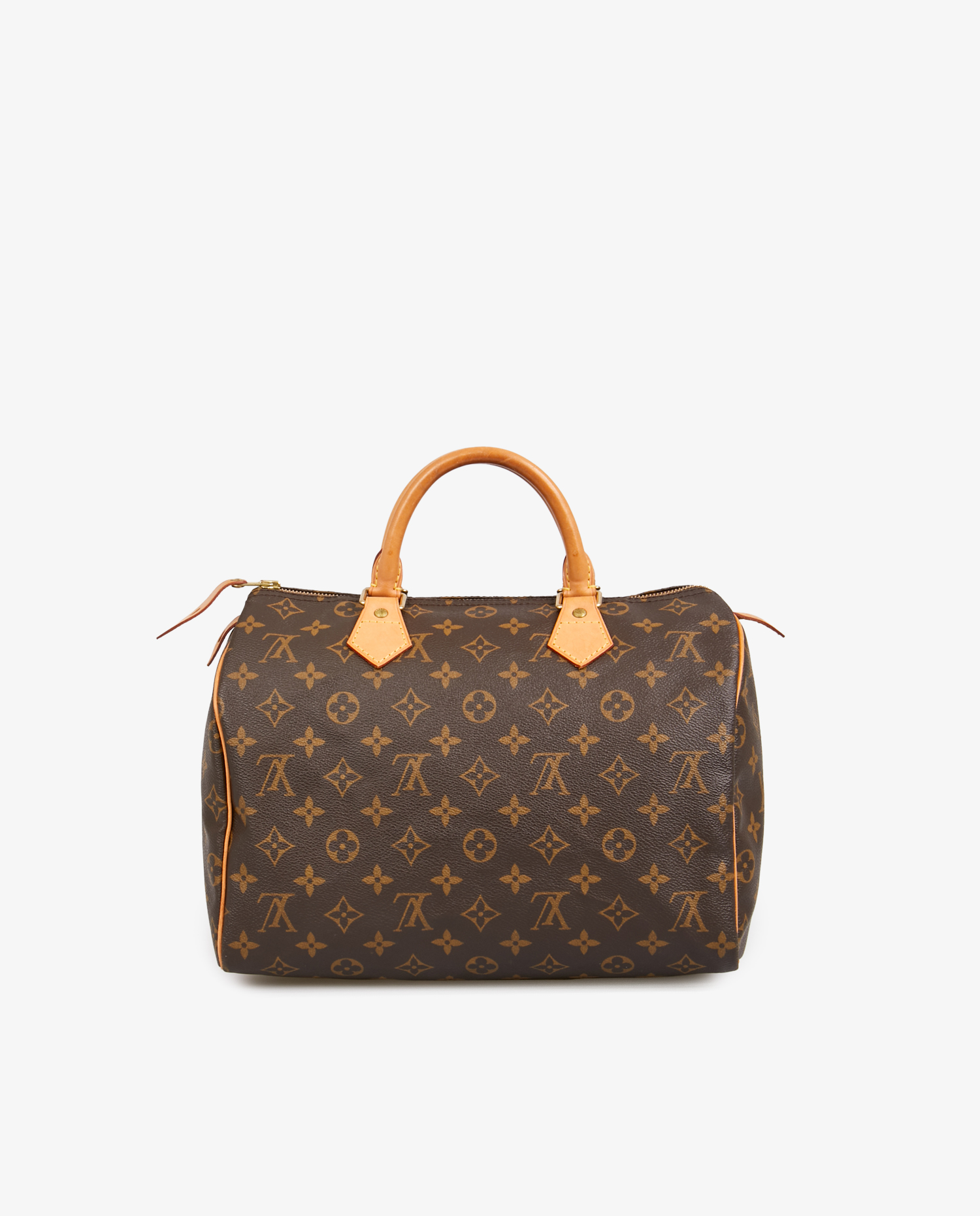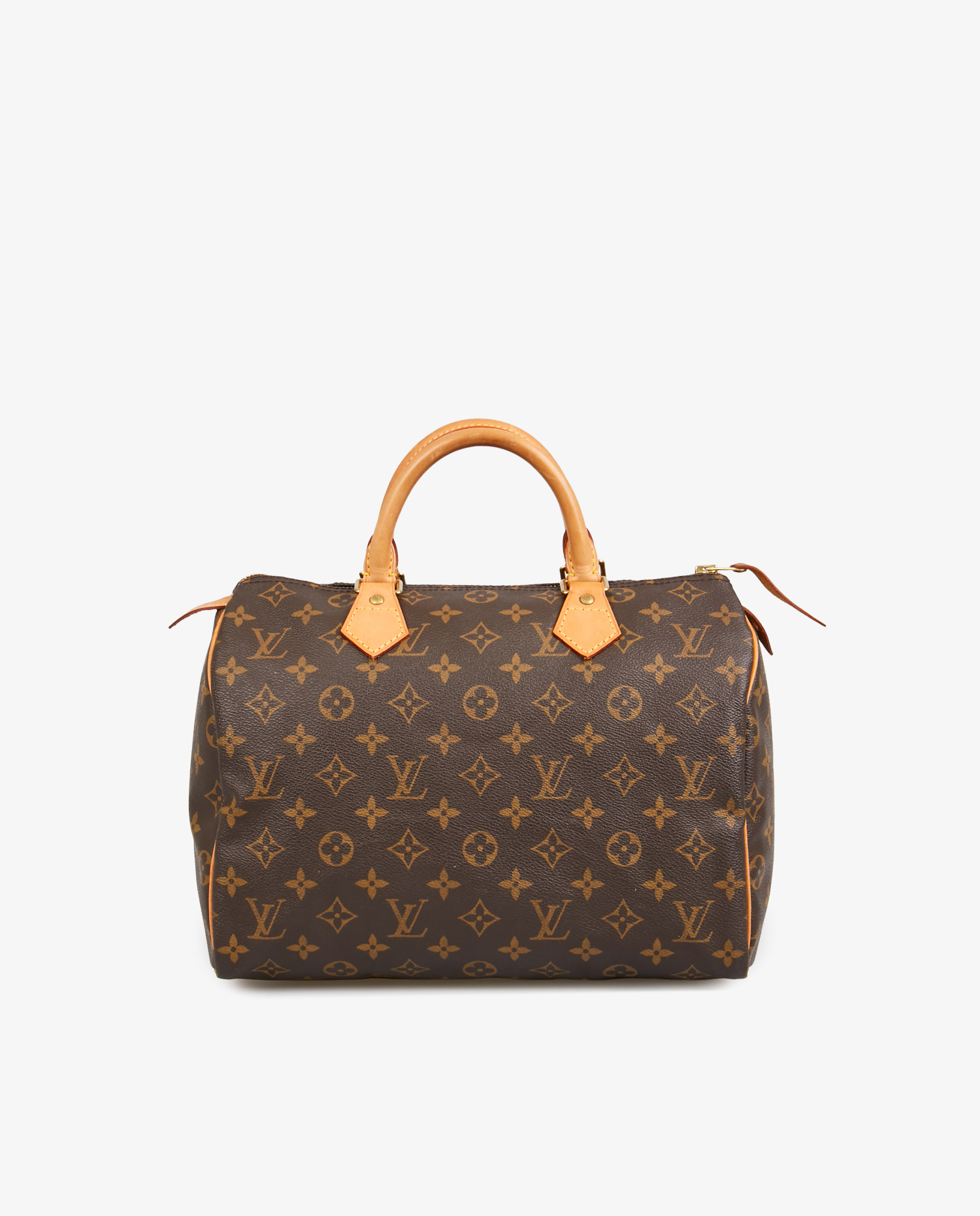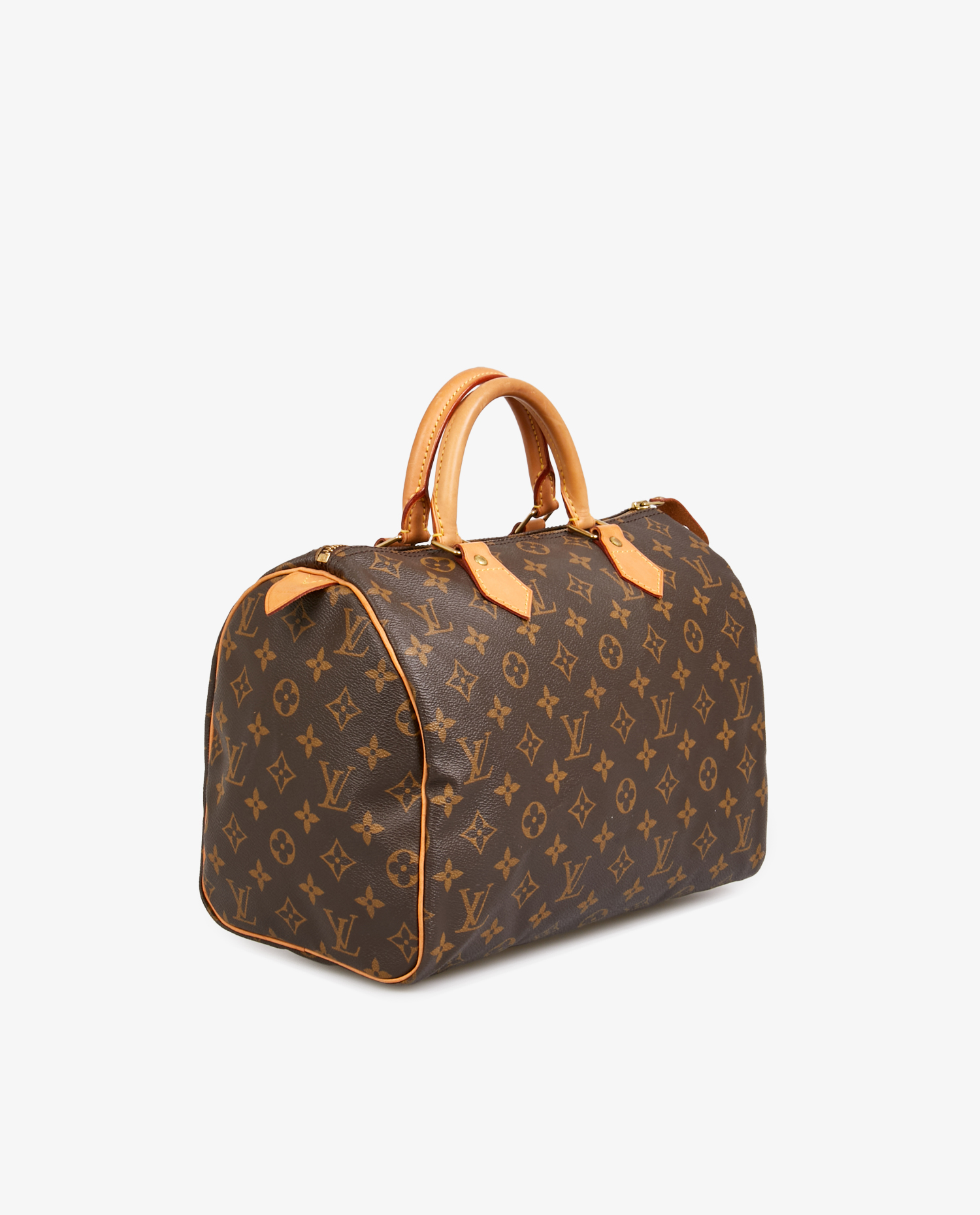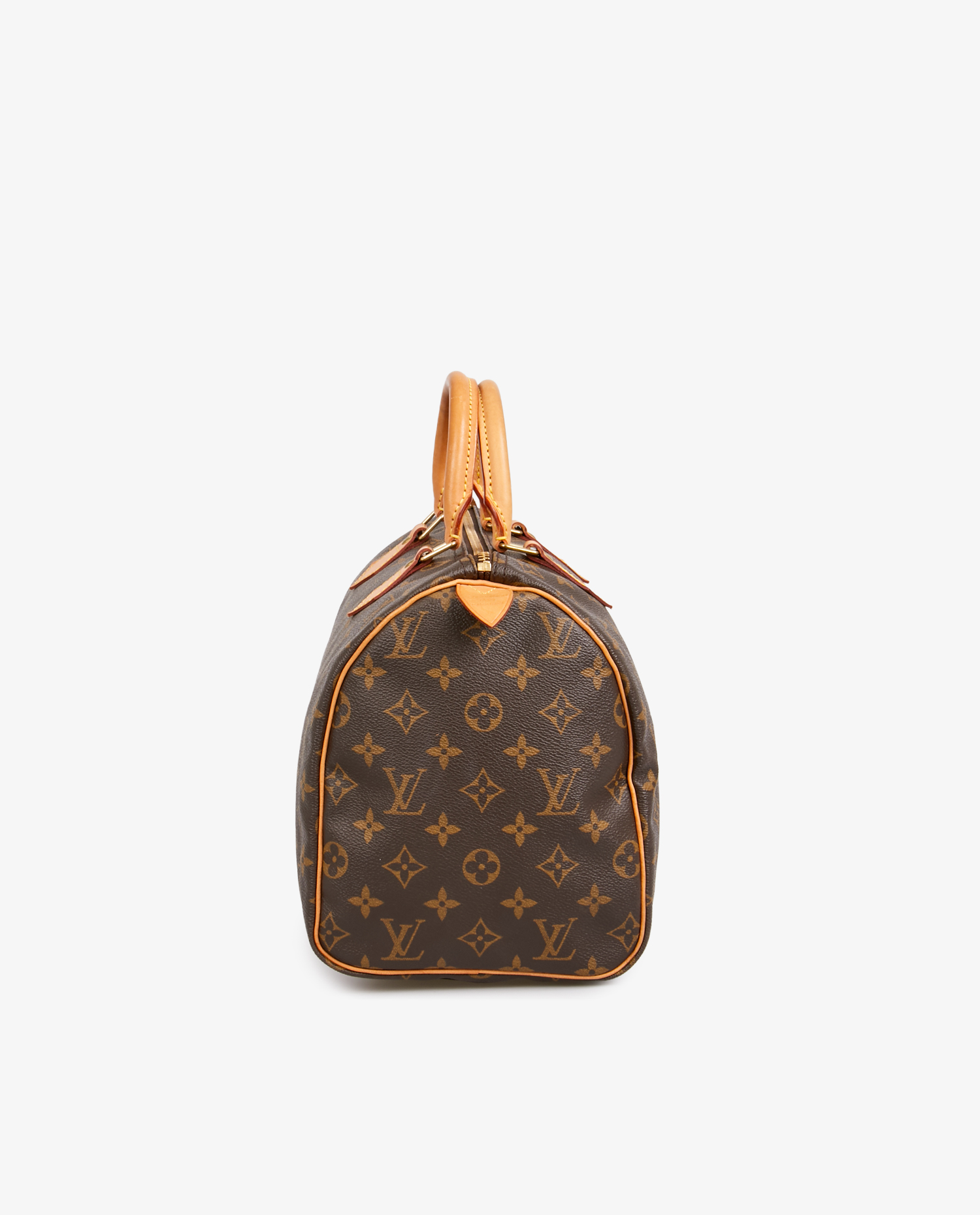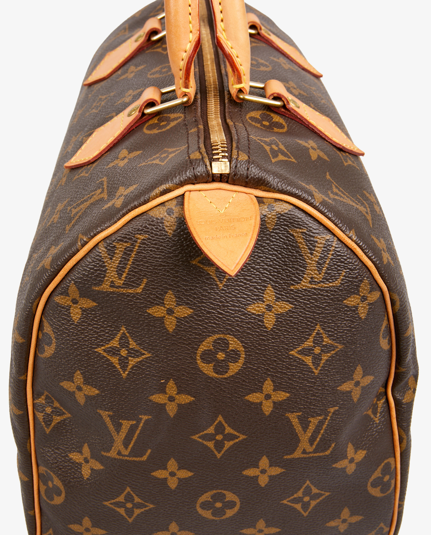 Speedy 30cm bag in Louis Vuitton monogram canvas. Zipper closure. Hand-carried. Finished in gold calf leather. In very good condition. Very slight patina on the handles. See photos. It will be delivered in an Old Fashioned Club dustbag.