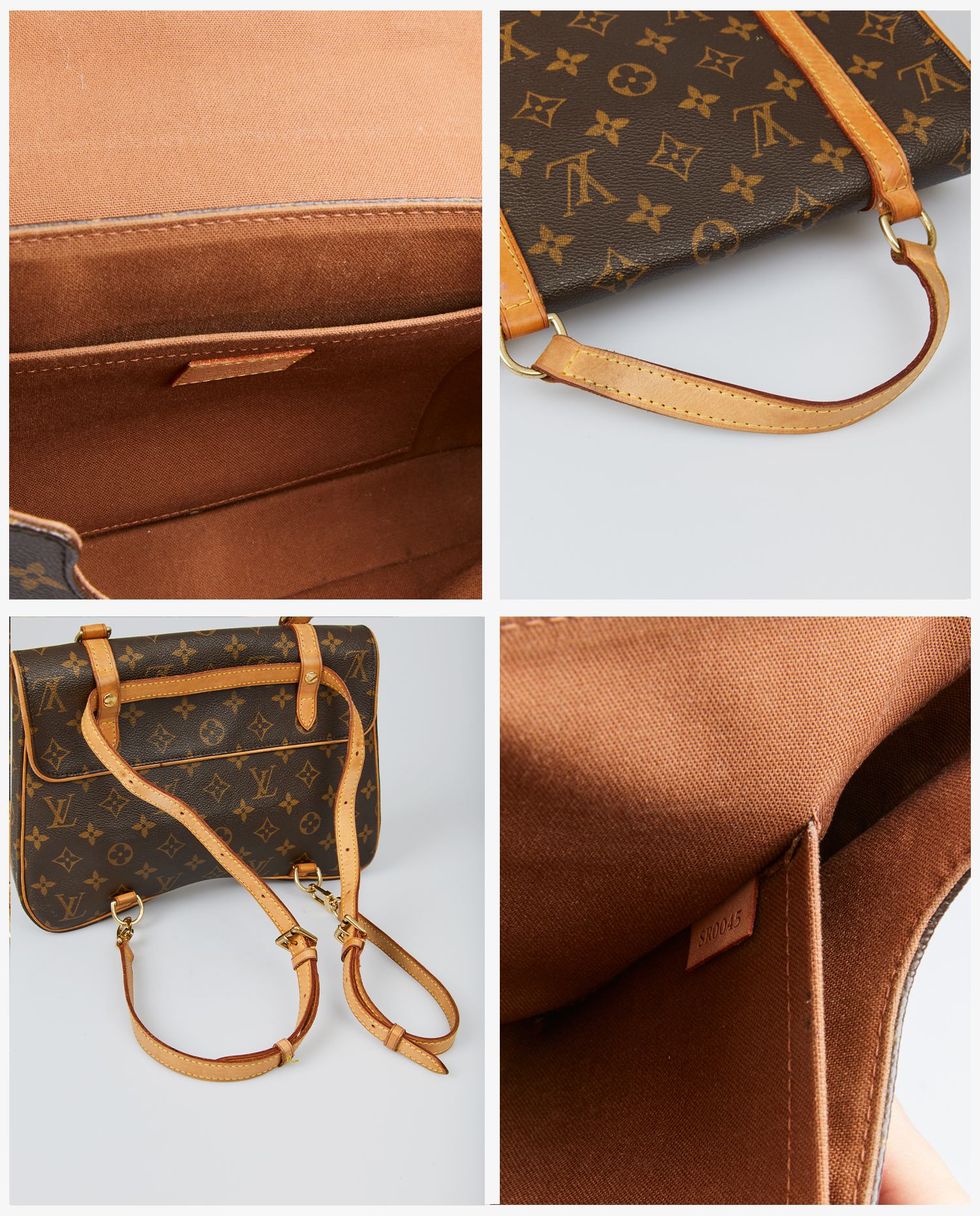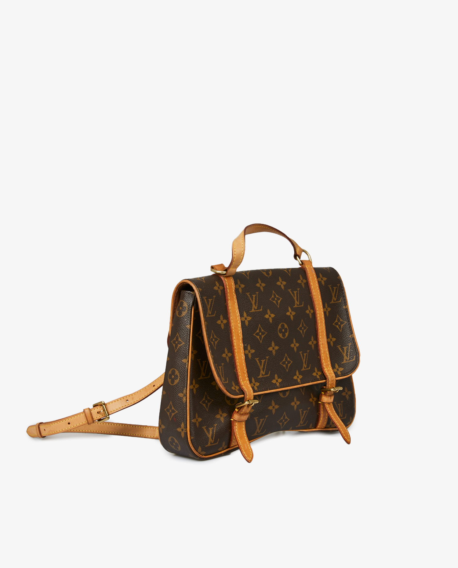 Vintage Louis Vuitton monogram canvas backpack. It’s shaped like a satchel. The interior is in brown canvas. Straps are adjustable (shortest 44cm, longest 59cm). In very good condition.