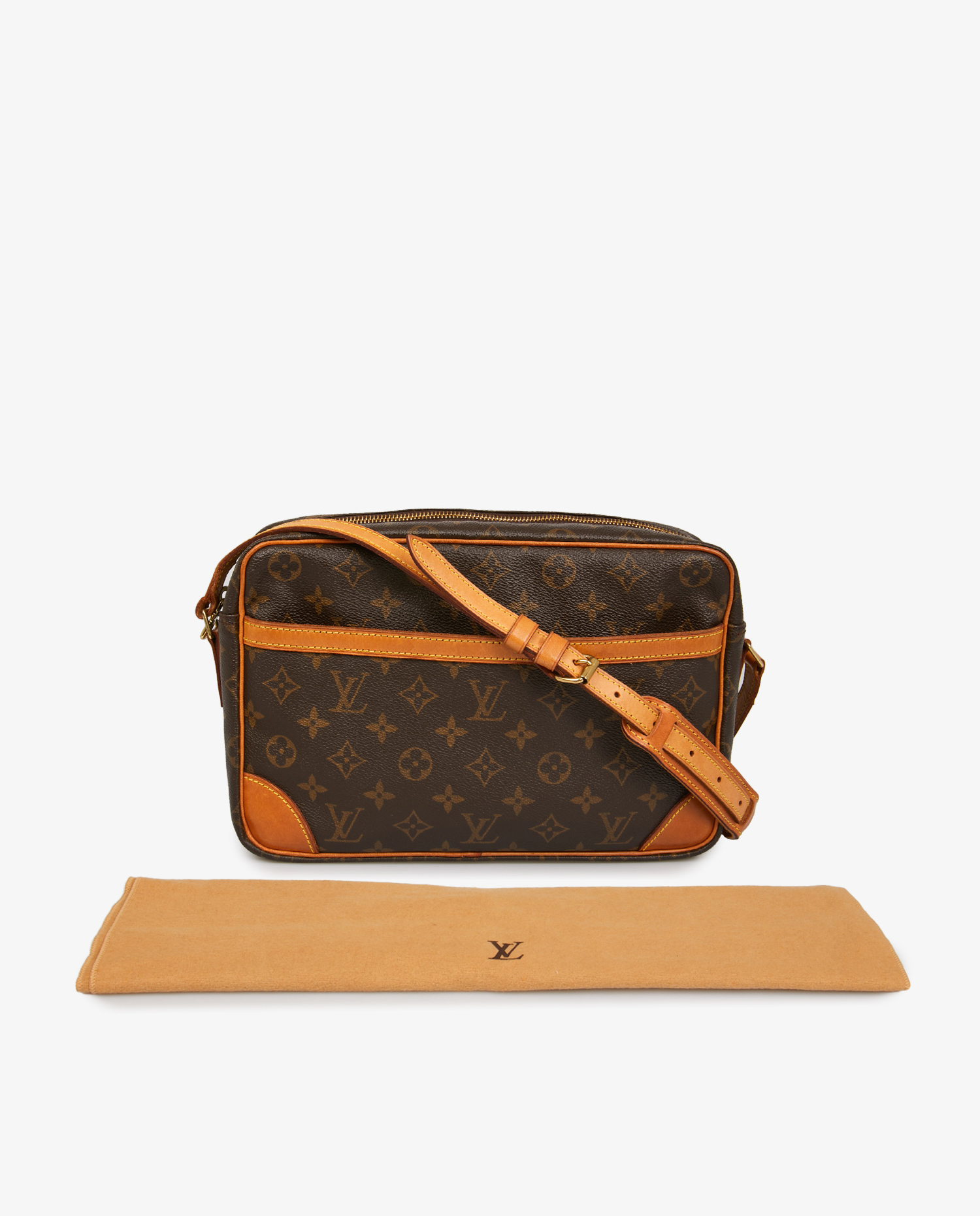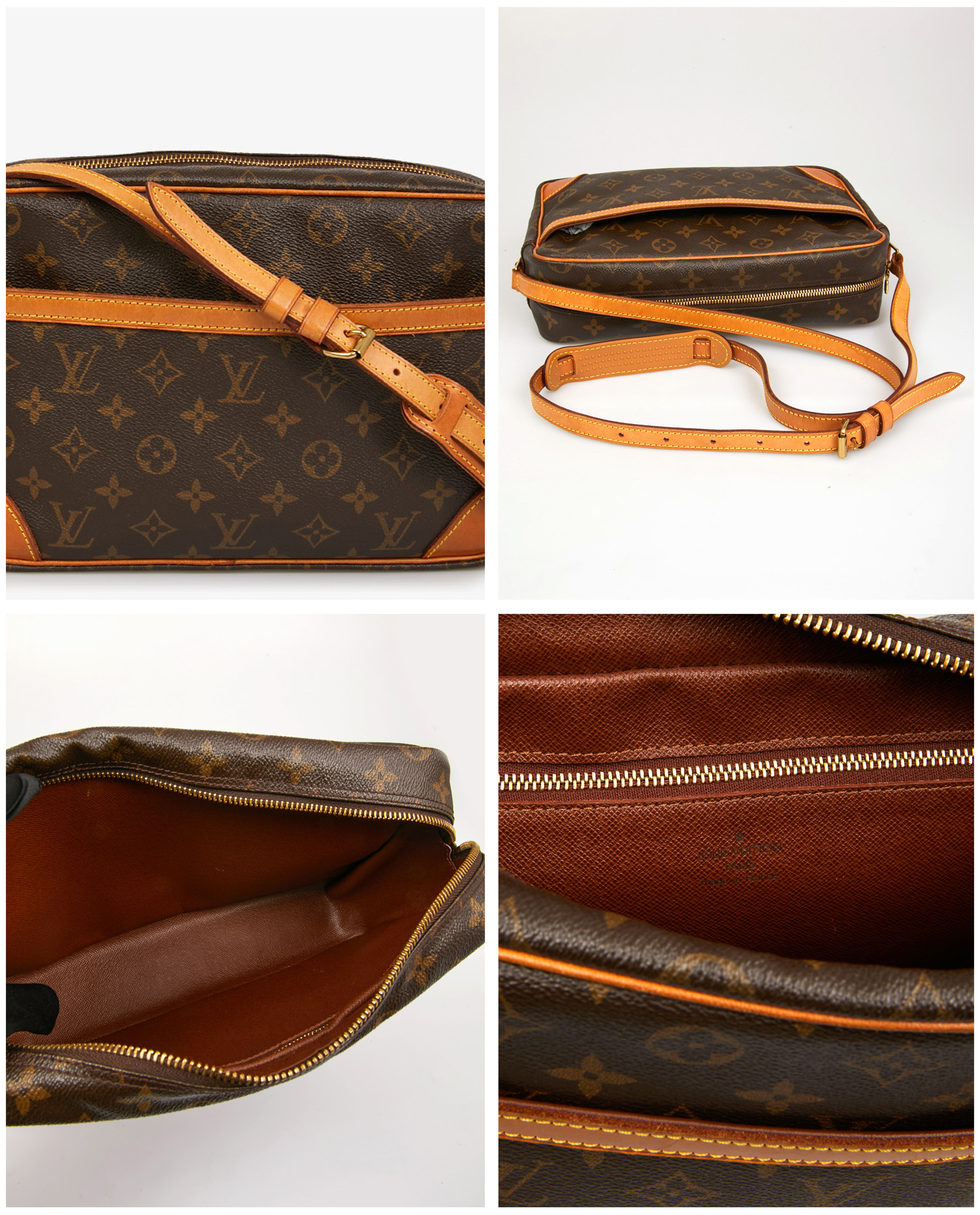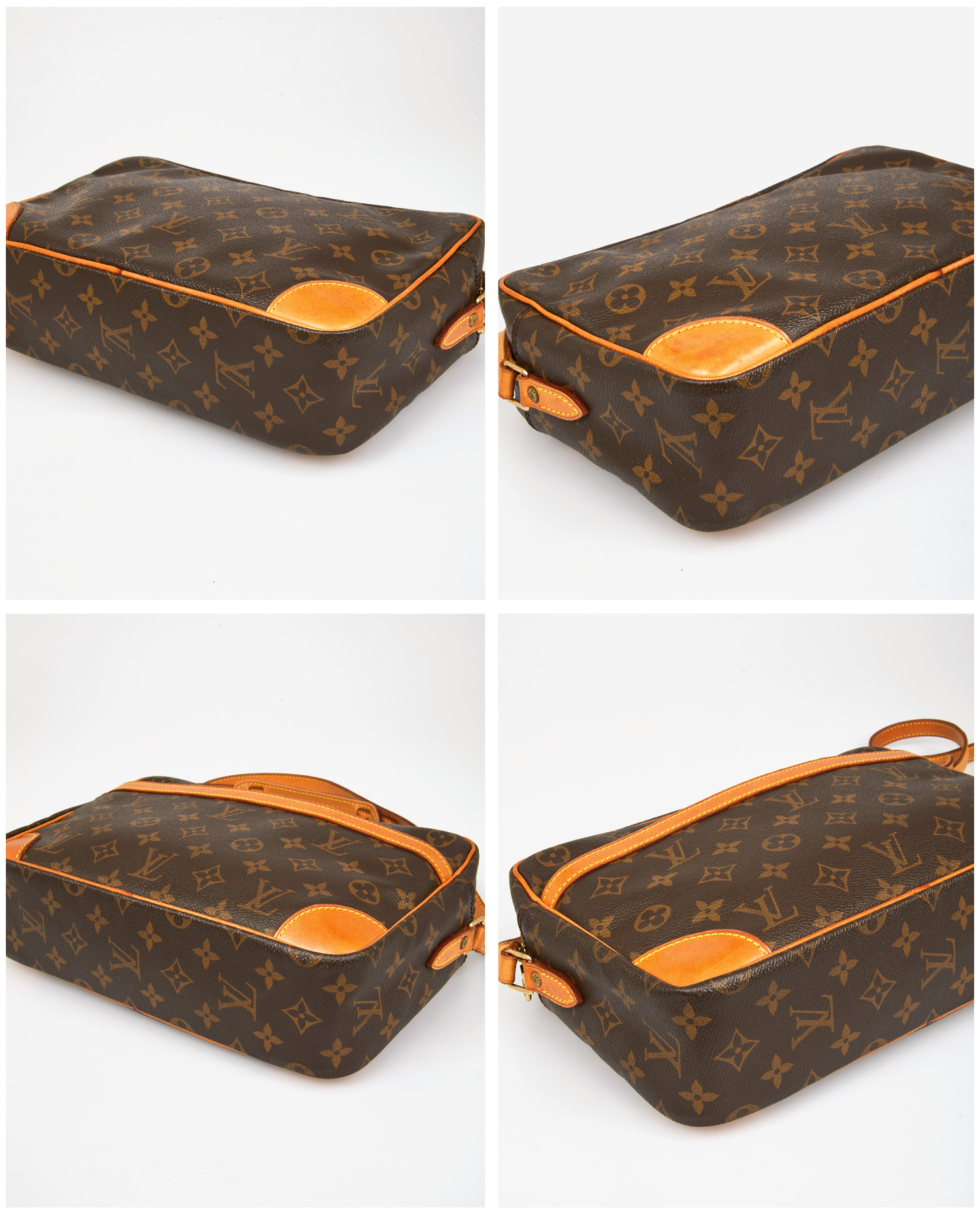 Avoid prolonged exposure to moisture or direct light to preserve the Monogram canvas. Occasionally apply a nourishing treatment to the natural leather to maintain its suppleness. Store the bag in its fabric cover, flat or lightly padded to retain its shape.