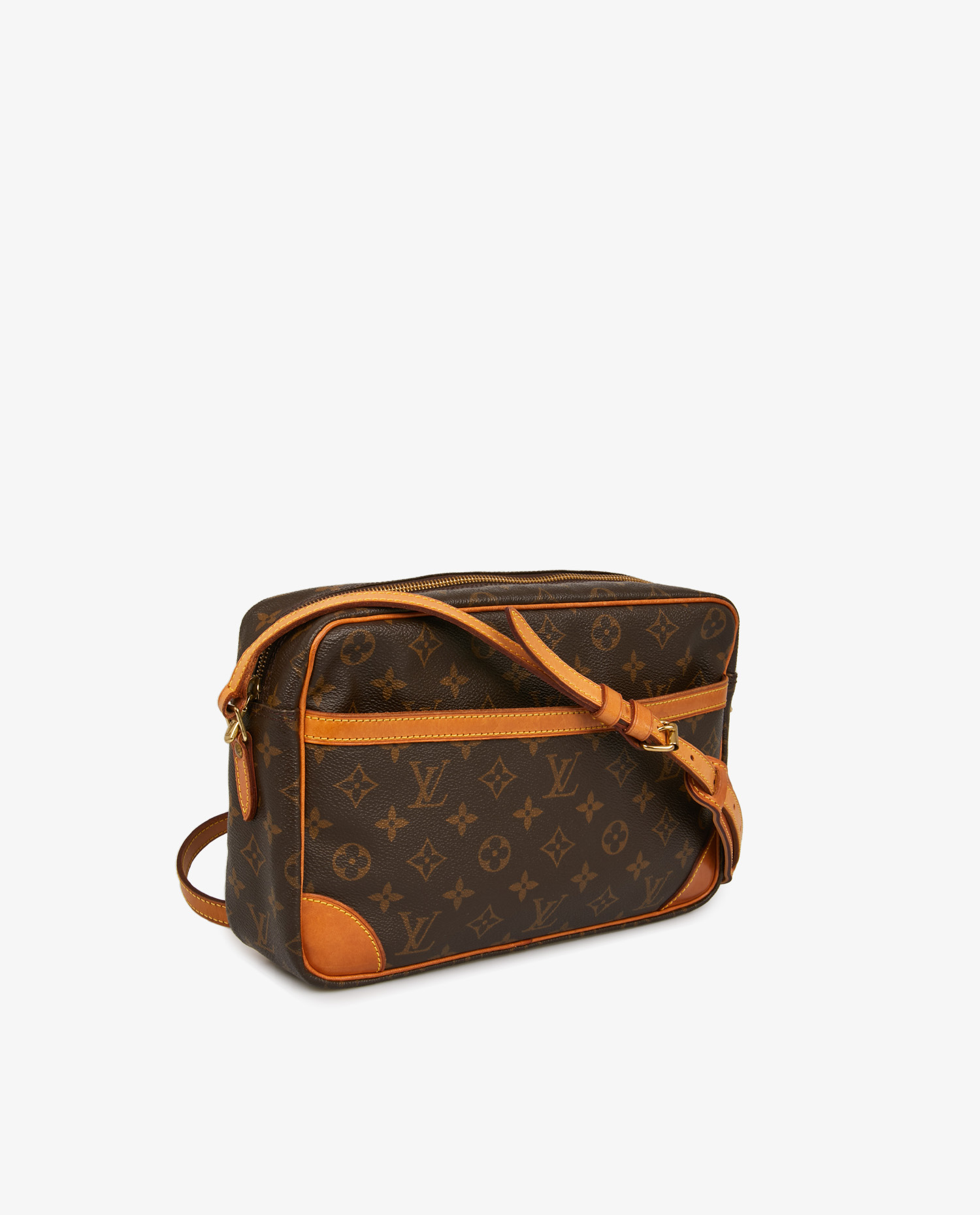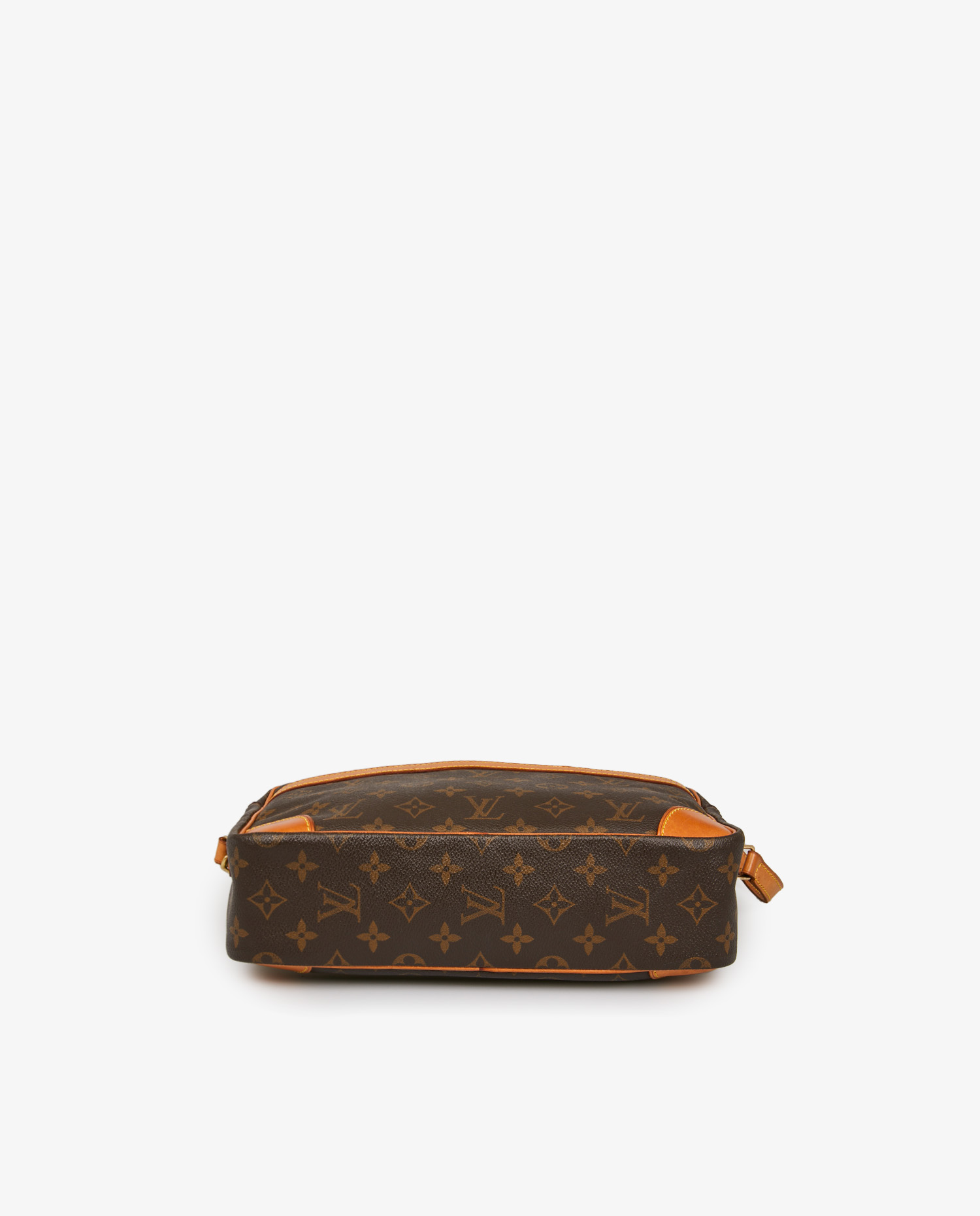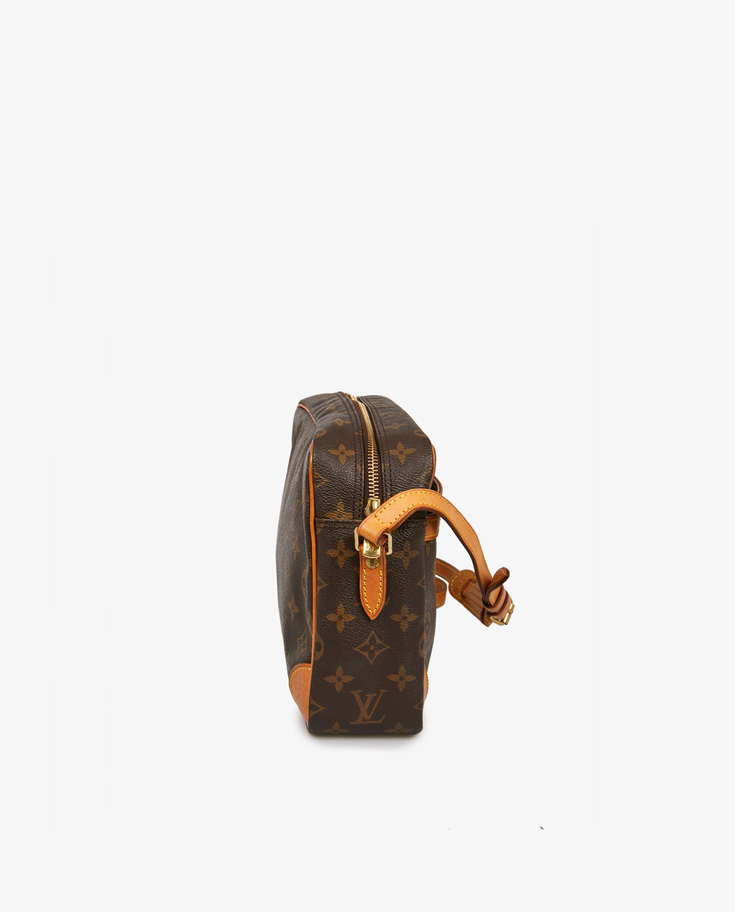 Avoid prolonged exposure to moisture or direct light to preserve the Monogram canvas. Occasionally apply a nourishing treatment to the natural leather to maintain its suppleness. Store the bag in its fabric cover, flat or lightly padded to retain its shape.