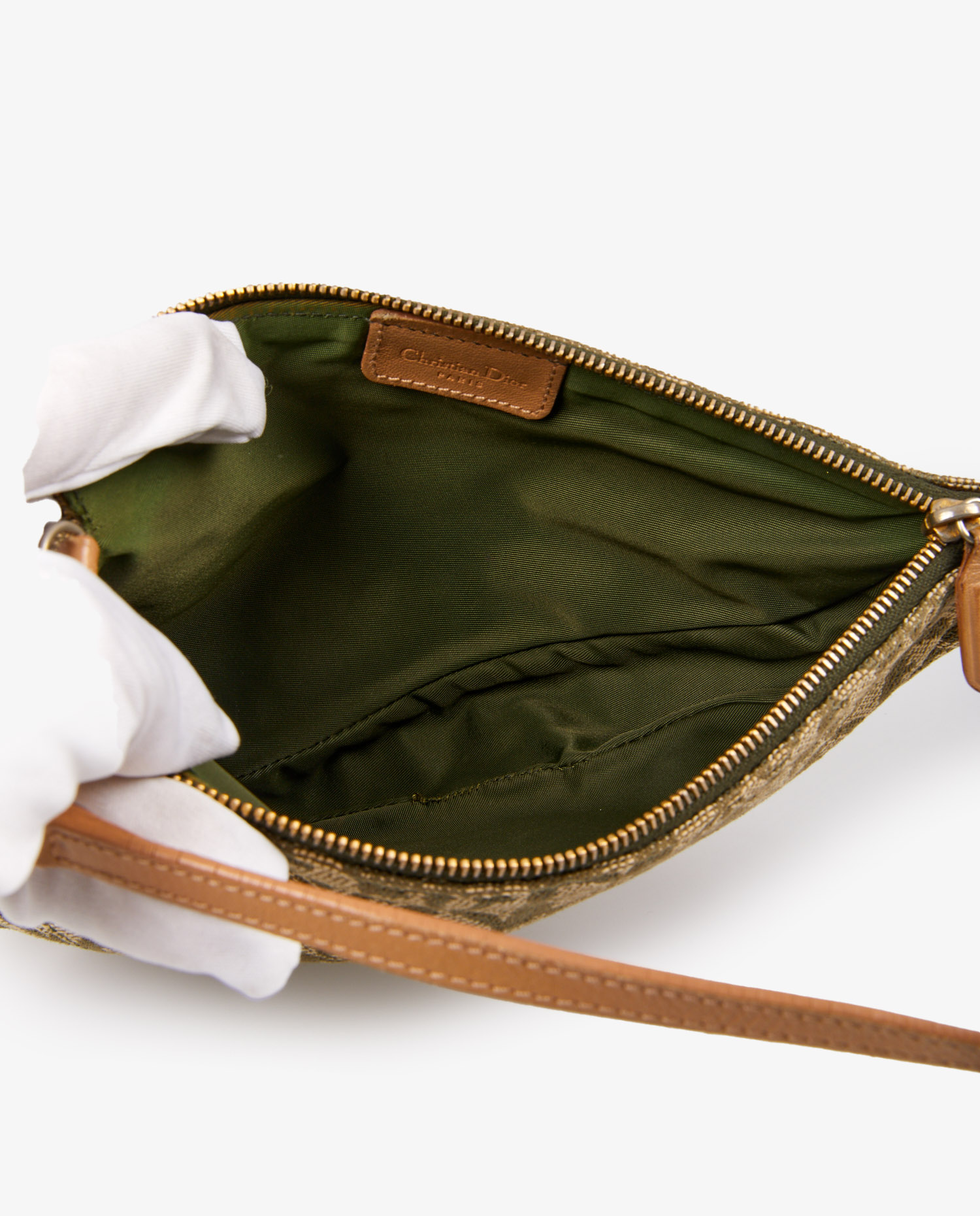 Vintage Christian Dior mini saddle in green monogram canvas. Zipper closure. The interior is in canvas. In very good condition.