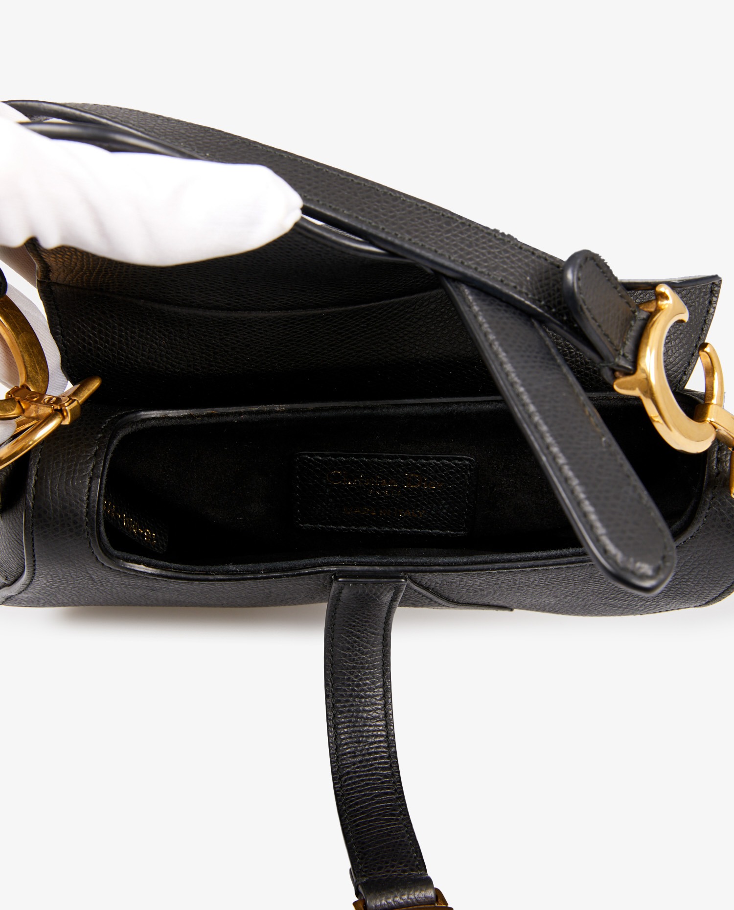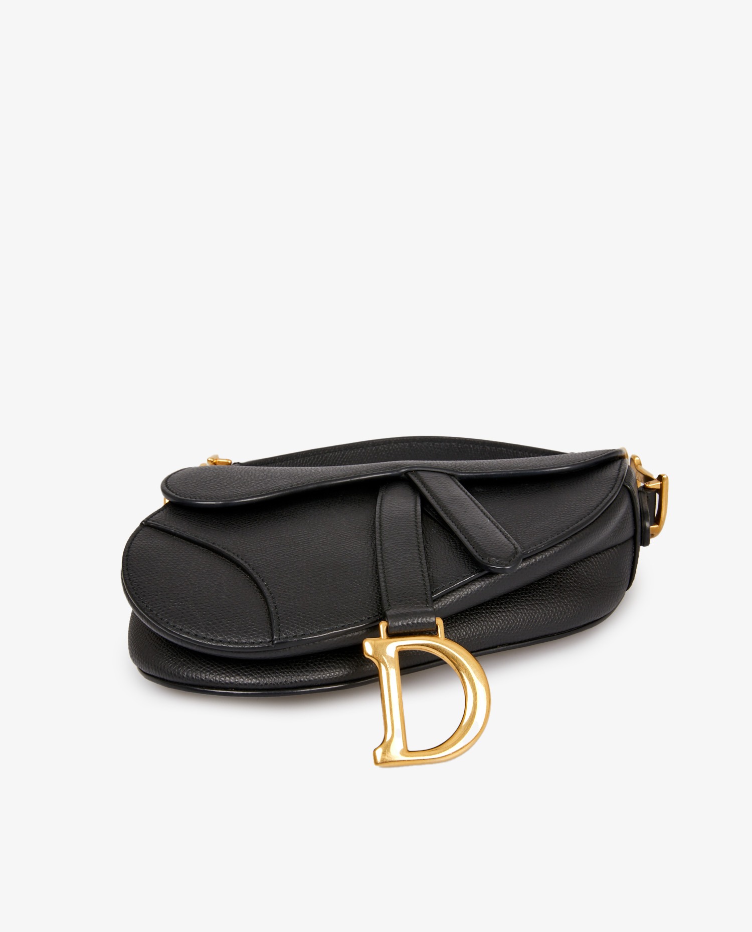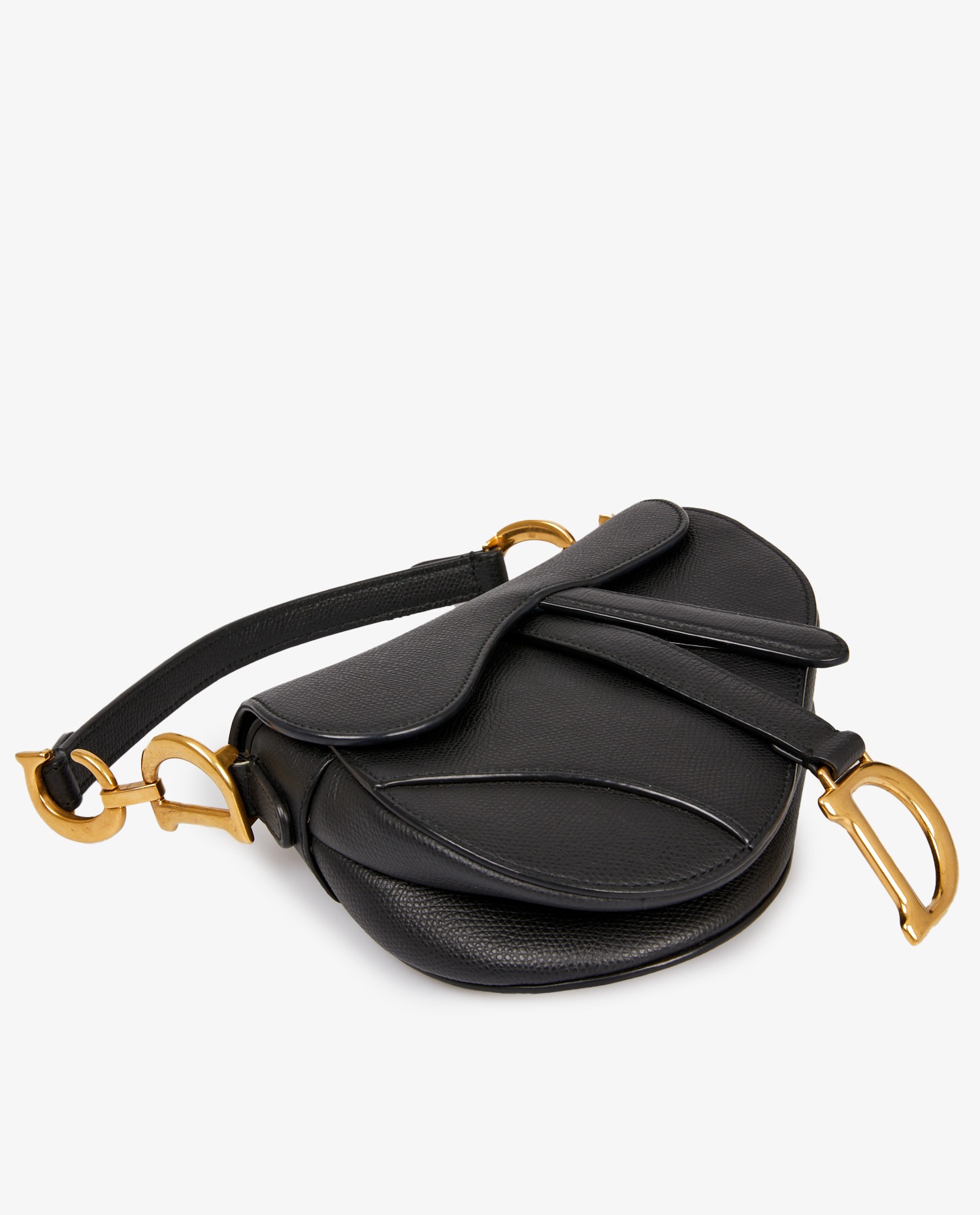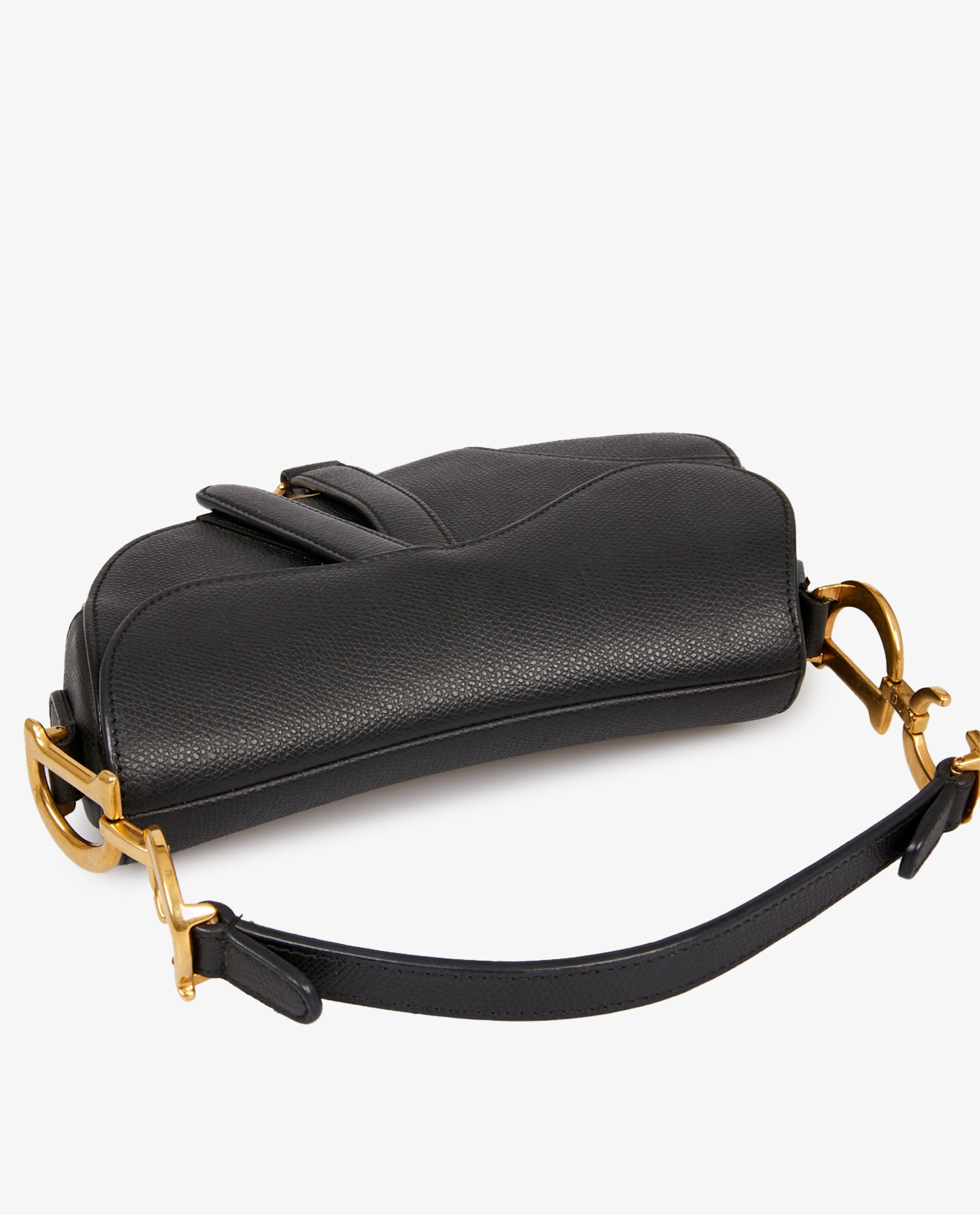 Mini Saddle Dior black grained leather. Worn on the arm. In very good condition.
