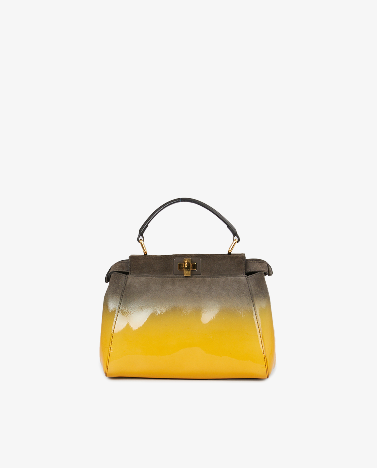 Peekaboo Fendi mini two-tone, two-material bag (velvet and patent leather). Carried by hand or slung over the shoulder. In very good condition.