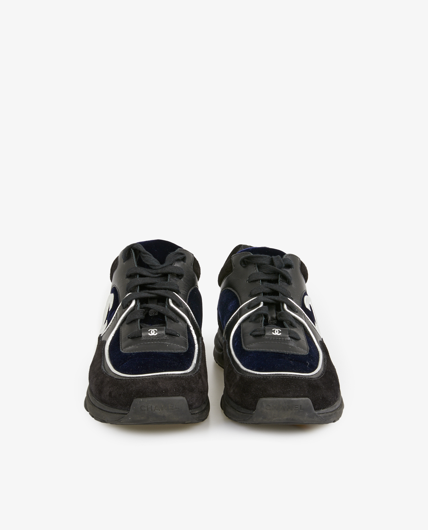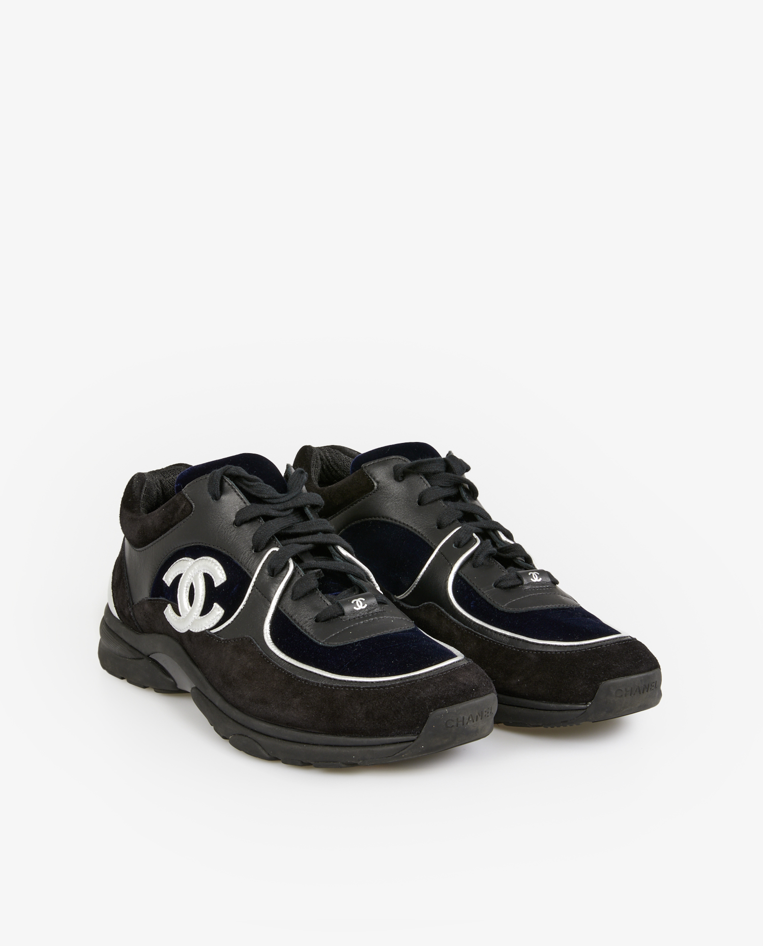 Chanel sneakers in black suede and leather with silver trim. Size 44. Never worn.