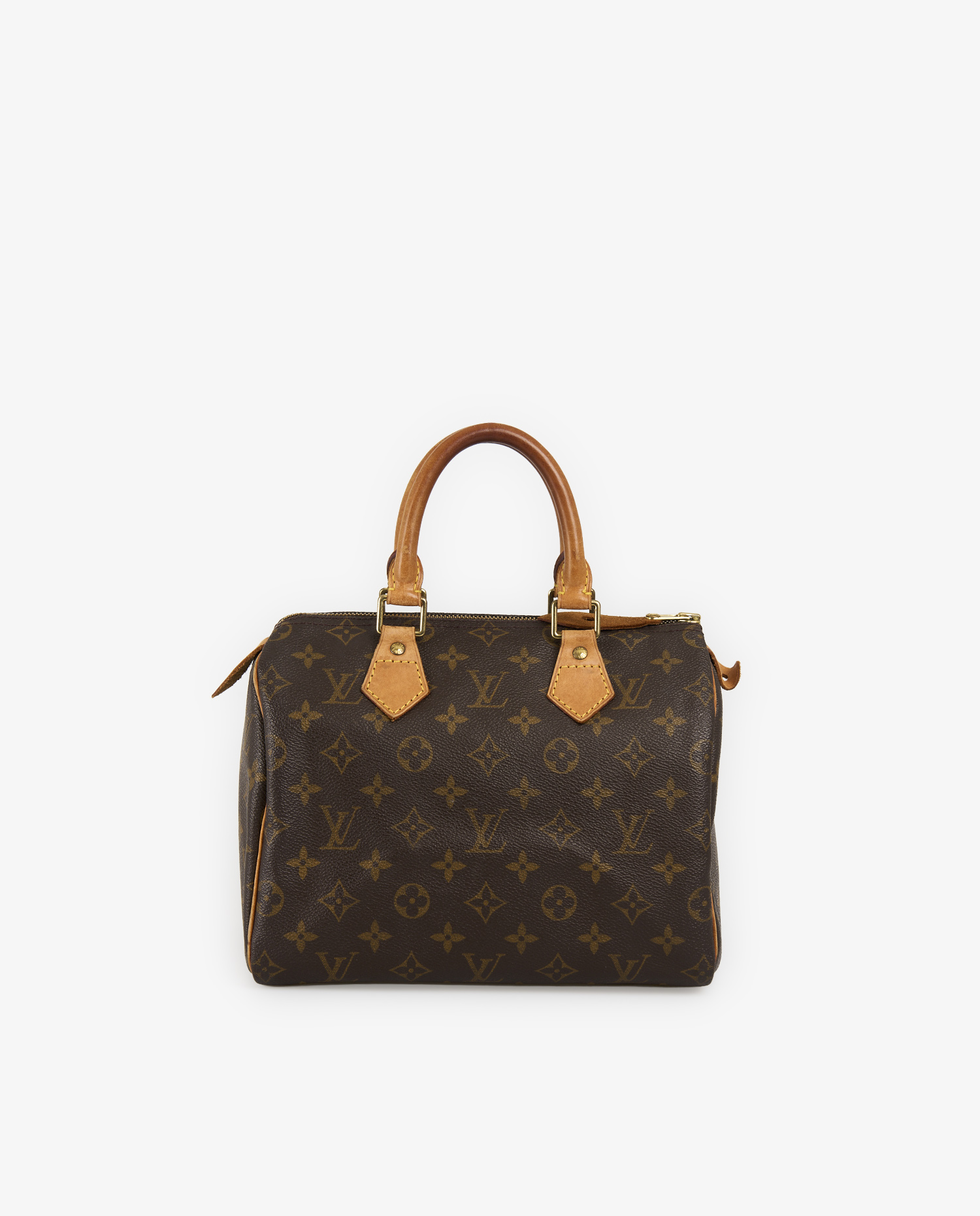 The Speedy was introduced by Louis Vuitton in 1930 as one of the first soft travel handbags, derived from the larger “Keepall” version. The Speedy 25, launched in the 1950s, quickly established itself as a must-have city bag, particularly after being popularized by Audrey Hepburn. Its timeless design and practical format have made it a house classic, regularly reissued without altering its original silhouette.