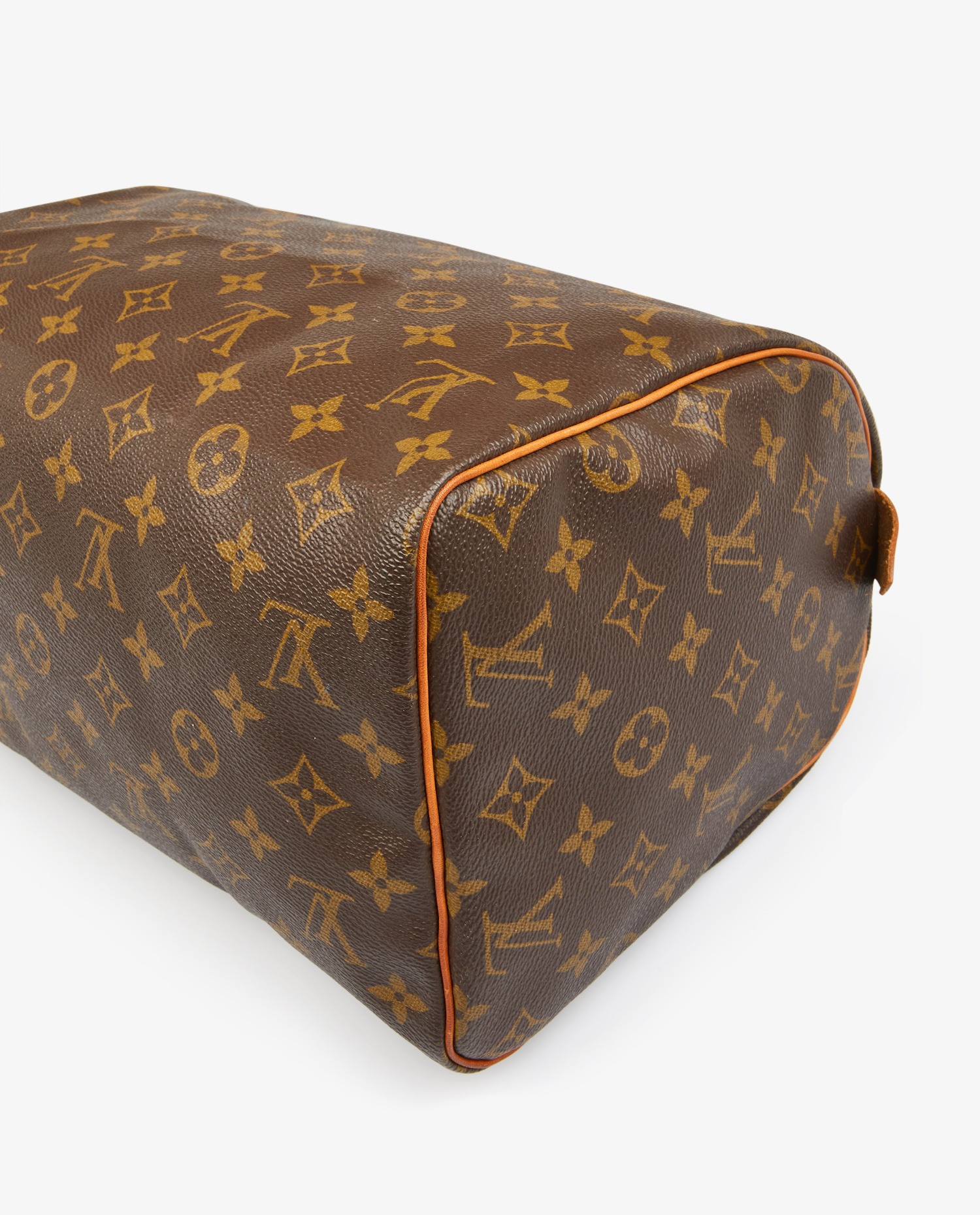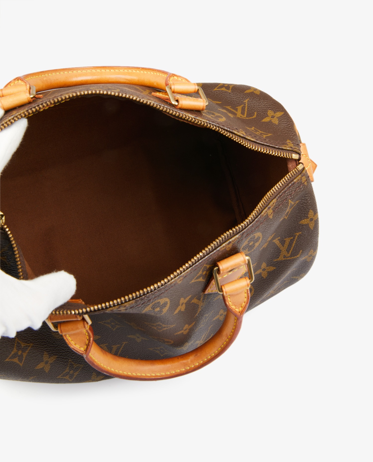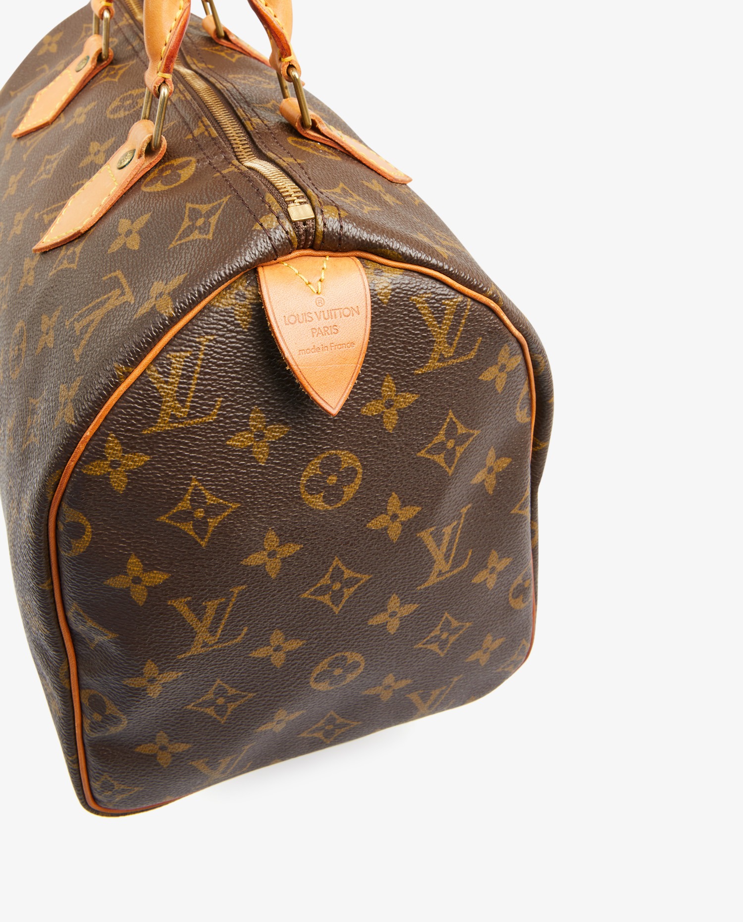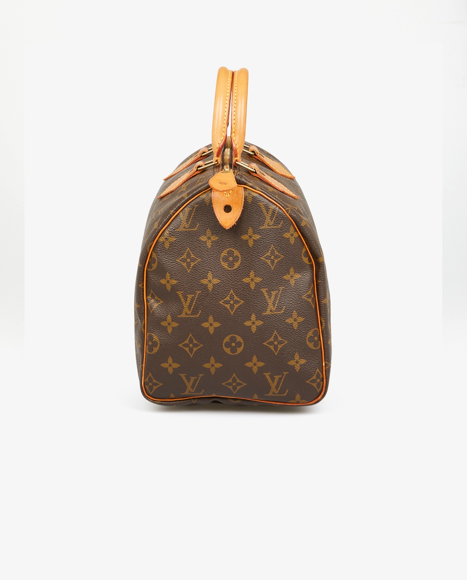 Speedy 30cm Louis Vuitton monogram canvas and cowhide finishes. Golden jewelry. Hand-carried, can be fitted with a shoulder strap. Zipper closure. In very good condition. Slight patina of the leather, wear from use.