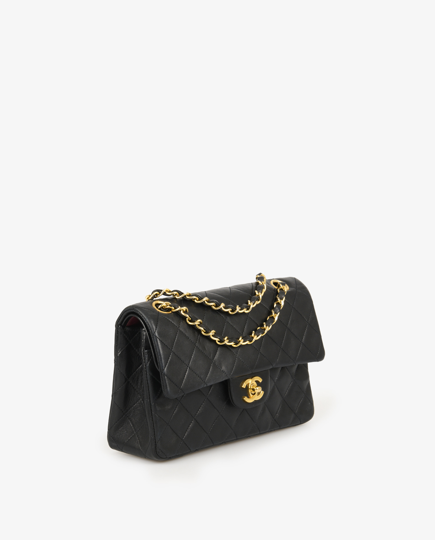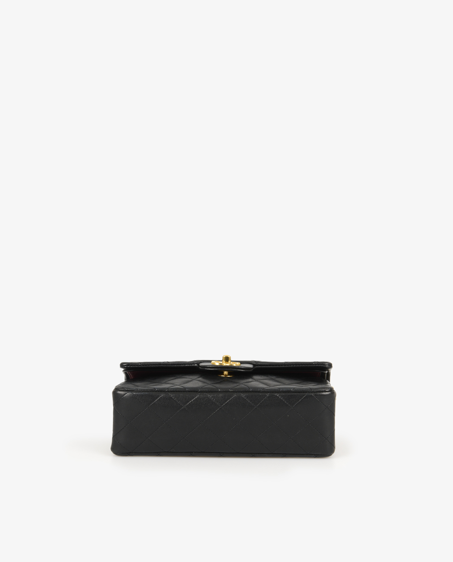 The bag is in very good vintage condition. The leather shows slight rub marks at the corners and discreet wrinkles, typical of lambskin with a patina over time. The gold clasp retains a beautiful shine with minimal traces of use. The burgundy leather interior is clean, with slight signs of use consistent with its age.