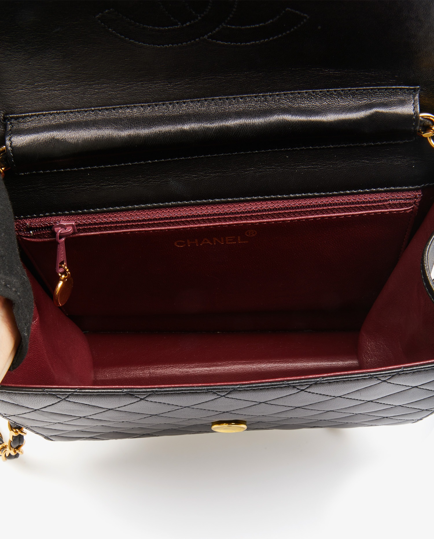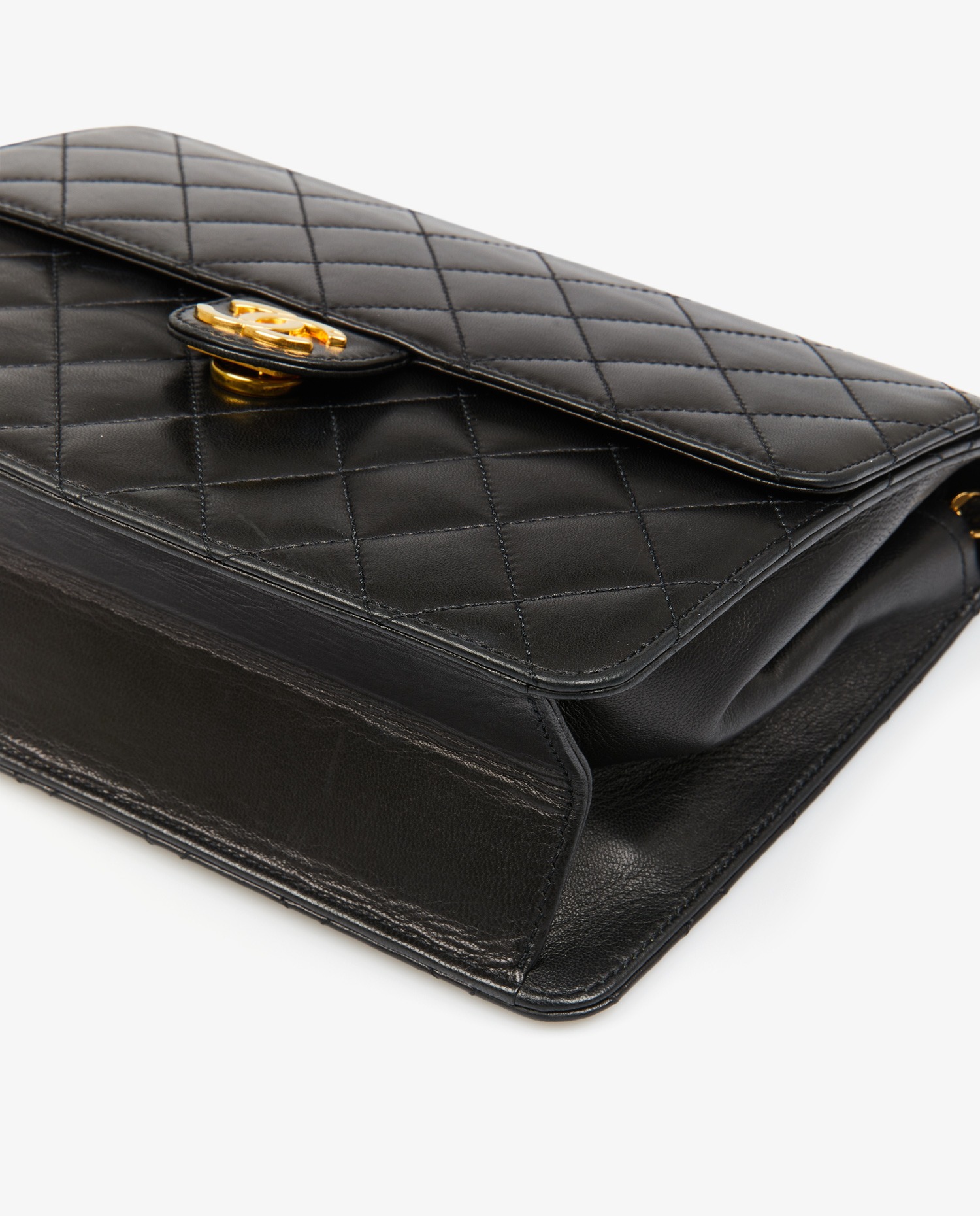 Vintage black quilted lambskin Chanel bag. It looks very similar to the Maison Classique bag, but with a squarer shape. Ideally worn on the shoulder, it can also be slung over the shoulder (88cm). In excellent condition.