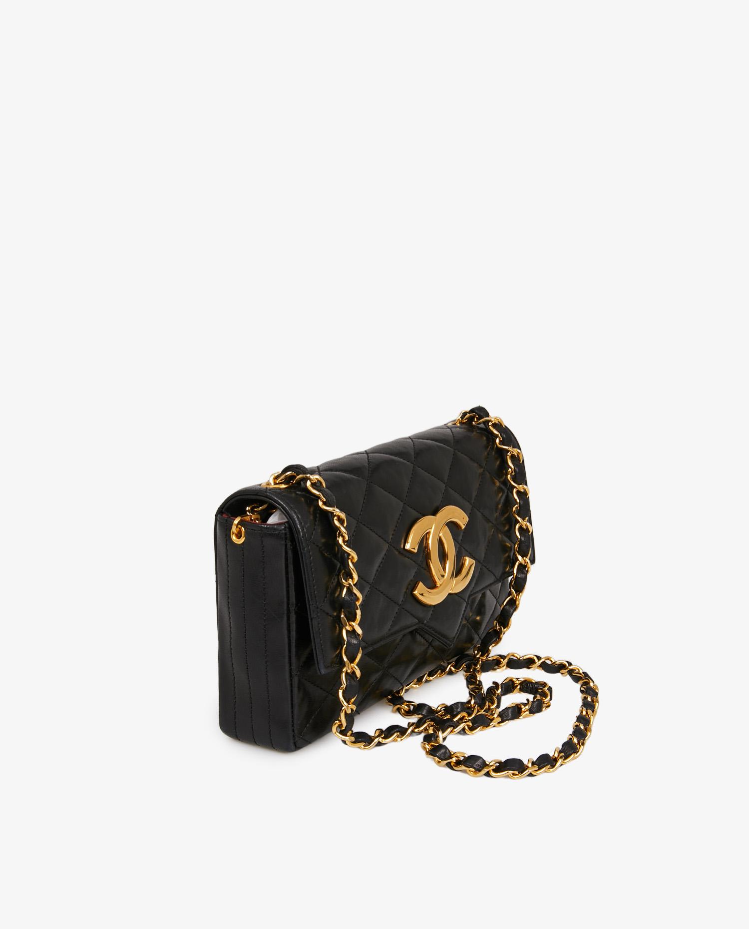 This model follows in the footsteps of Chanel’s iconic creations of the 80s and 90s. During this period, the house explored softer, simpler formats for everyday wear, while retaining the visual codes of the classic flap bag. The intertwined chain, black lambskin leather, burgundy interior and oversized CC logo all recall the heritage of Gabrielle Chanel, modernized under the direction of Karl Lagerfeld. These bags, with their looser, less rigid format than the Timeless or 2.55 models, seduce with their practicality and assertive personality.