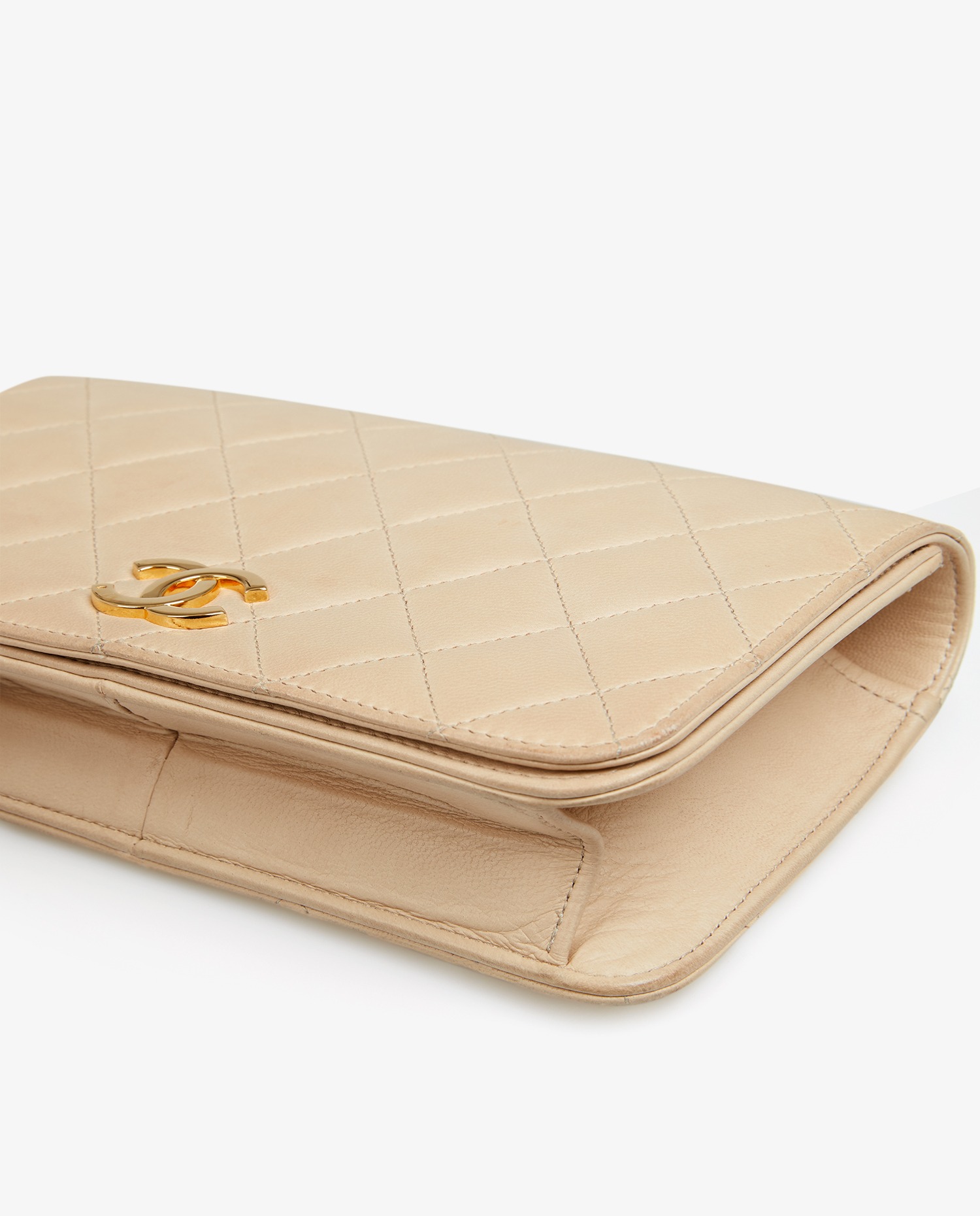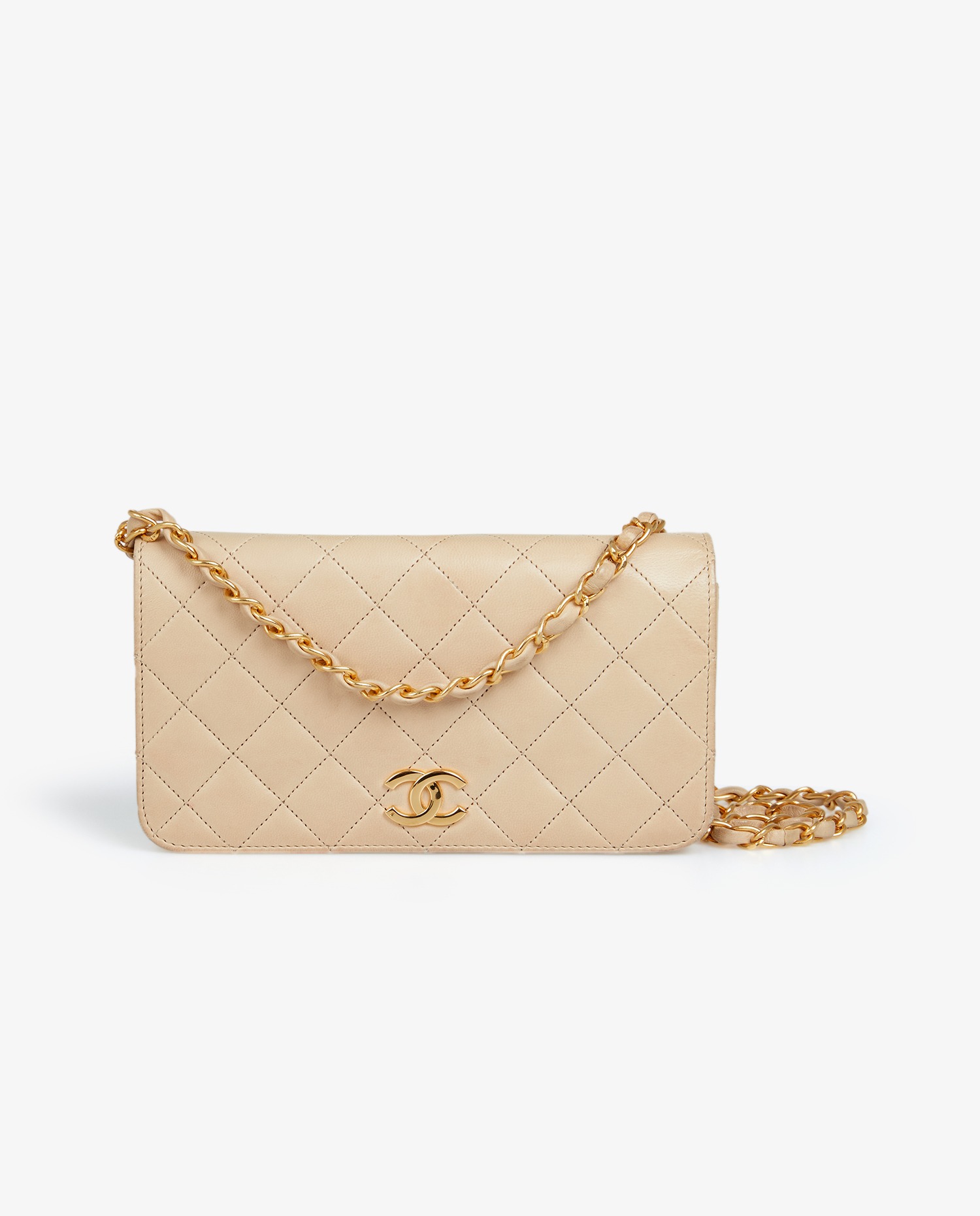 Wallet on chain Chanel bag in vintage beige lambskin. Carried on the shoulder. The shoulder strap measures 80cm. Golden jewelry. The interior is in brown leather. In very good condition. Comes with Chanel pouch and box.