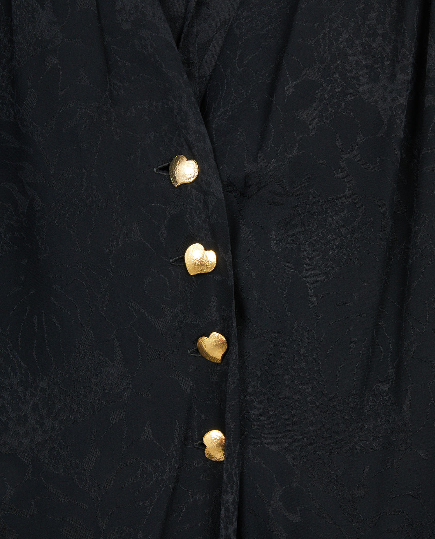 Yves Saint Laurent blouse in black silk. Epaulettes. Size 44 IT equals 40 FR. Golden heart buttons. In very good condition.