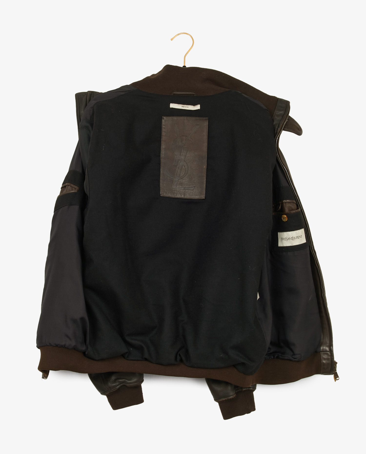 Yves Saint Laurent jacket in brown lambskin. Zipper closure. Size 52. It is tightened at the waist and handles. In very good condition. Some wear to collar. See photos.