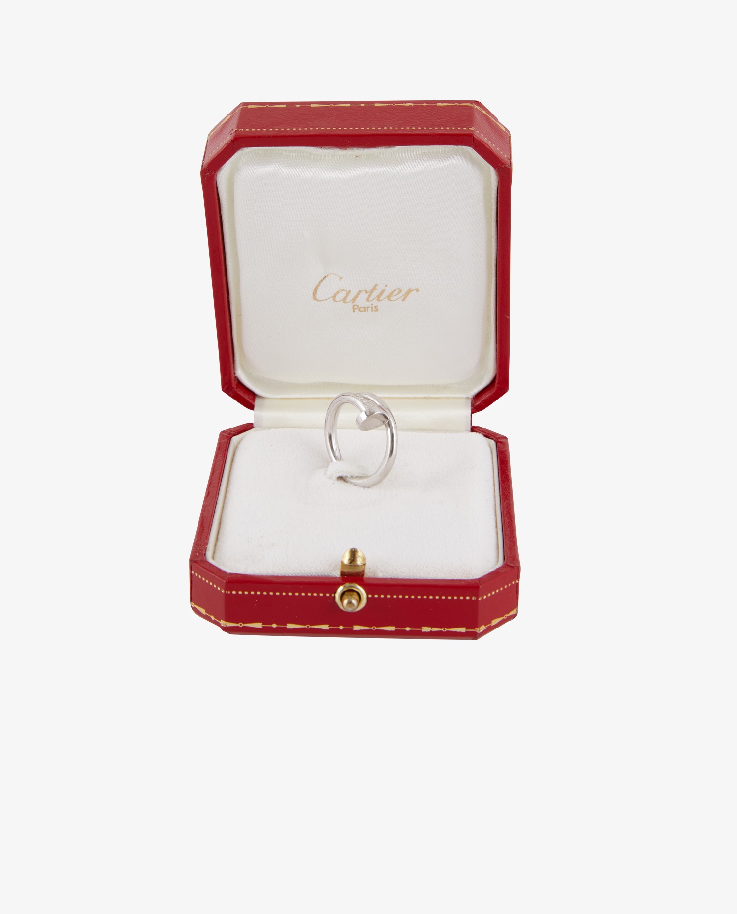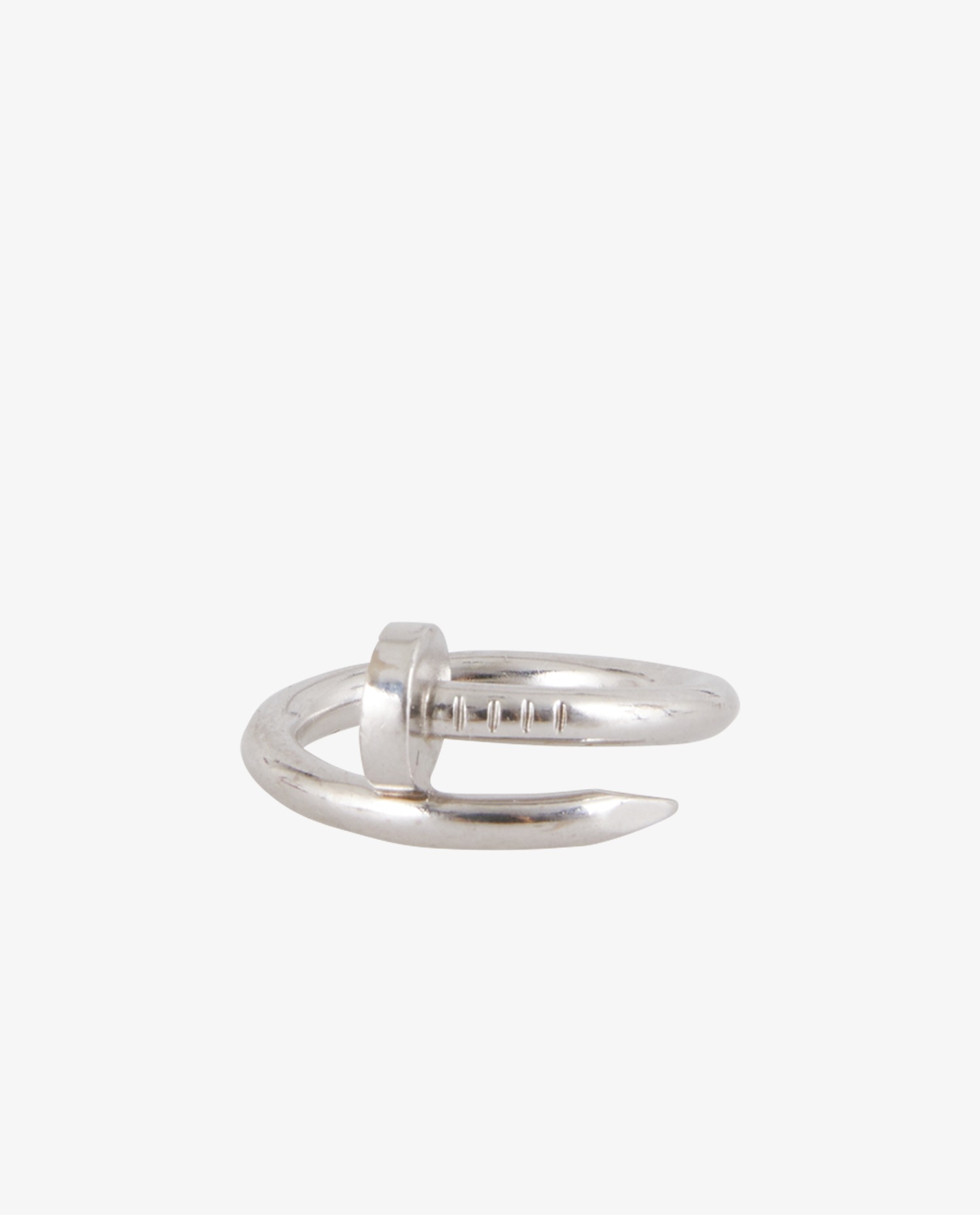 Bague “Juste un clou” Cartier en or gris. Modèle emblématique de la marque. Taille 47. En très bon état. Livré dans son écrin d’origine.