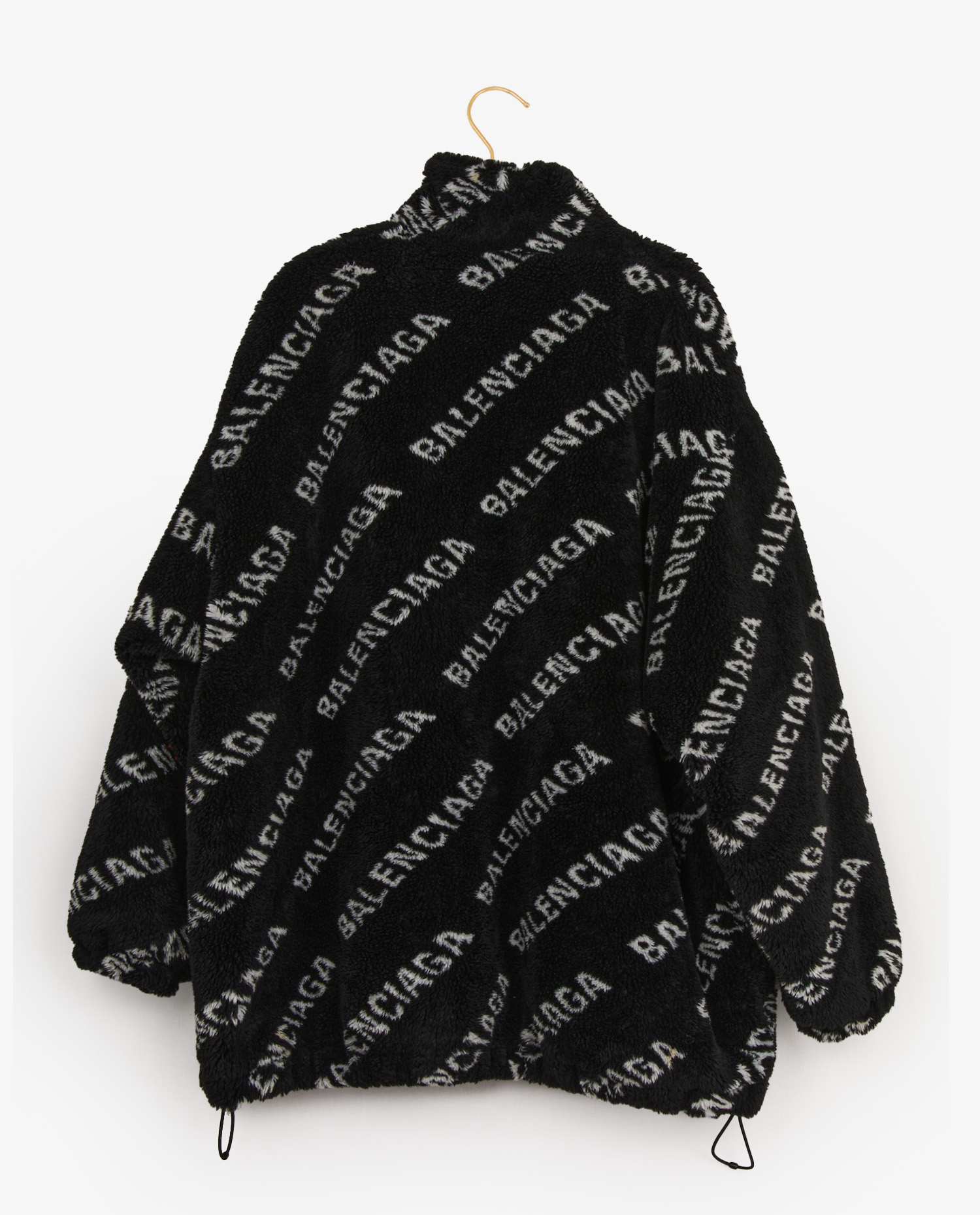 Blouson Balenciaga noir et blanc en fourrure synthétique. Fermeture centrale zippée. Doublure en cupro matelassé noir. Taille 34. En très bon état.