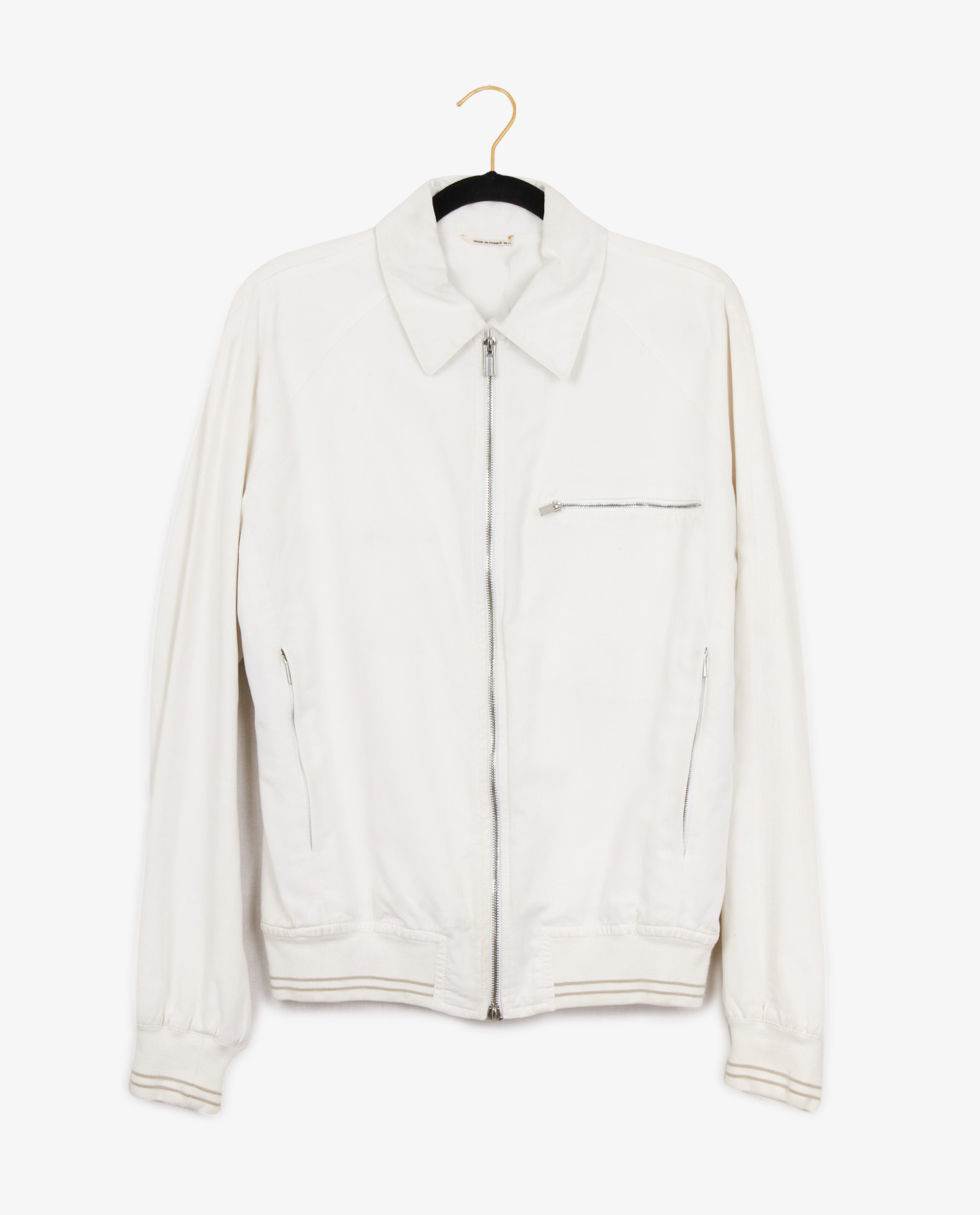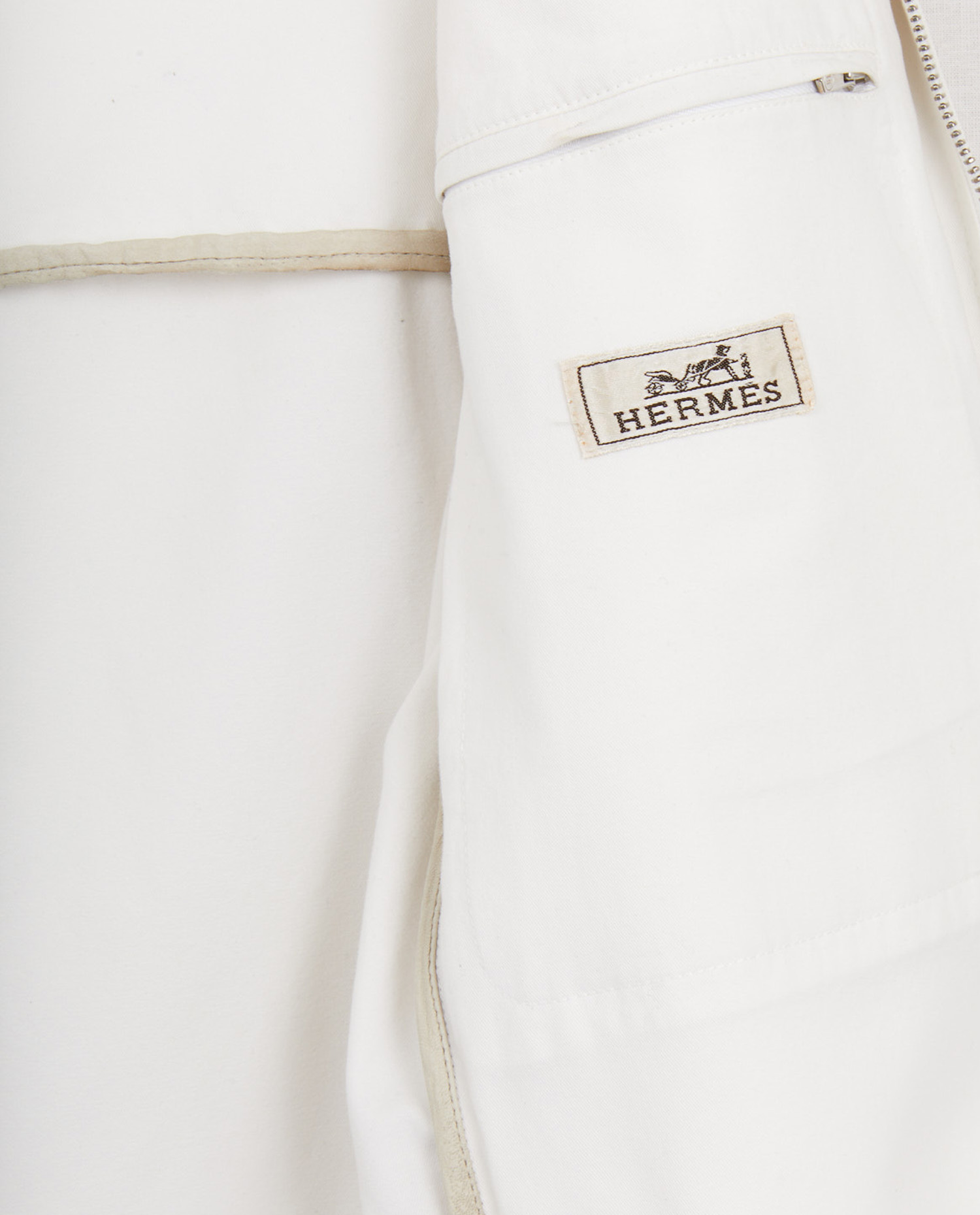 Blouson Hermès vintage en coton blanc. Taille 50. Fermeture zippée. En très bon état.
