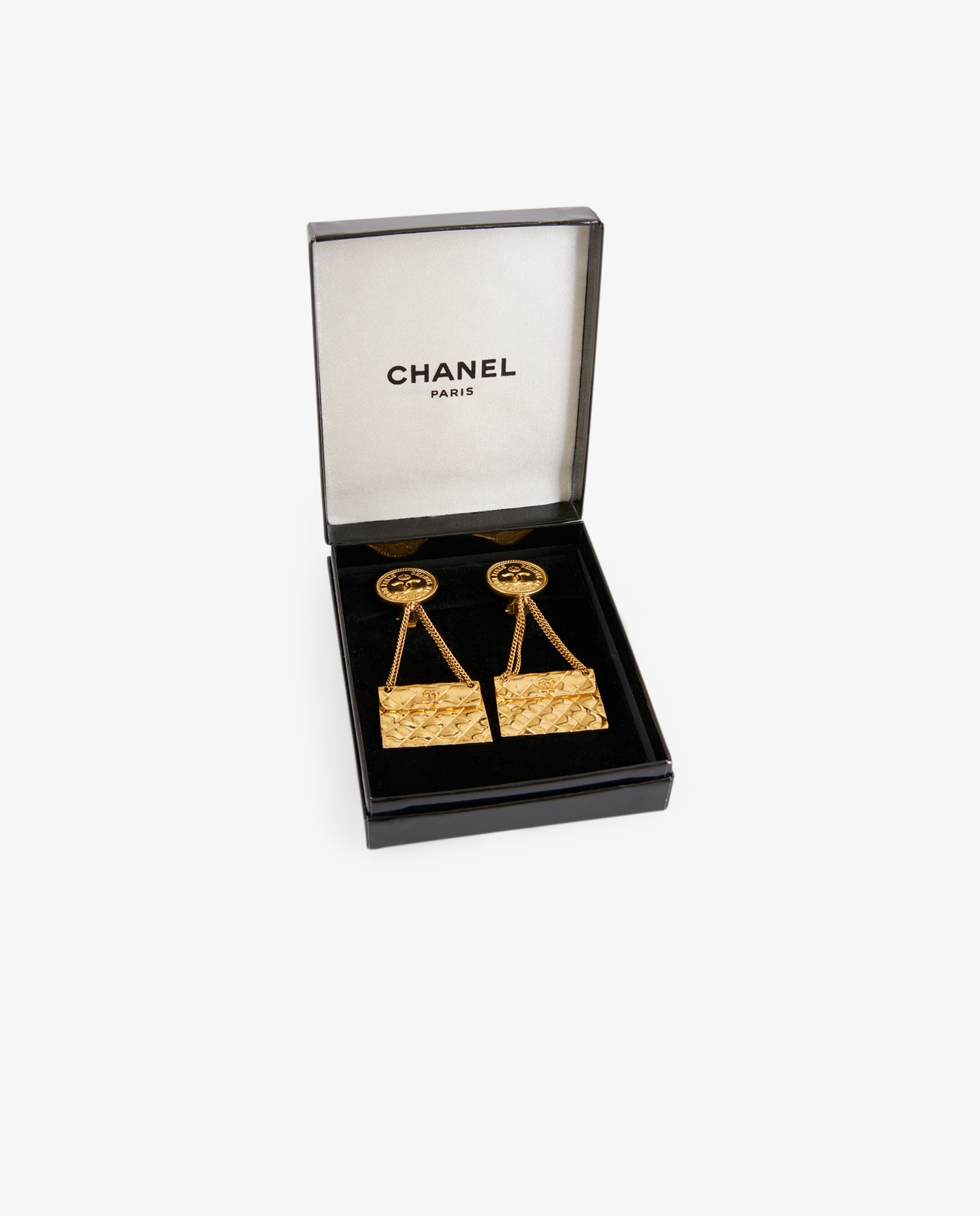 Clips collector Chanel en forme de sacs timeless. Métal doré. En très bon état. Livré dans une boite Chanel.