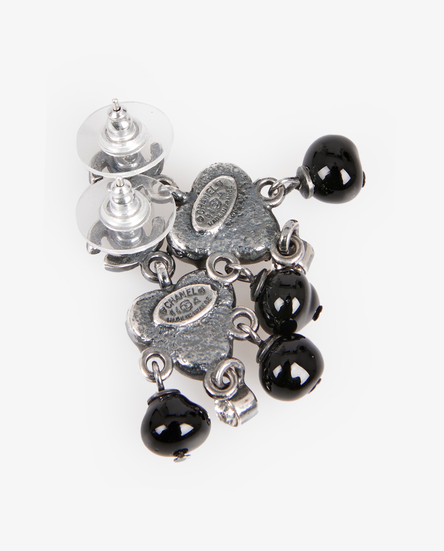 Clous Chanel perles et strass argent. En très bon état. Livré dans sa boite et sac Chanel.