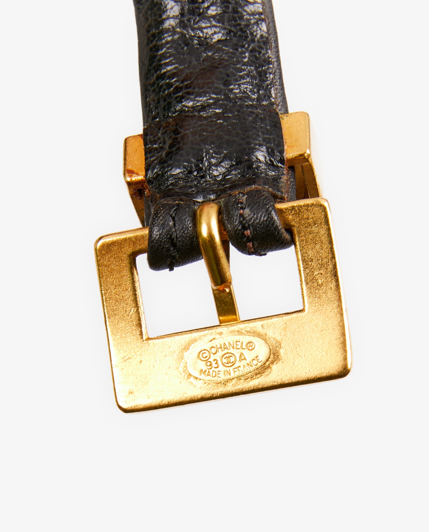 Bracelet Chanel vintage double rangs chaine dorée et cuir noir. En très bon état.