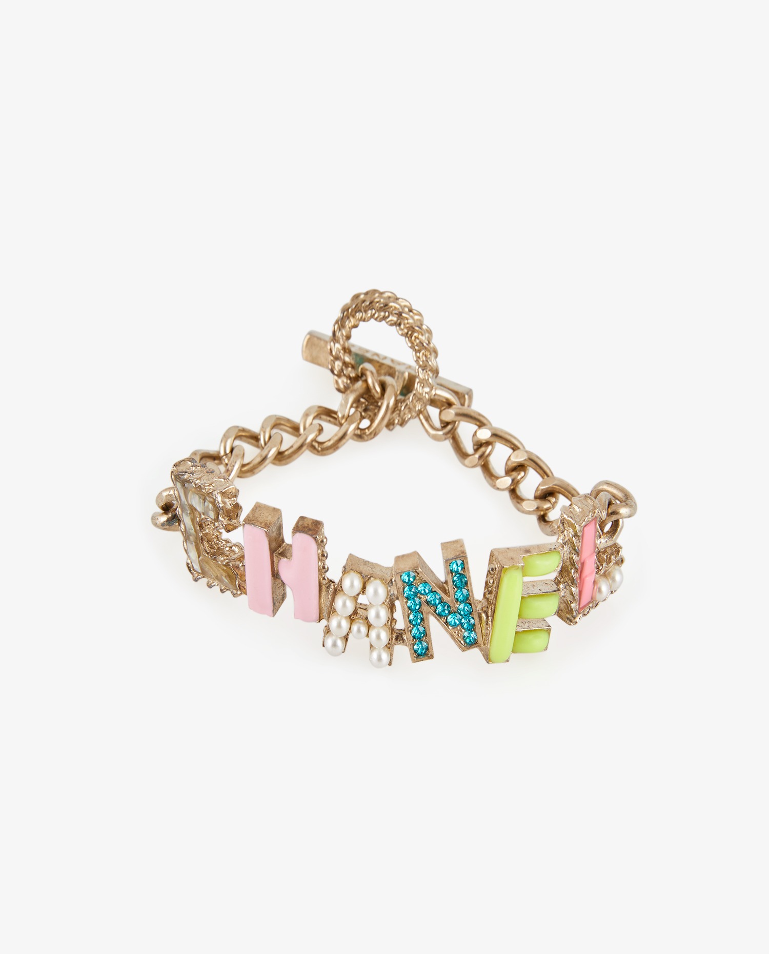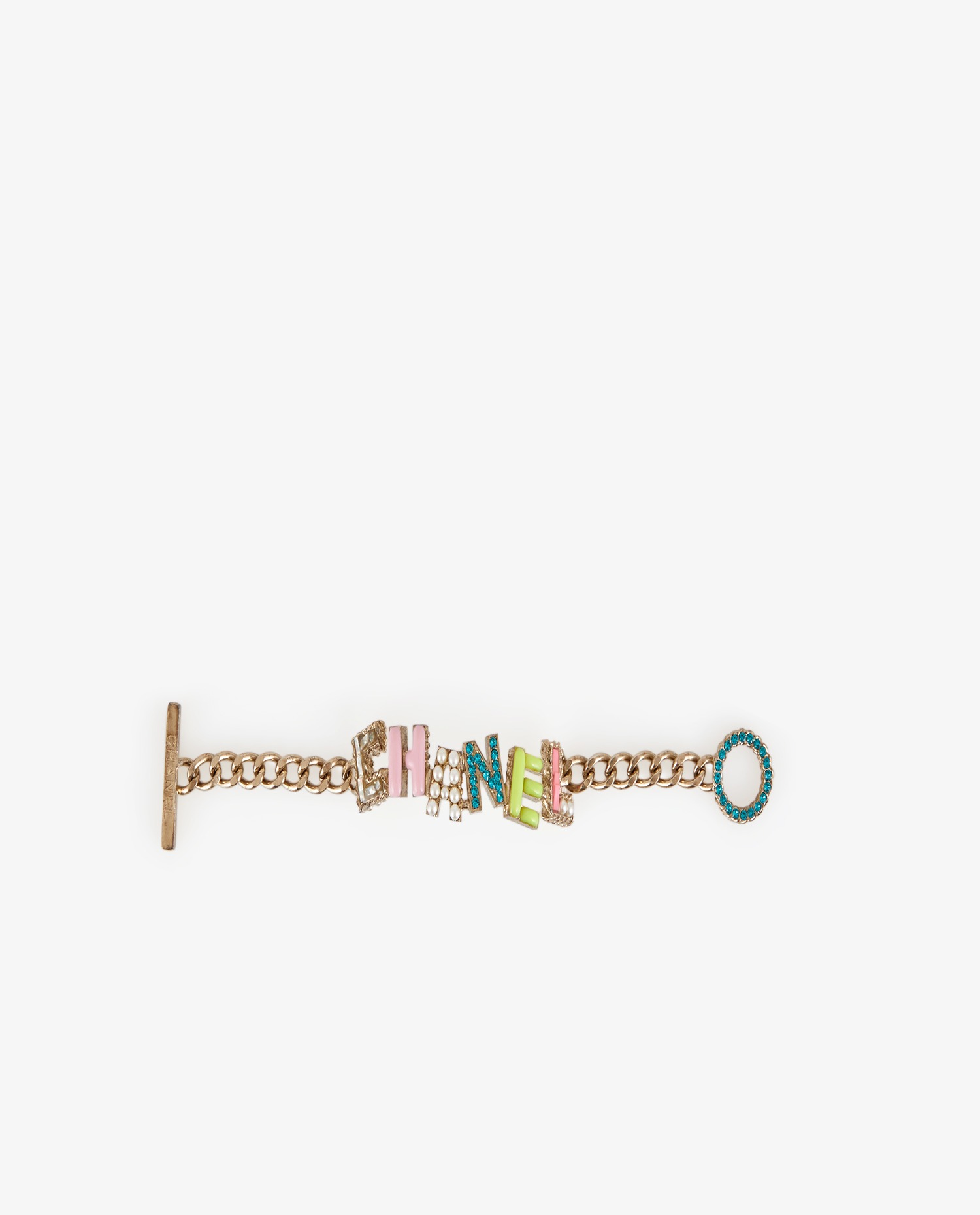 Bracelet Chanel en métal argenté multicolore. Printemps/été 2017. En très bon état.