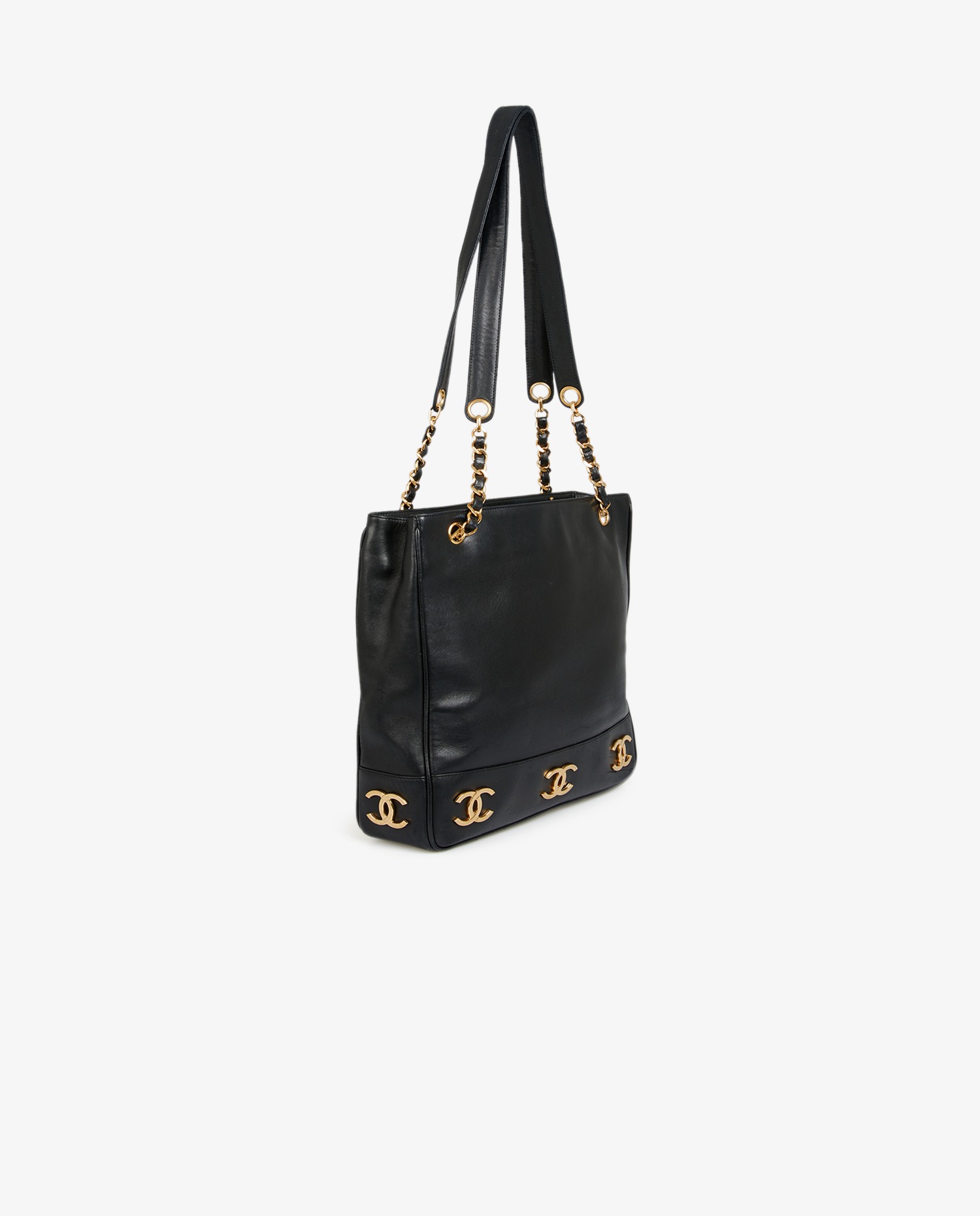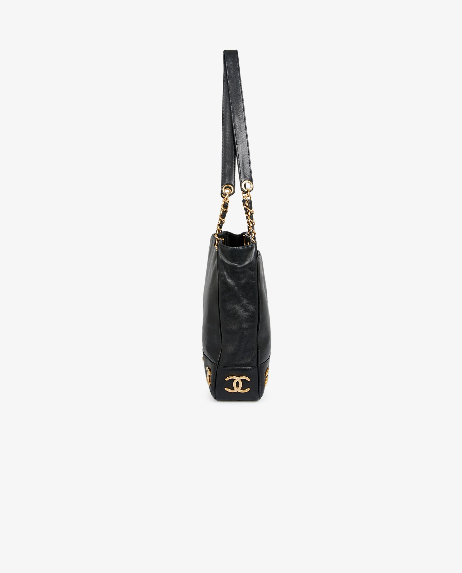 Cabas Chanel cuir noir vintage